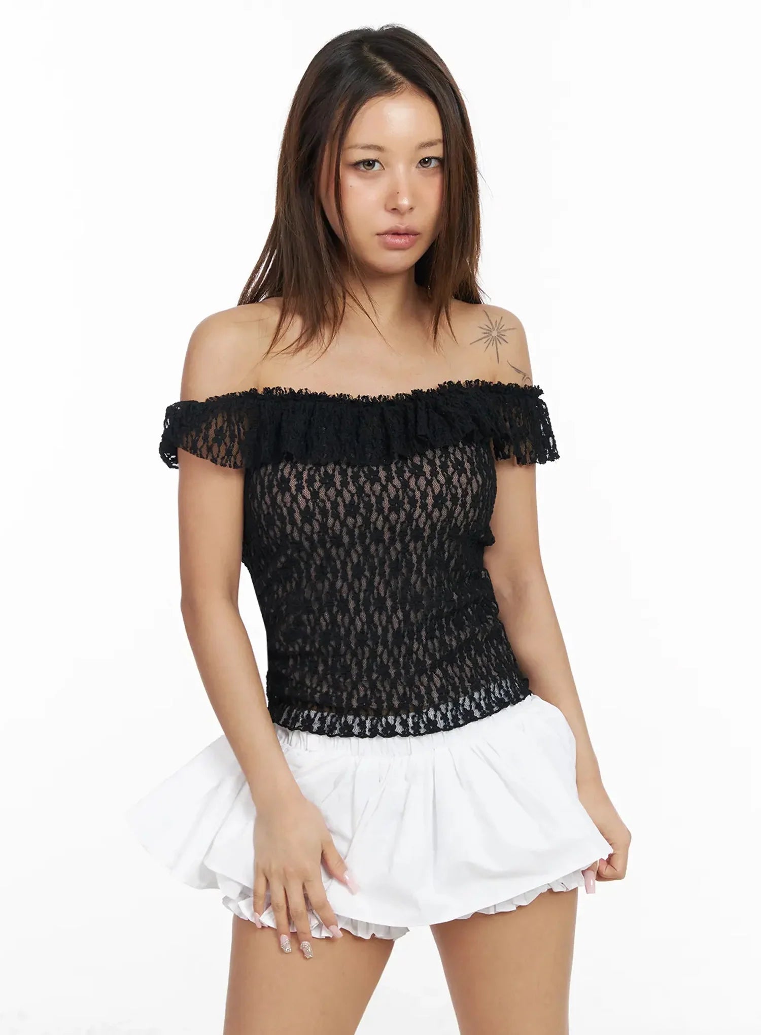 Laced Off-Shoulder Top IA527