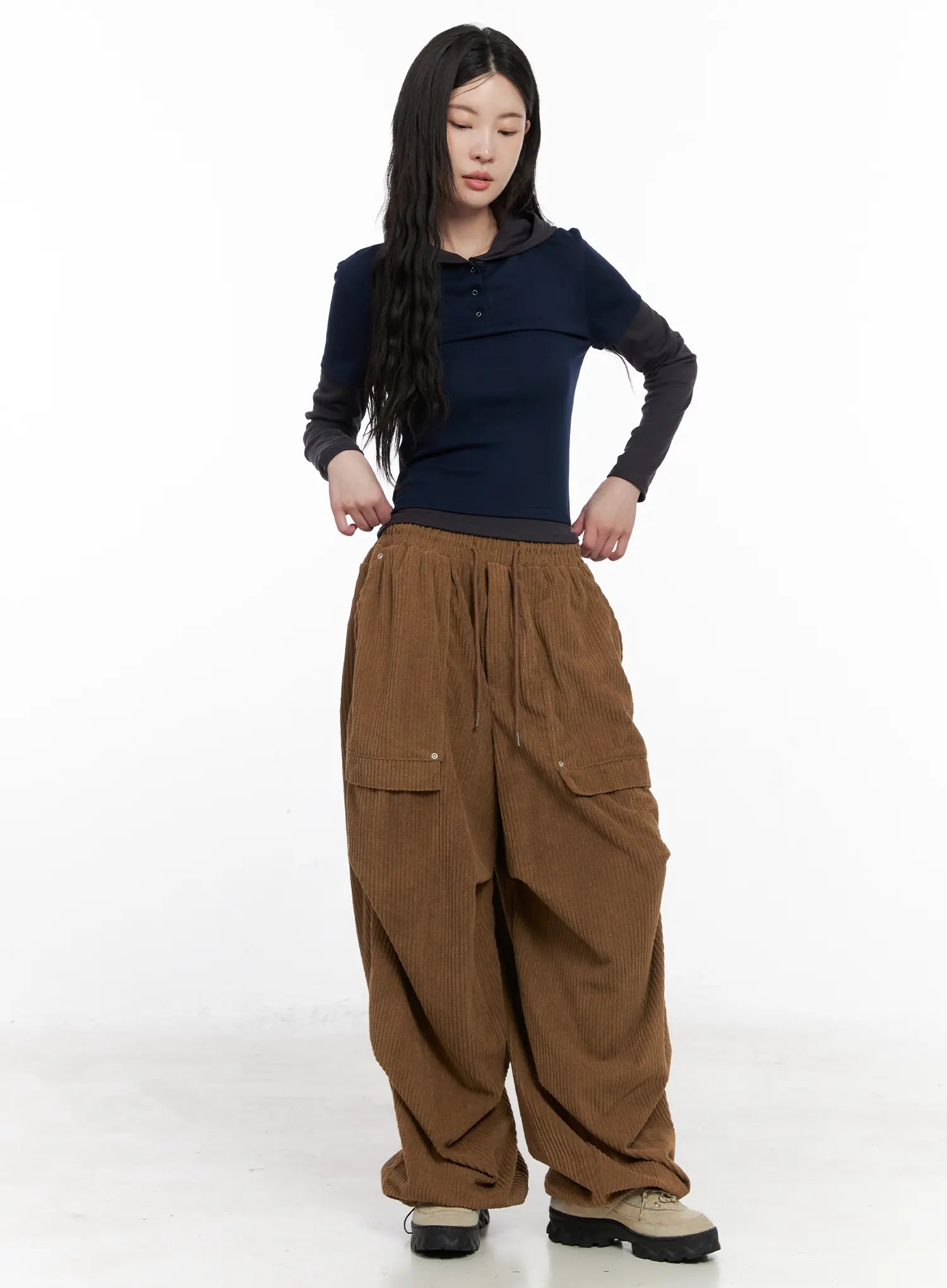 Model is wearing size S/M and the color Dark blue.