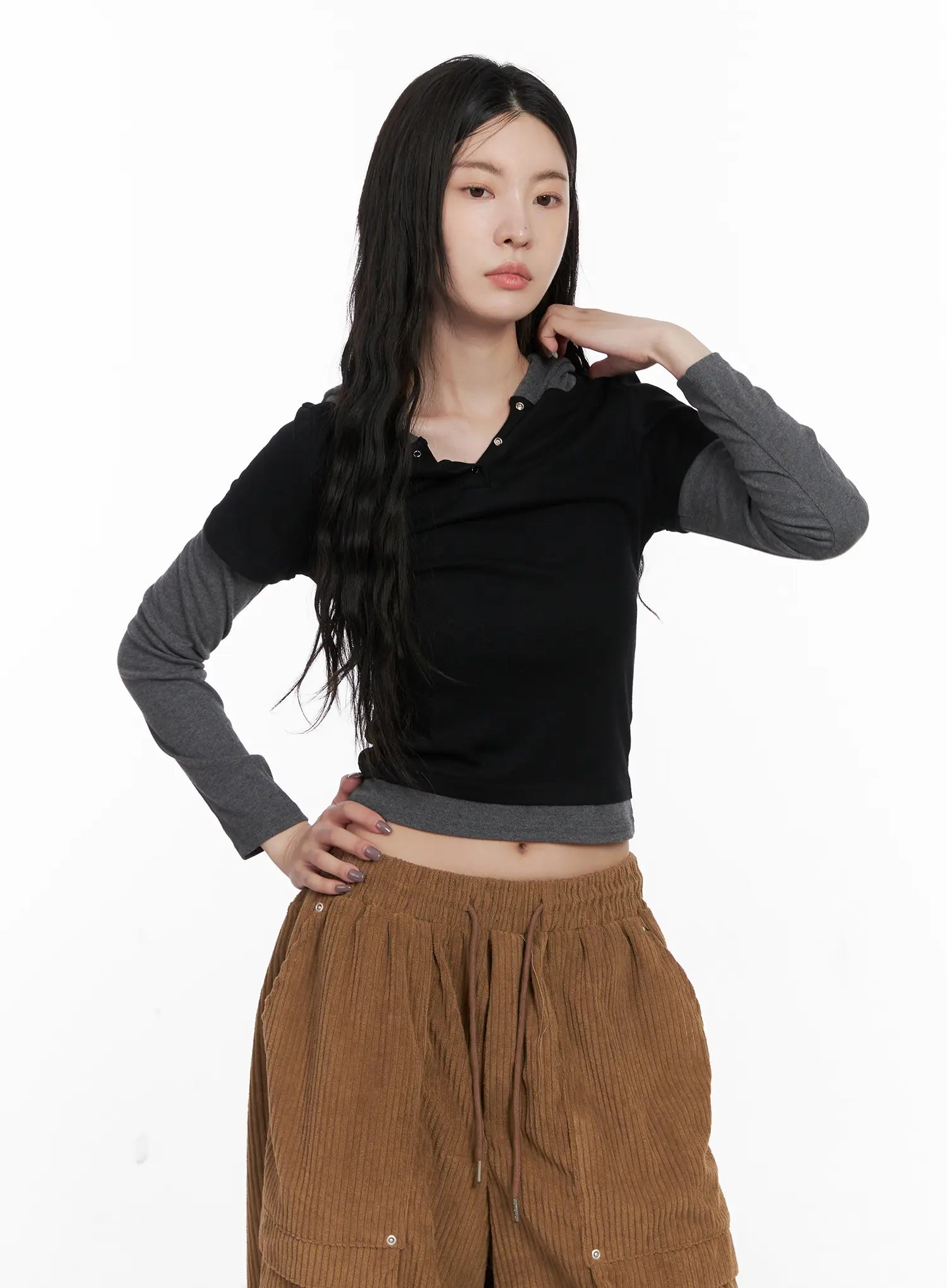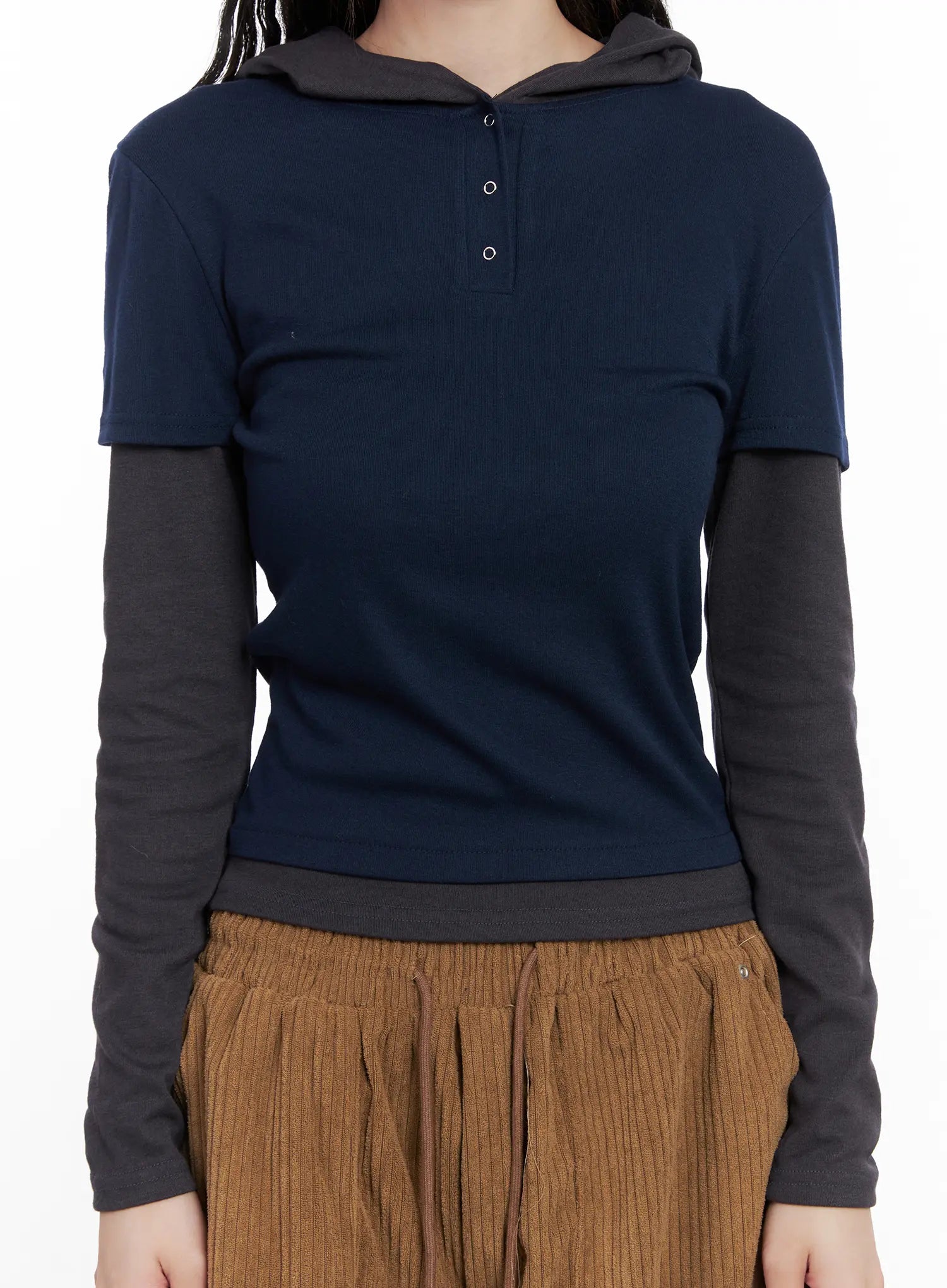 Layered Colorblock Hooded Long Sleeve CN512
