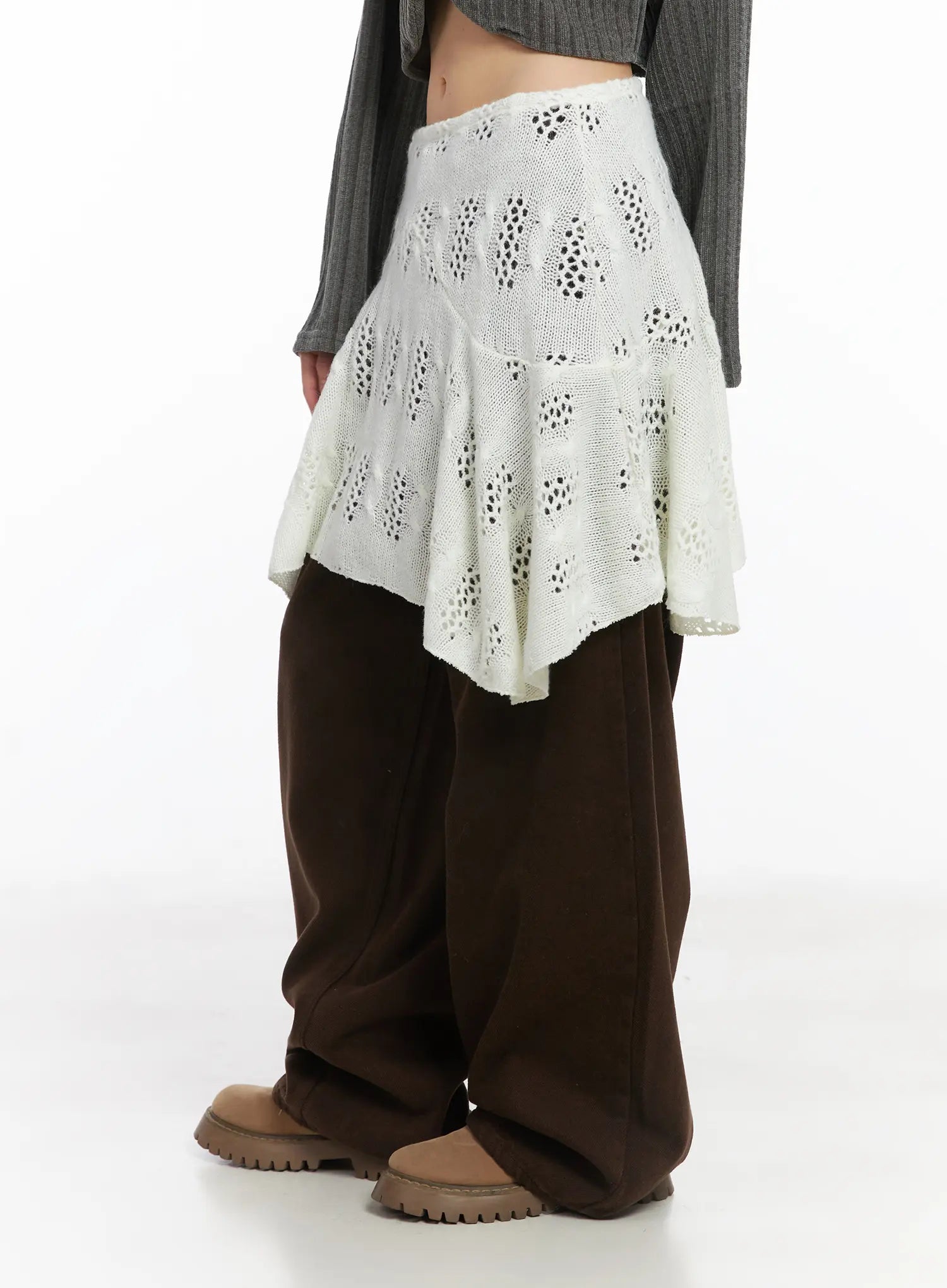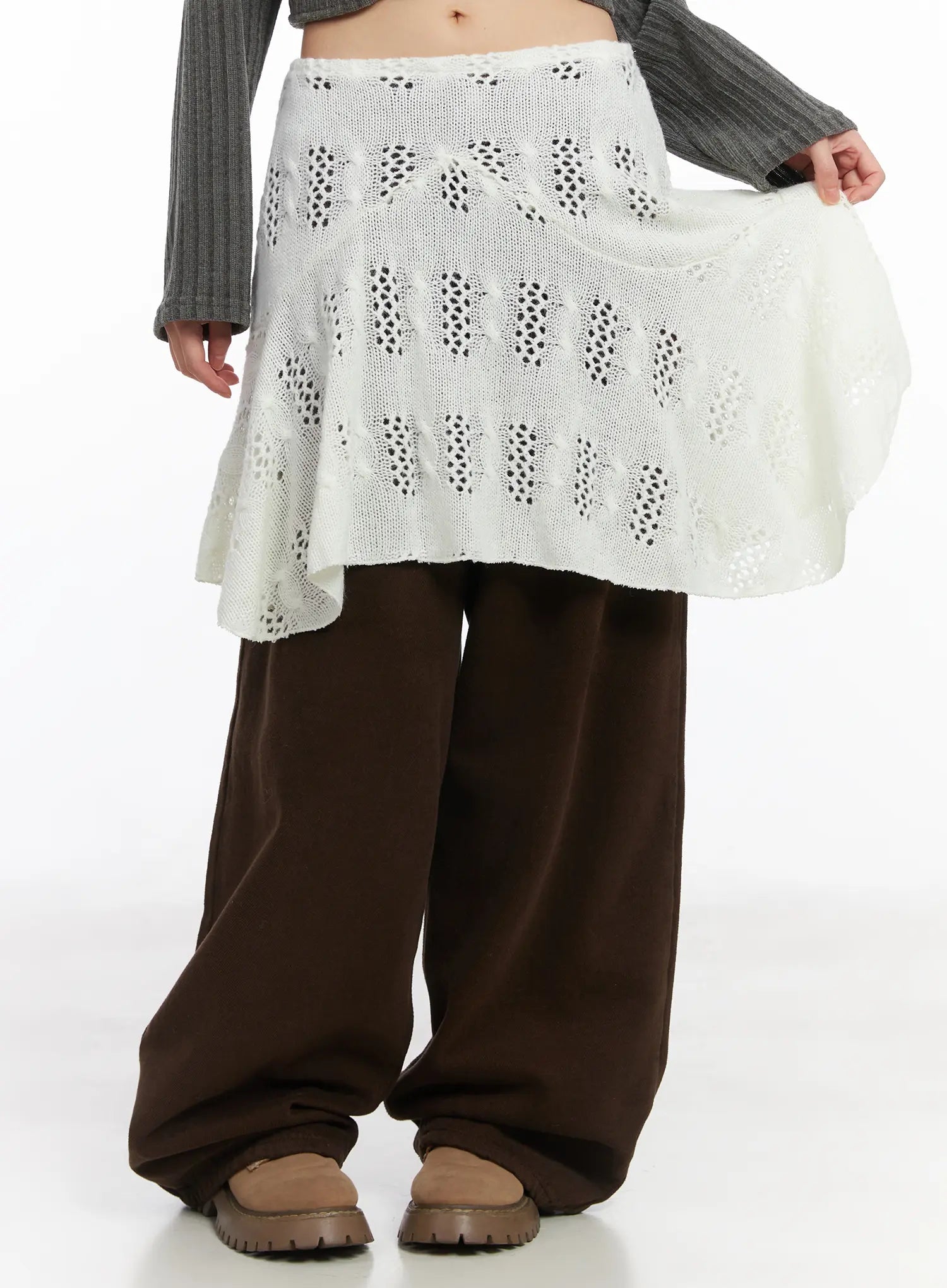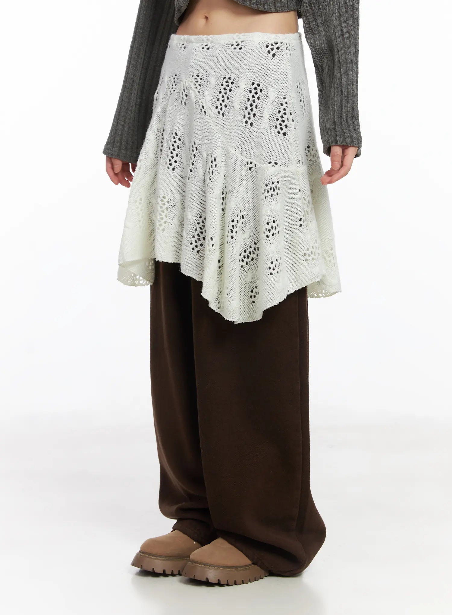 Layered Knit Flare Midi Skirt CD531