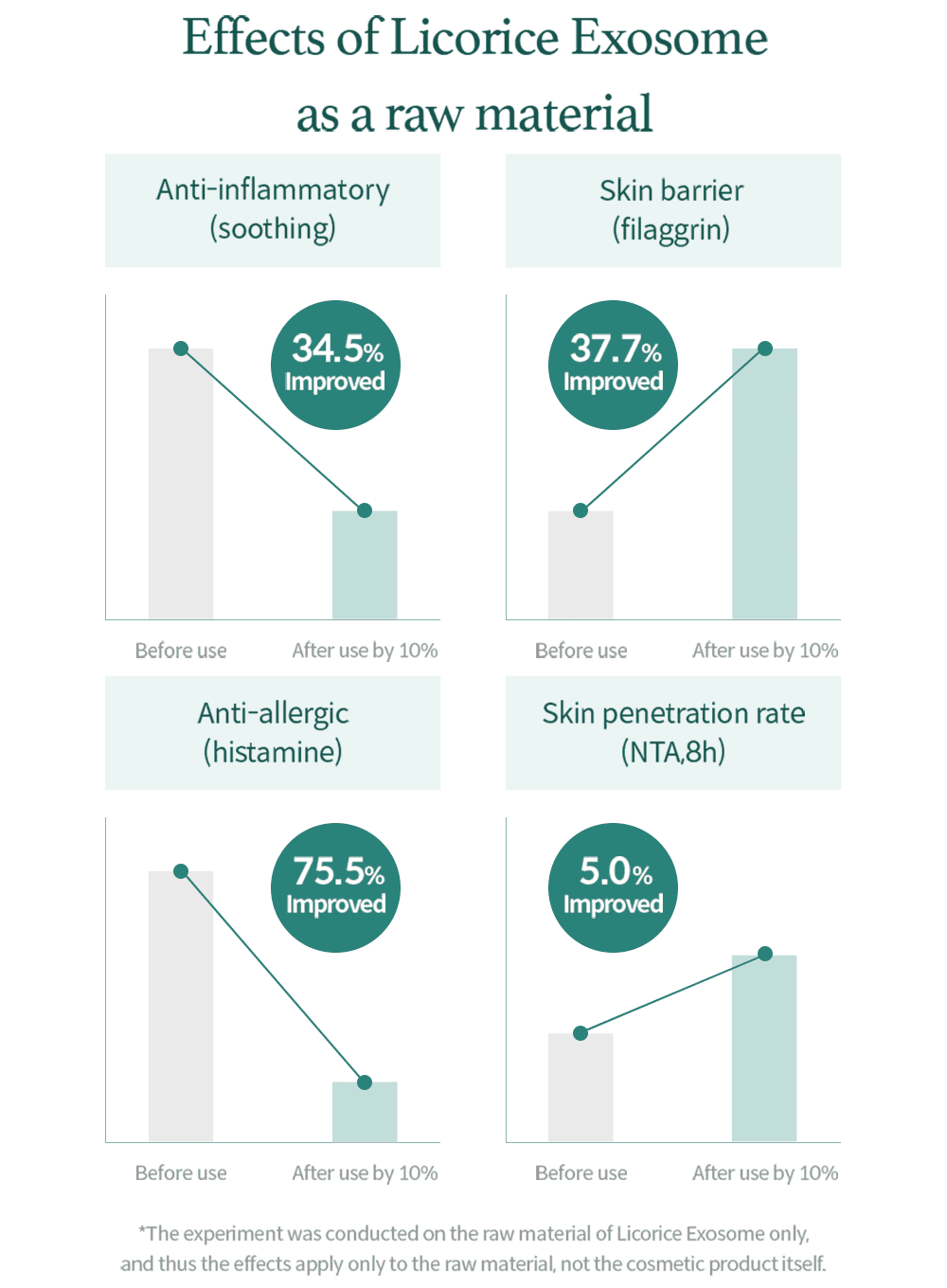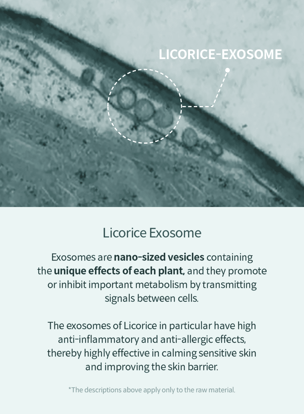 - Contains 58% Licorice Exosome, providing strong anti-inflammatory and anti-allergic effects, helping to soothe the skin.
