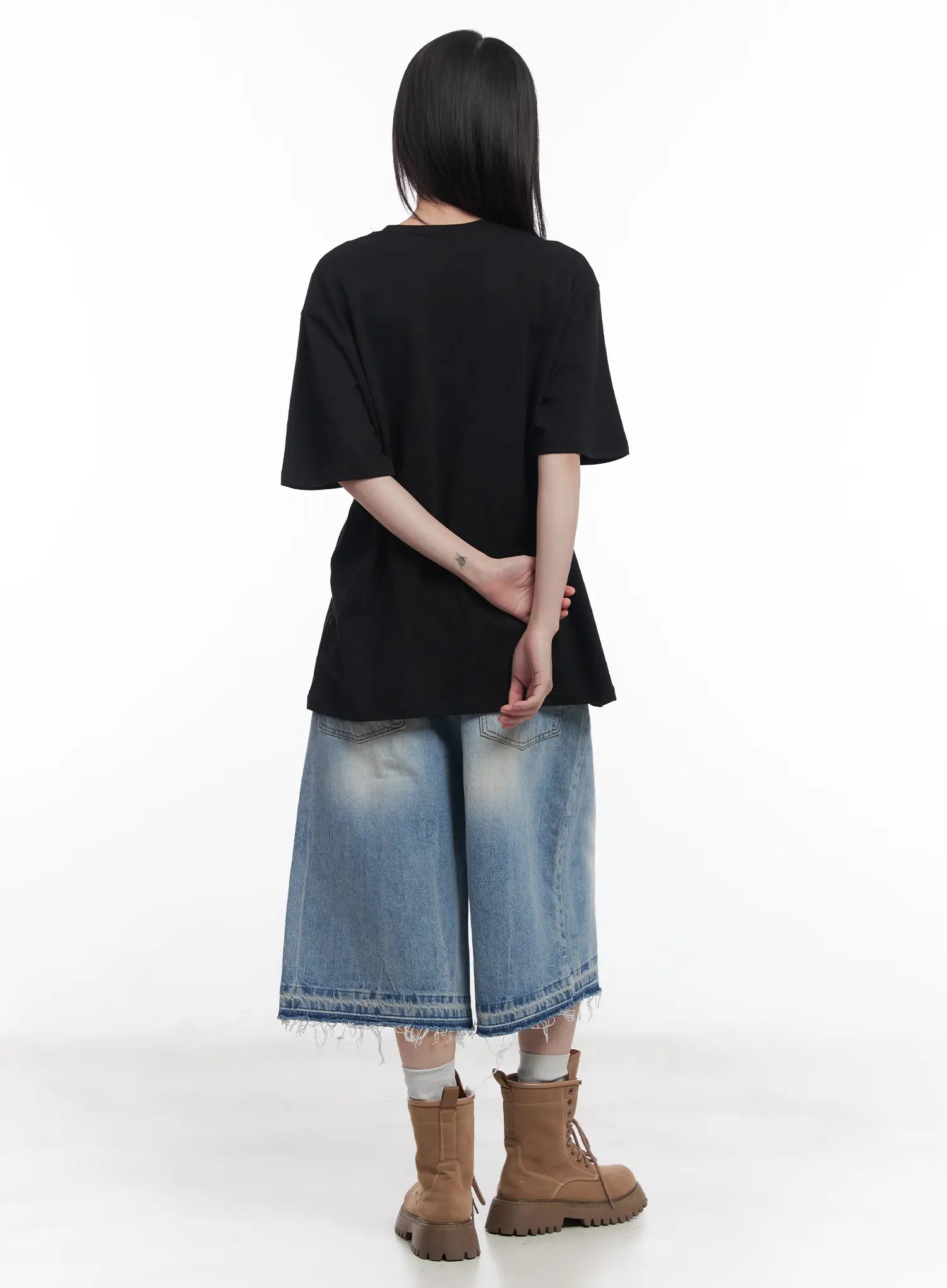 Model is wearing size M/L and the color Black.