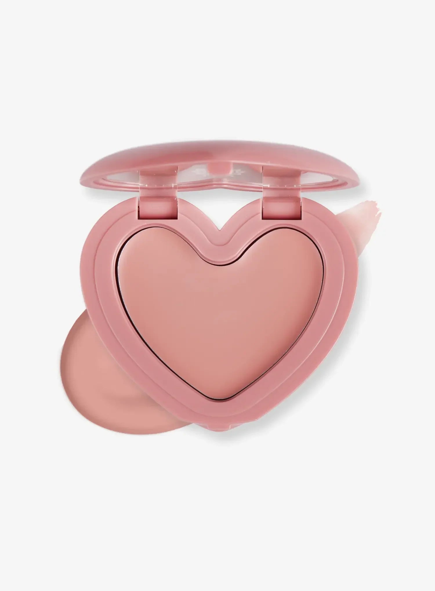User-friendly, highly buildable balm blush in heart-shaped packaging.