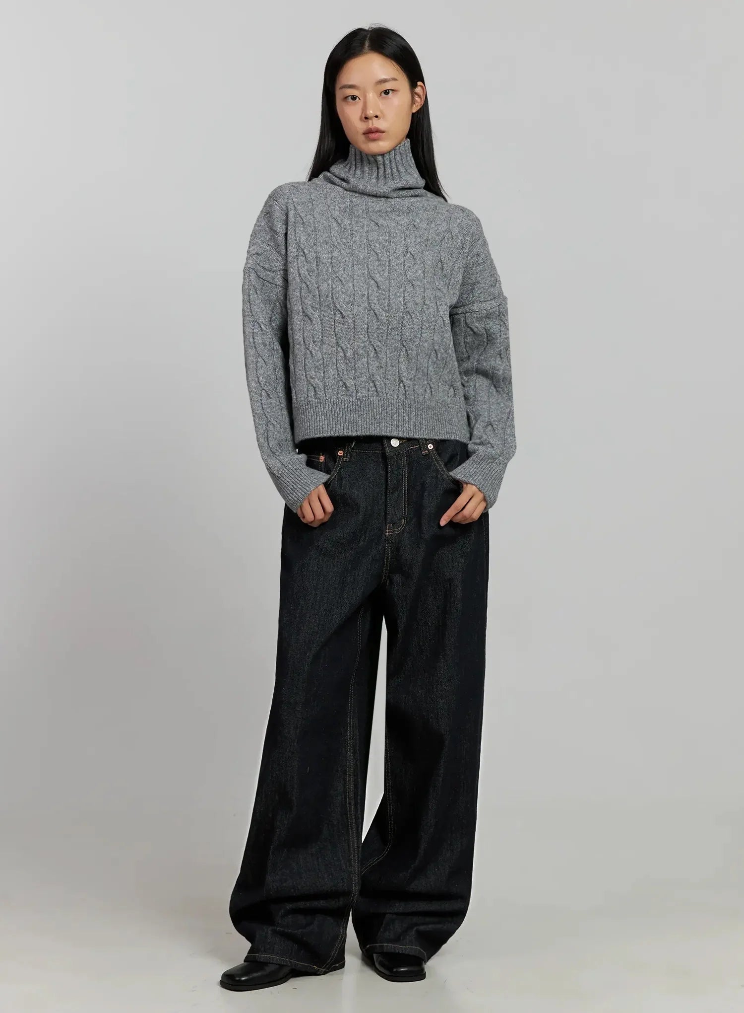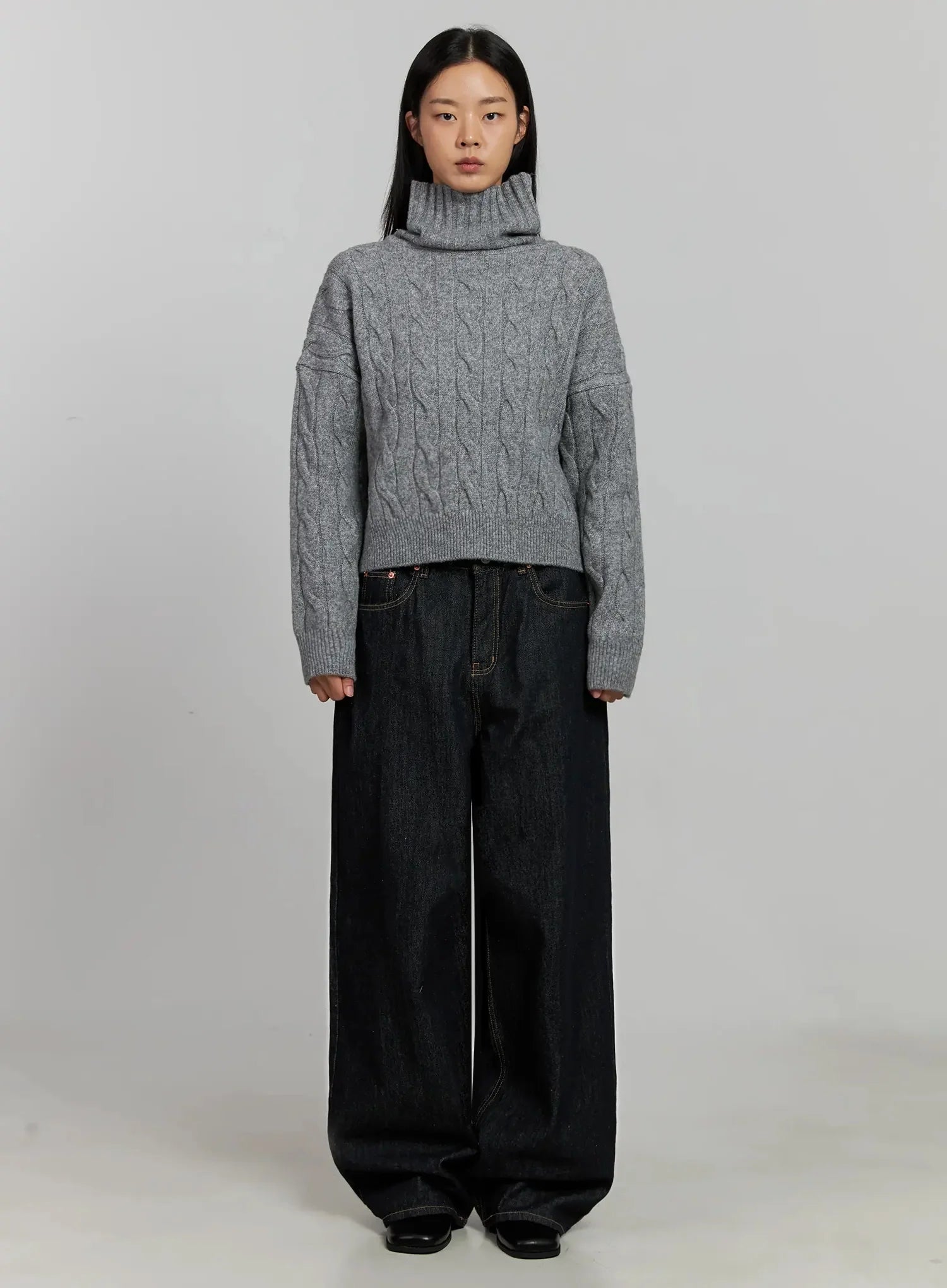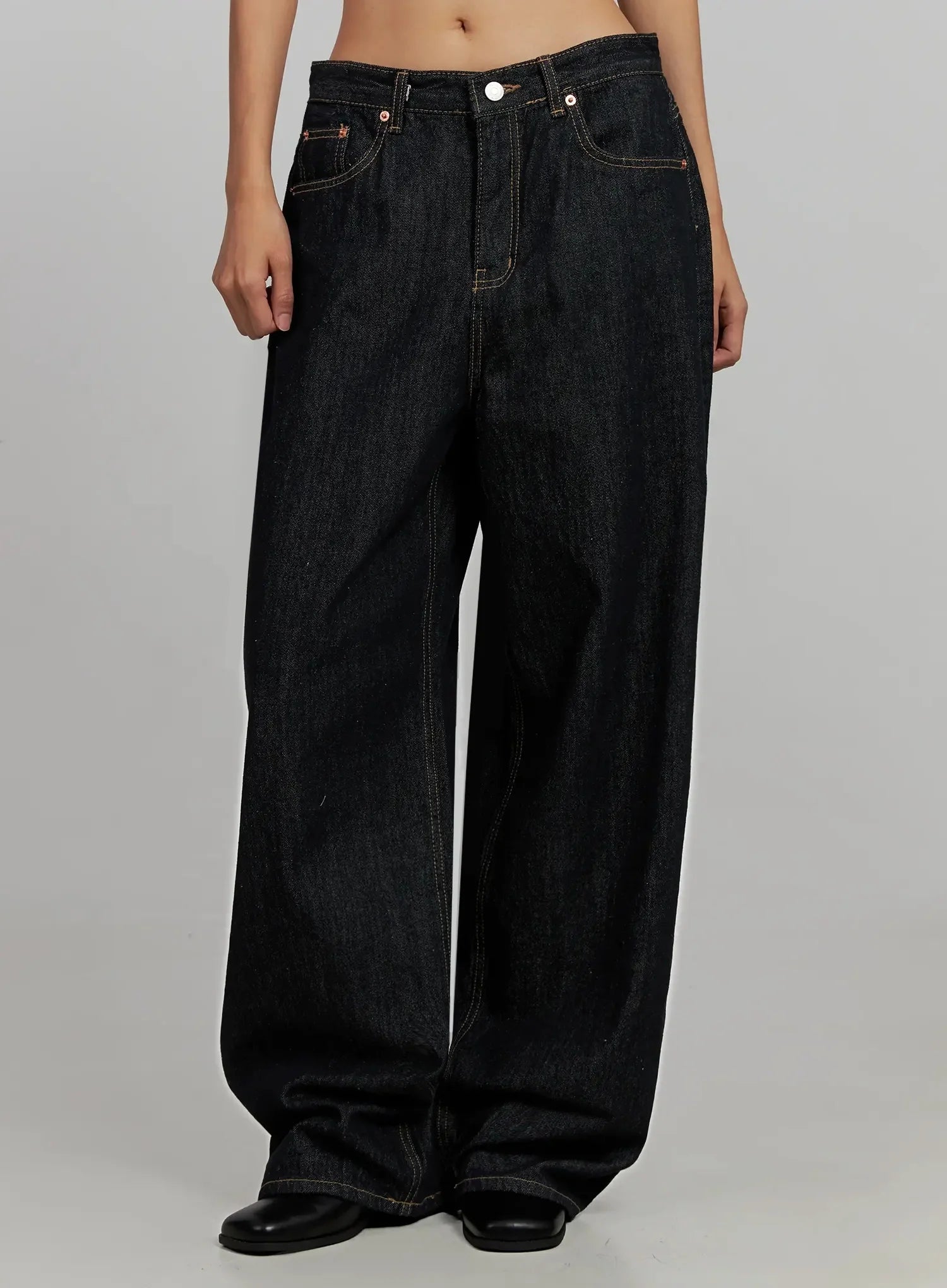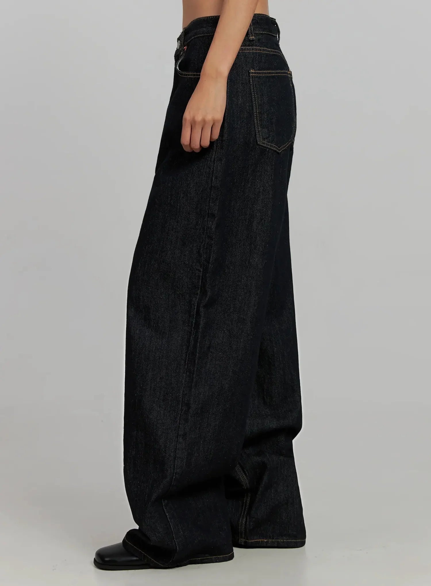 Malia Fleece-Lined Dark Wash Wide Jeans IJ502