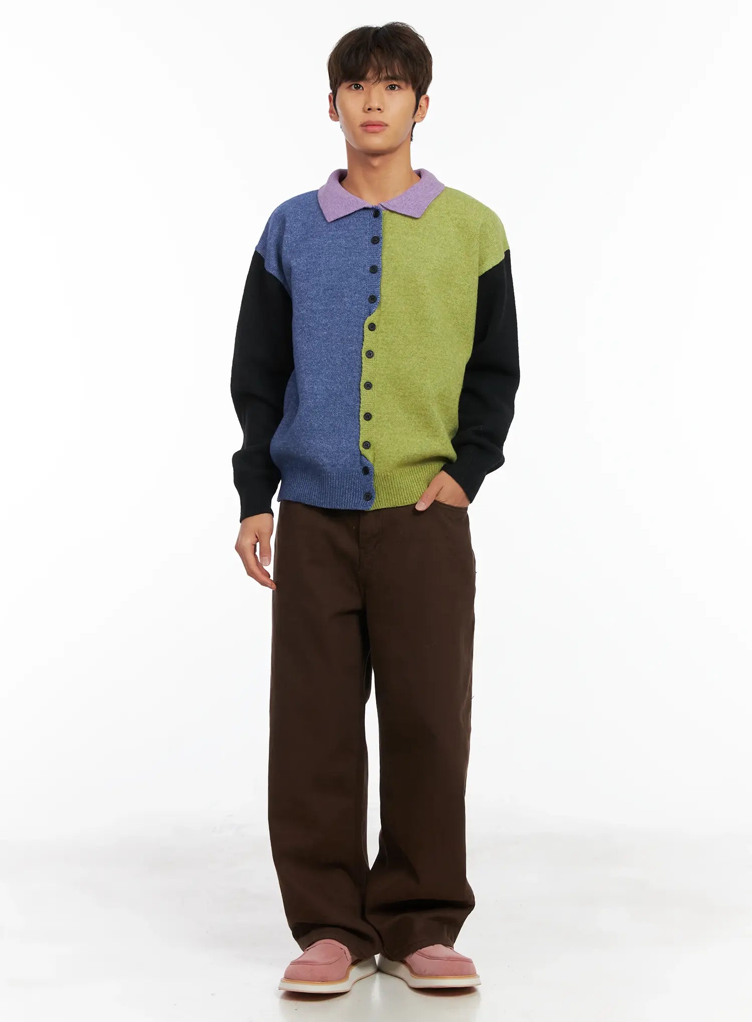 Men's Brown Herringbone Wide Cotton Pants ID511