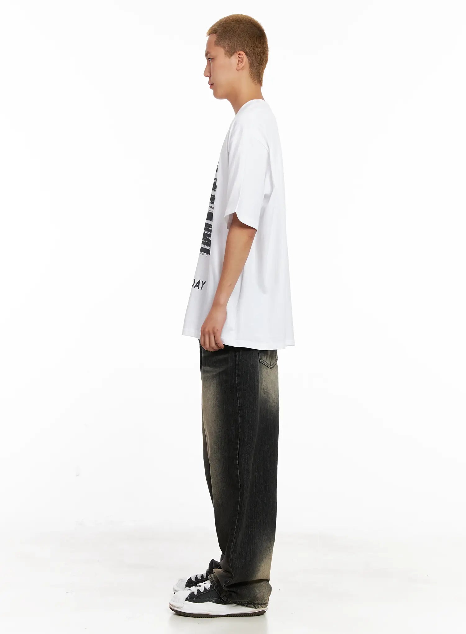 Men's Brushed Wide-Leg Denim Jeans IL521