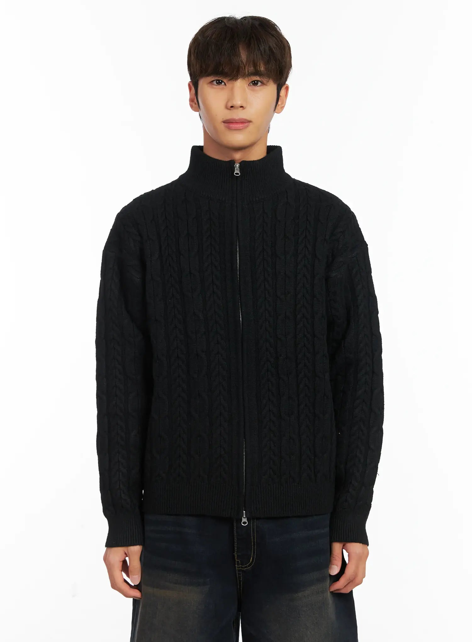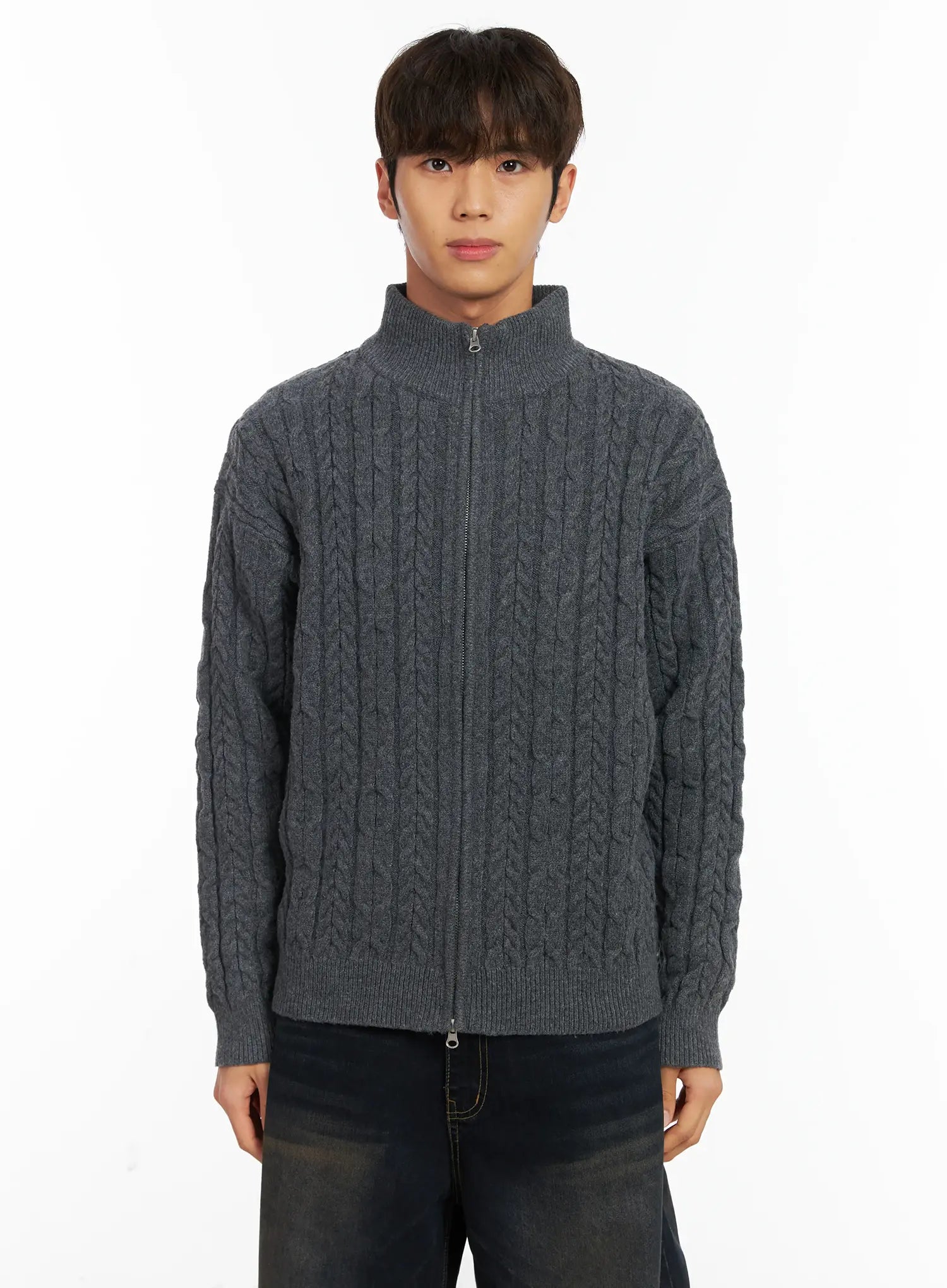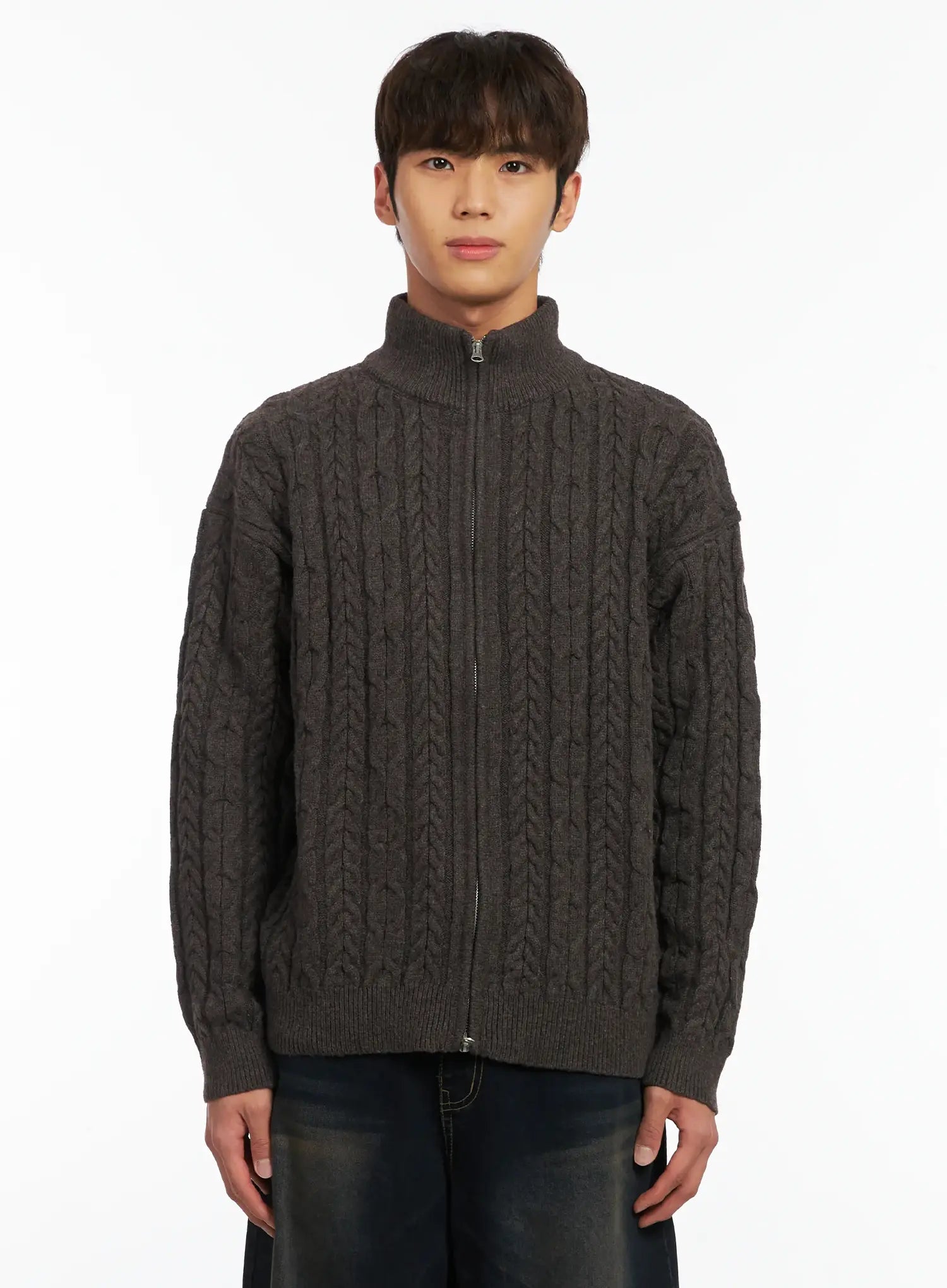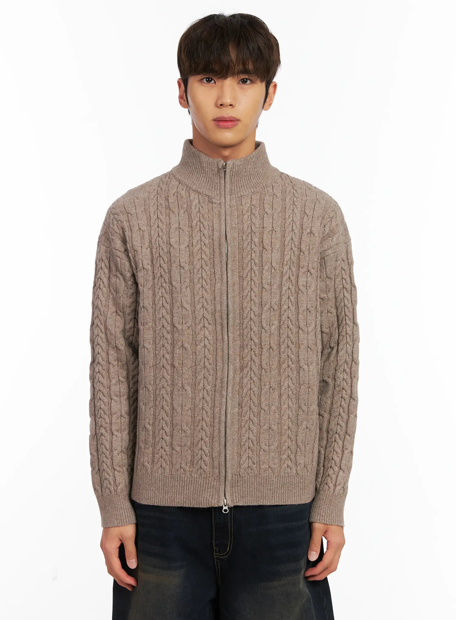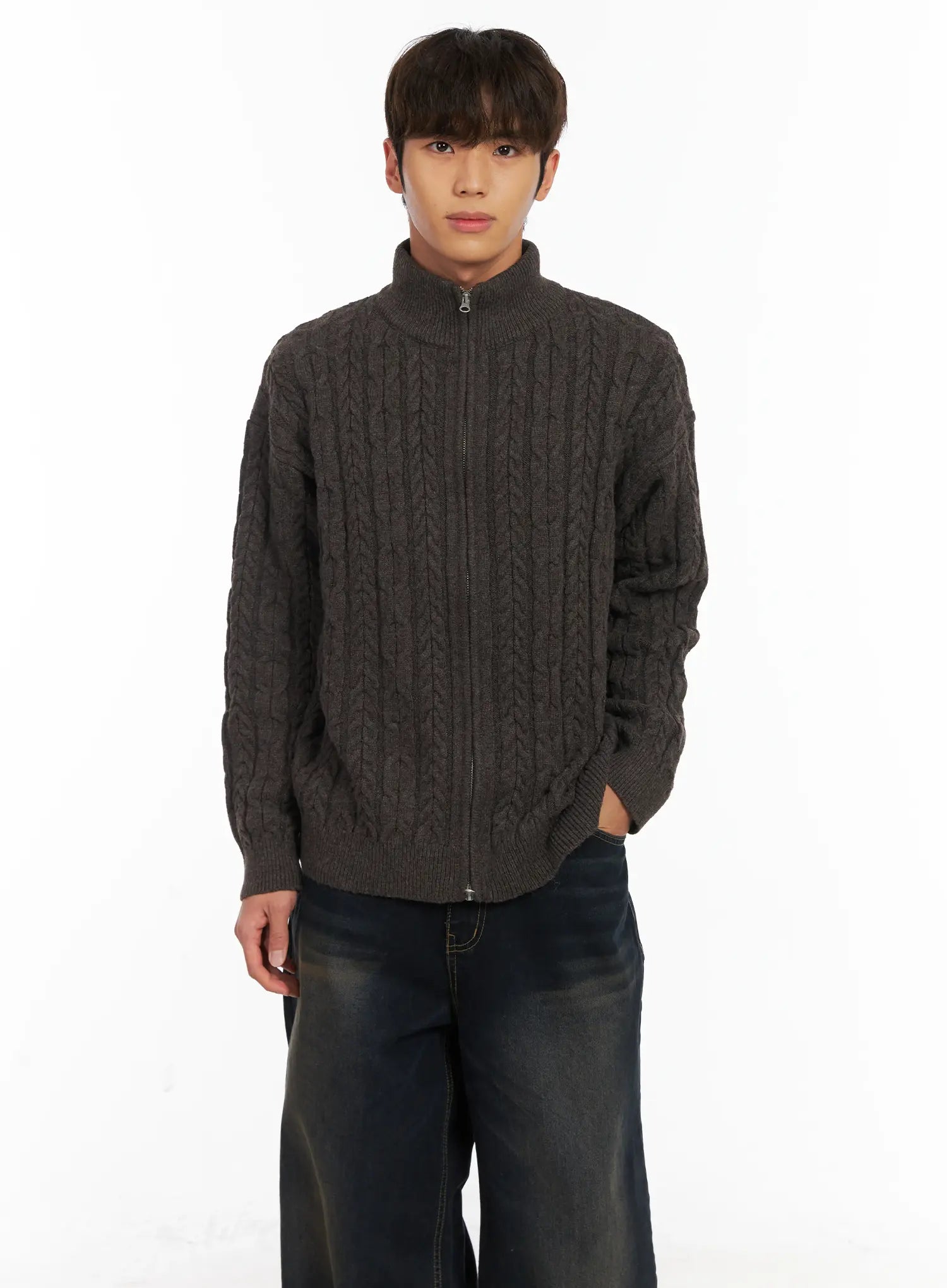 Men's Cable Knit Zip-Up Cardigan ID511