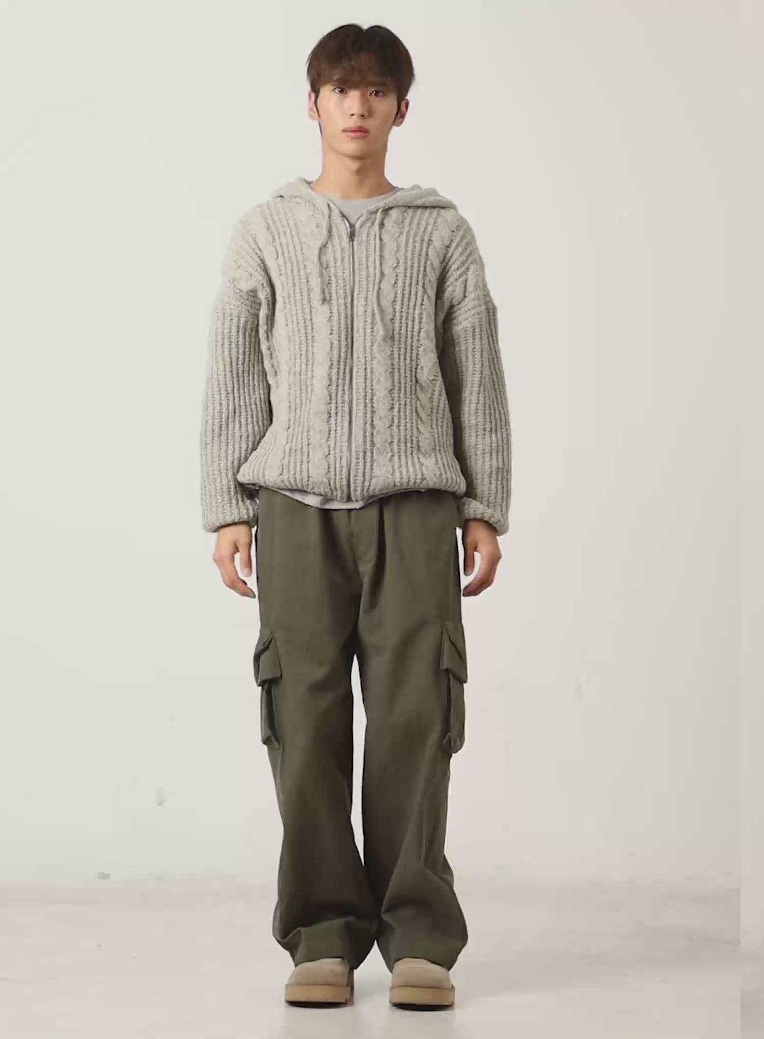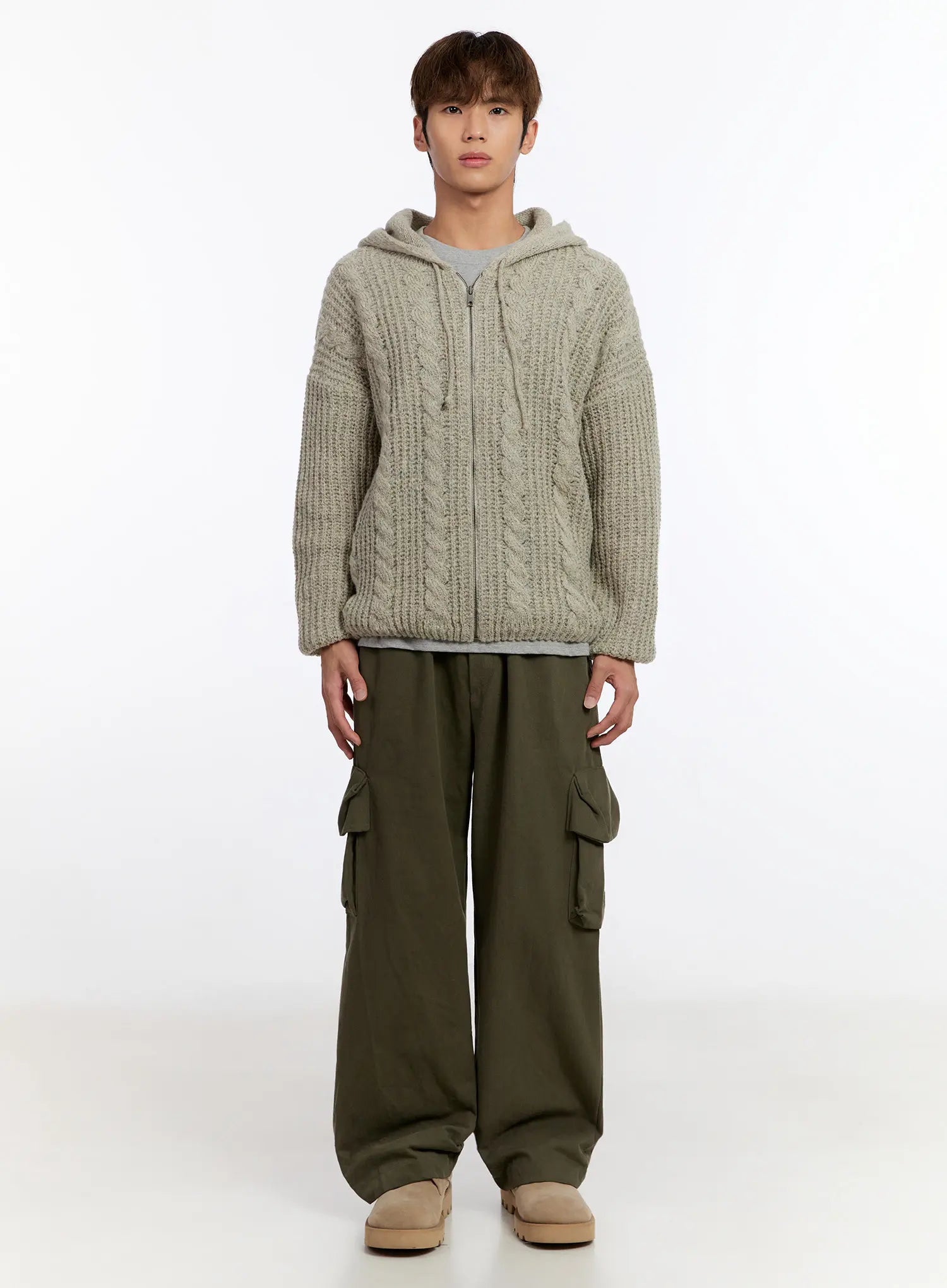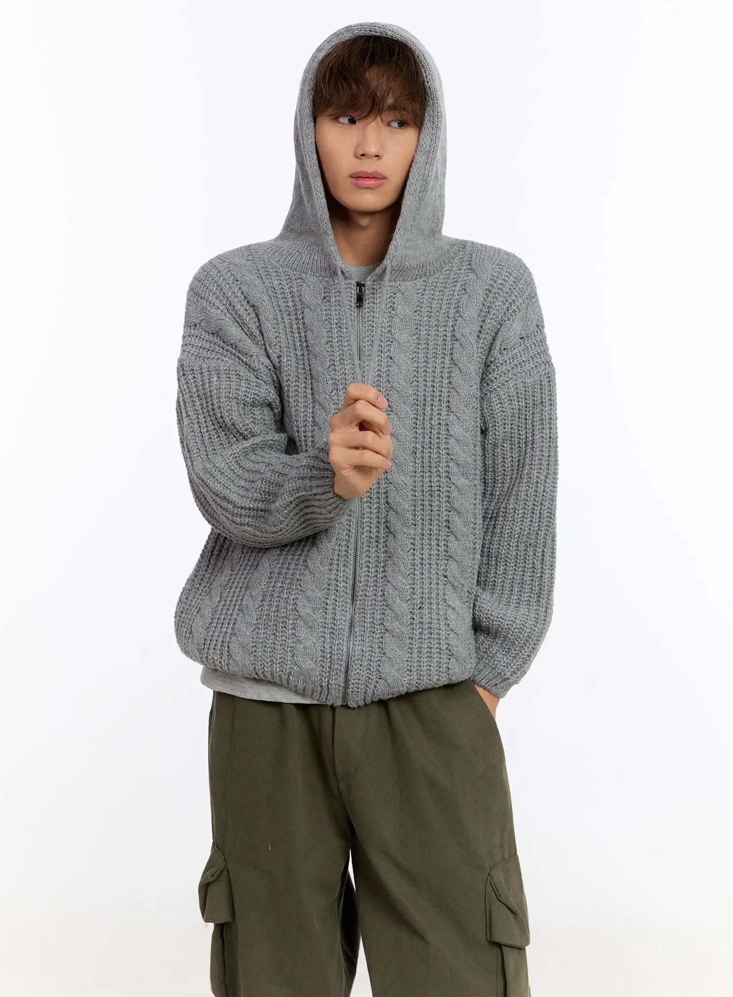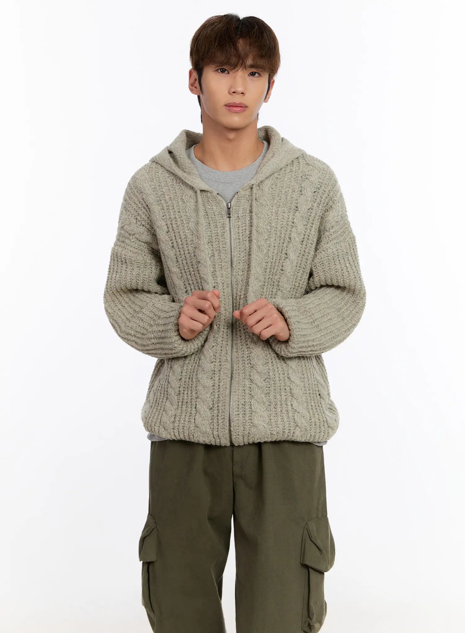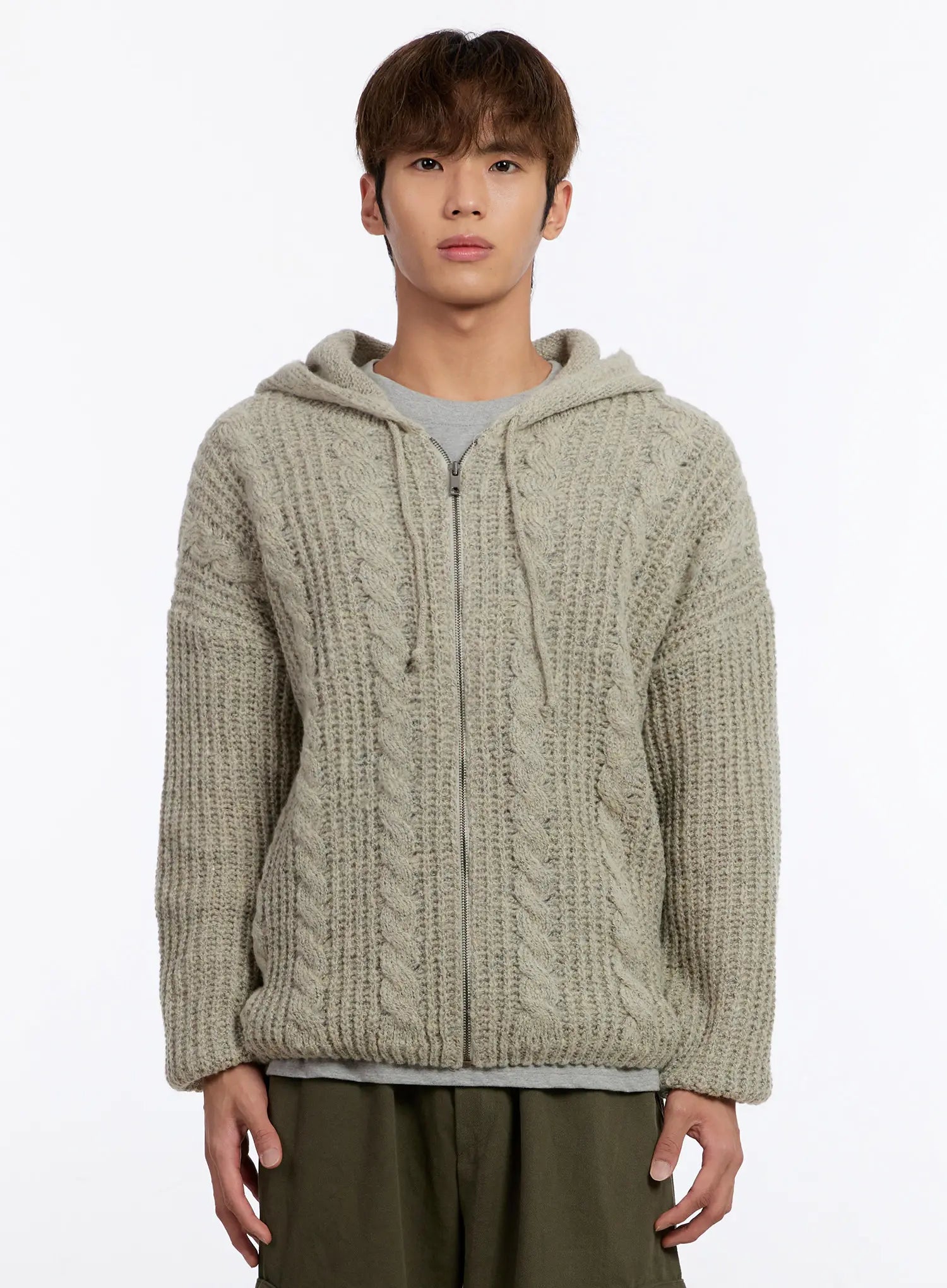 Men's Cable Knit Zip-Up IN524
