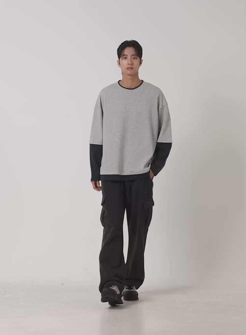 Model is wearing size L and the color Dark gray.