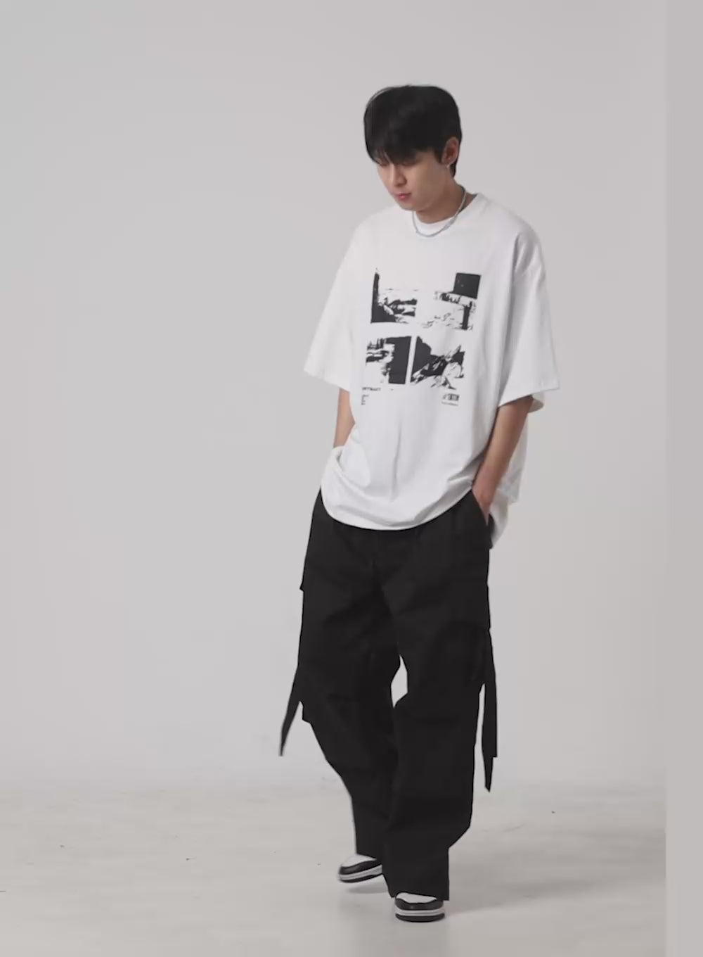 Men's Cargo Wide-Leg Pants (Dark Gray) IG402
