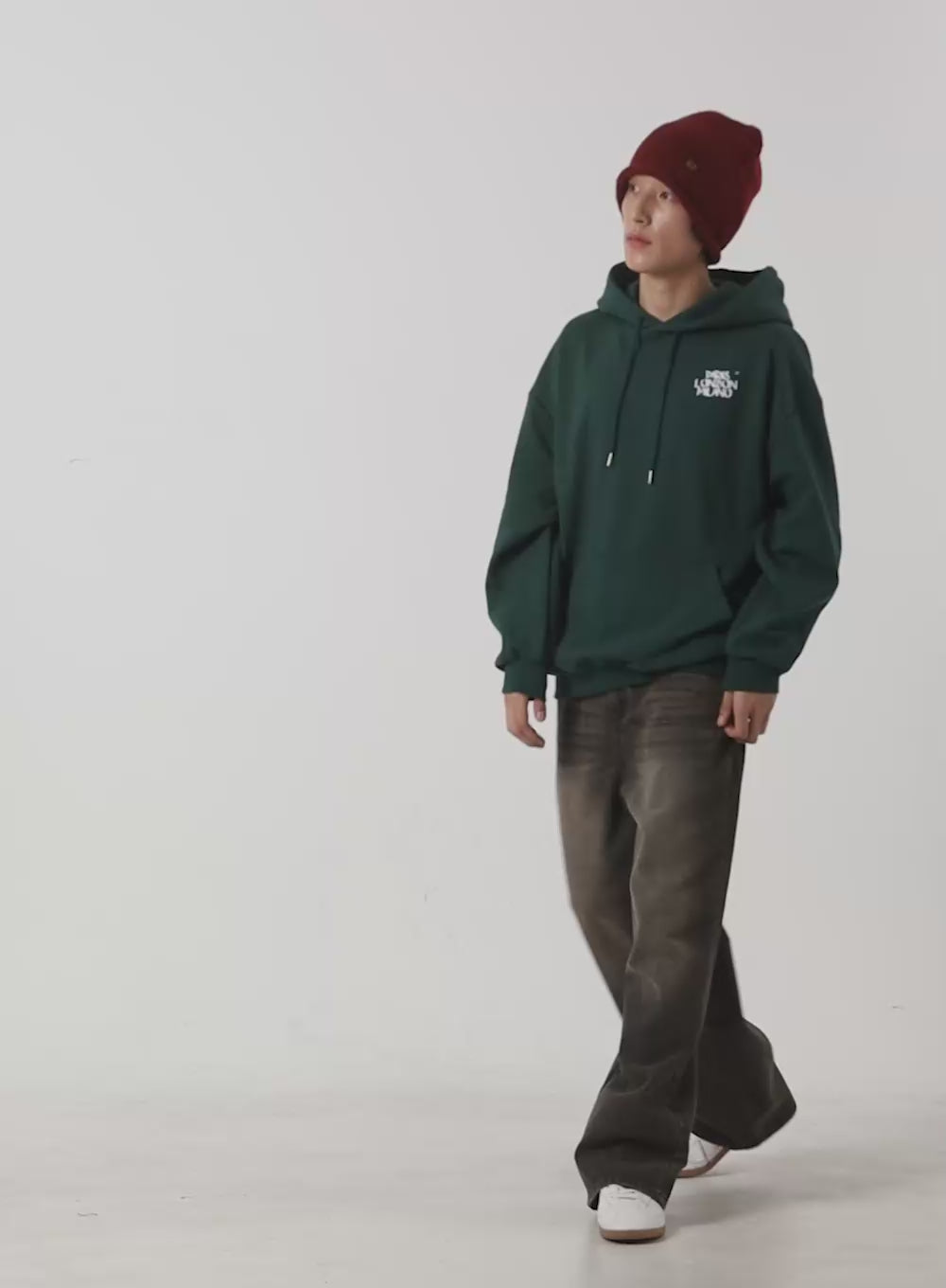 Model is wearing size L/1XL and the color Dark green.