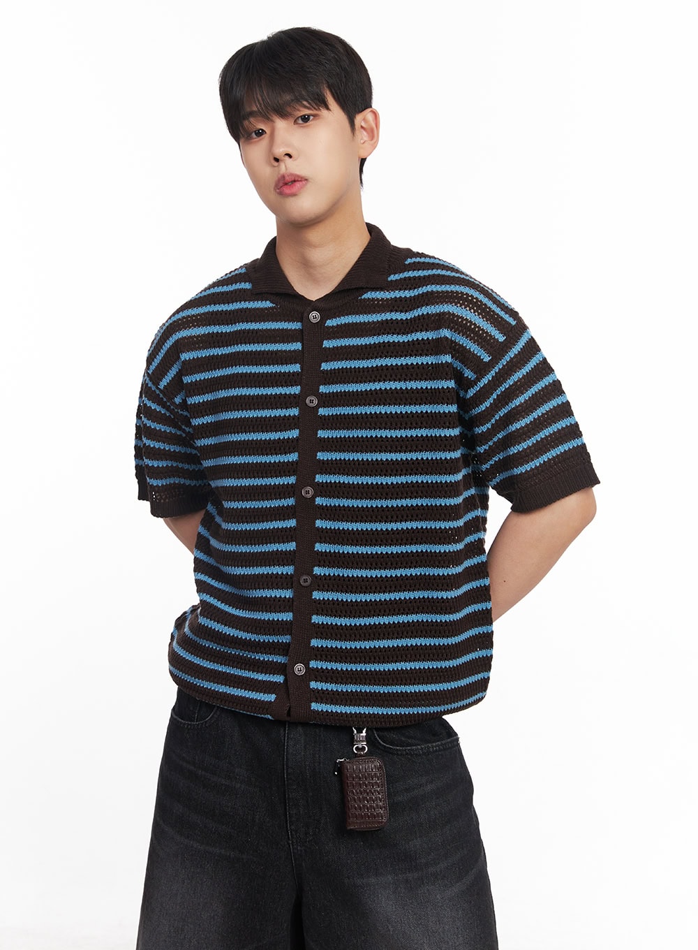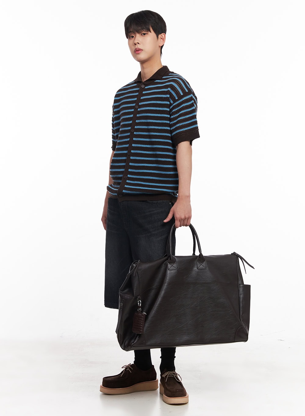 Men's Cracked-Effect Pouch Keychain IY522