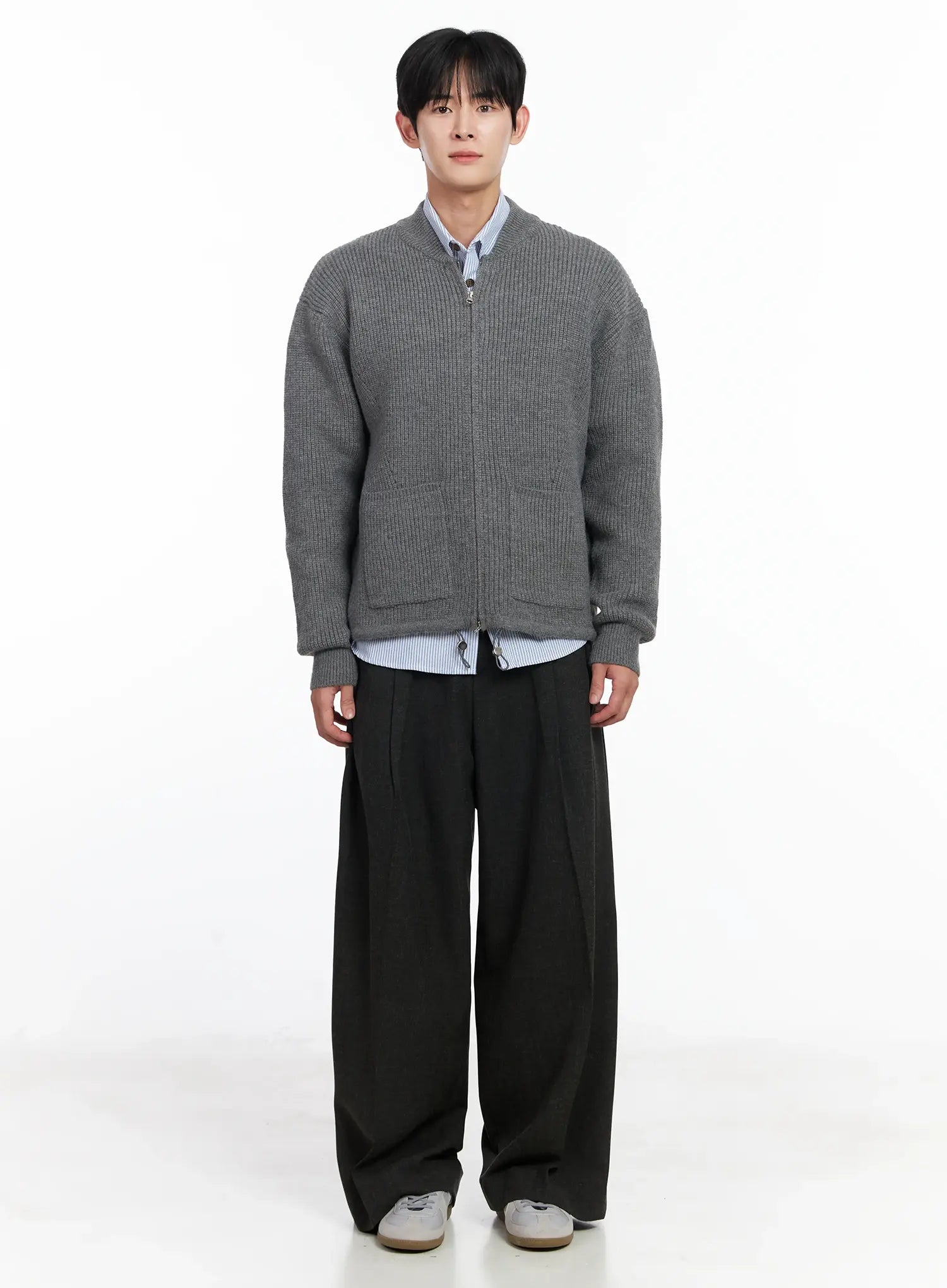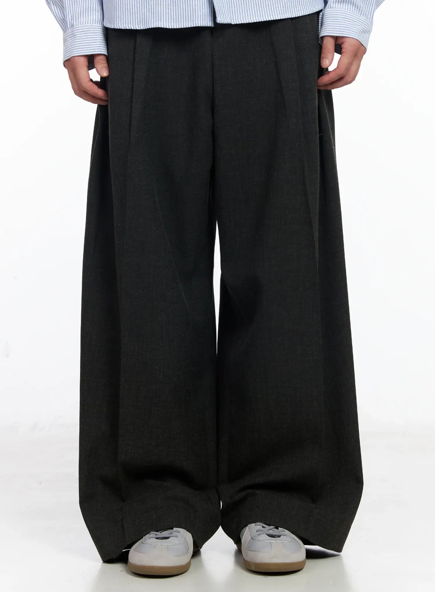 Men's Dark Gray Wide Slacks IJ521
