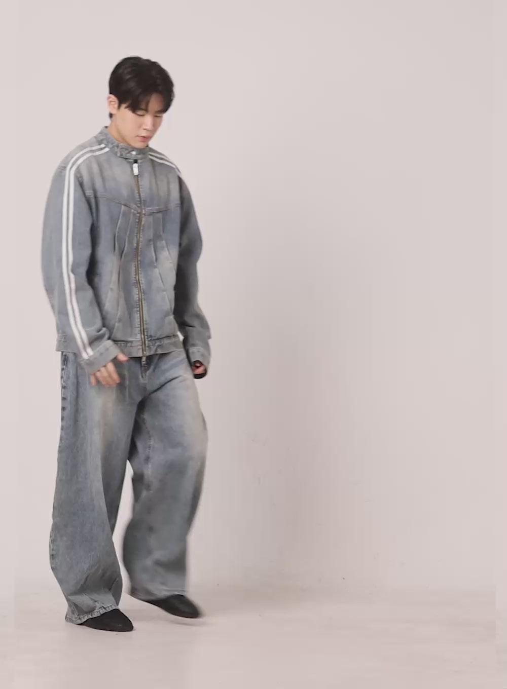 Men's Denim Zip-Up Track Jacket IF528