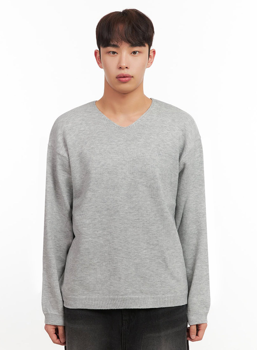 Men's Essential Gray V-Neck Sweater IF517