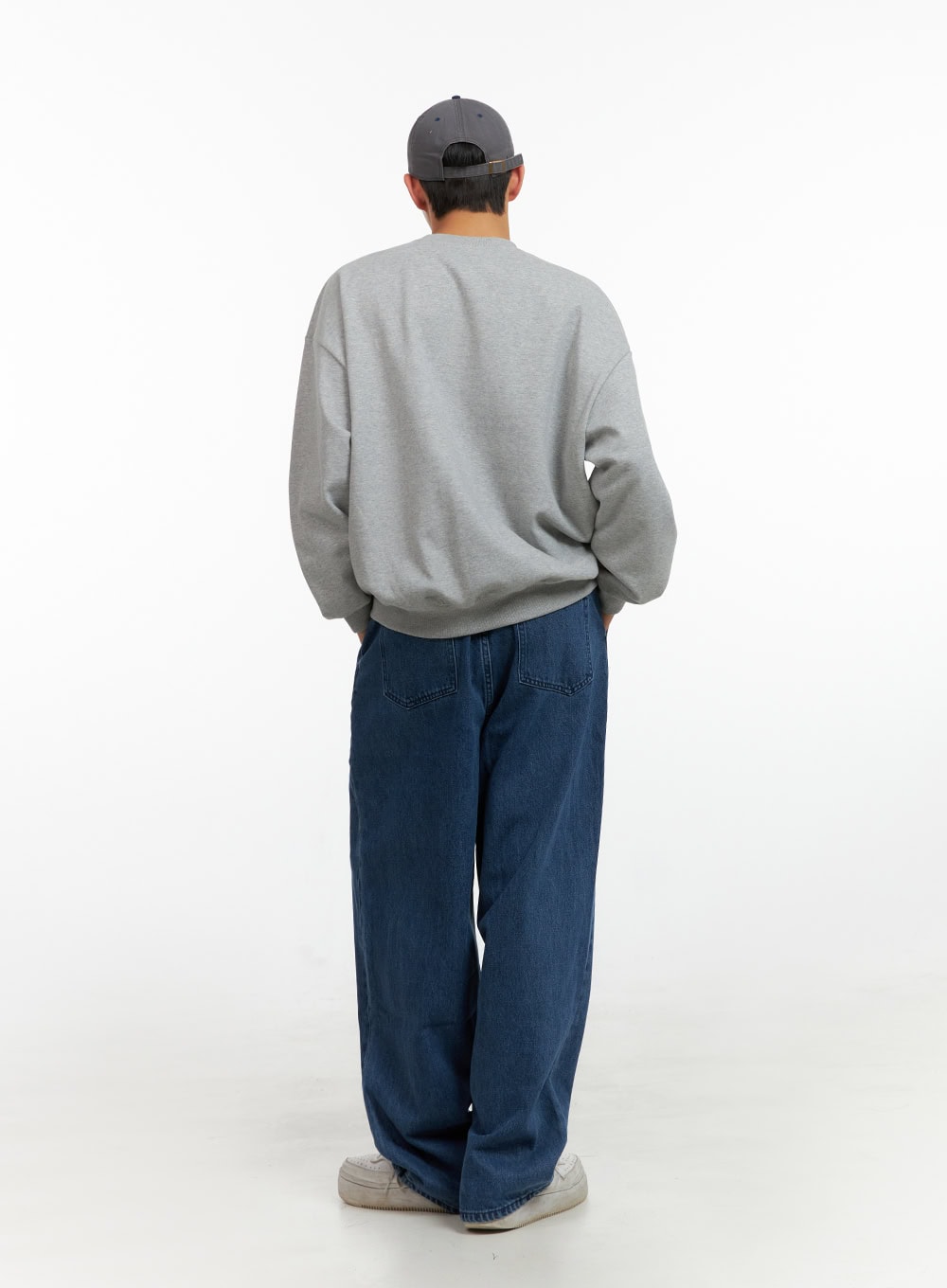Men's Graphic Lettering Crewneck Sweatshirt (Gray) IU414