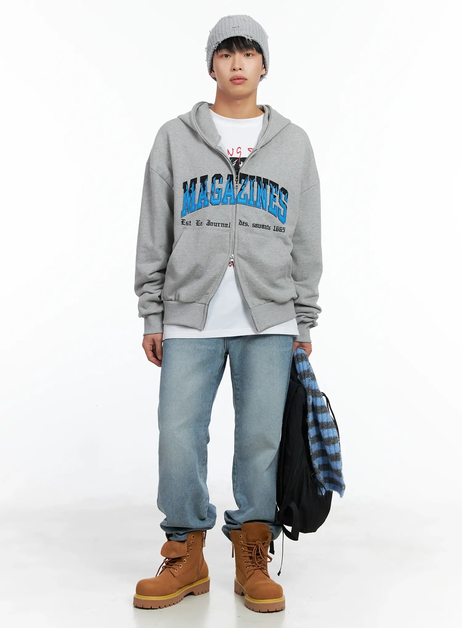 Men's Graphic Magazine Zip-Up Hoodie IN518