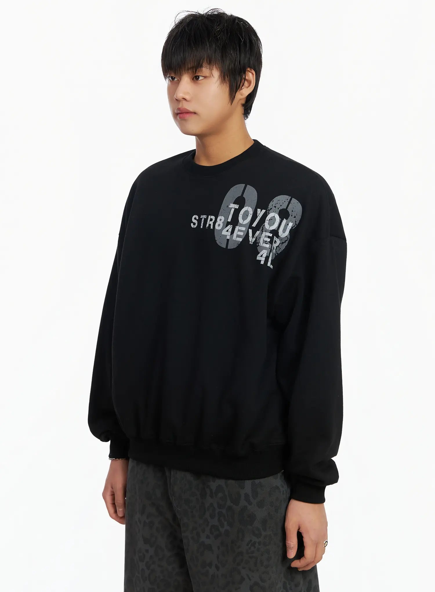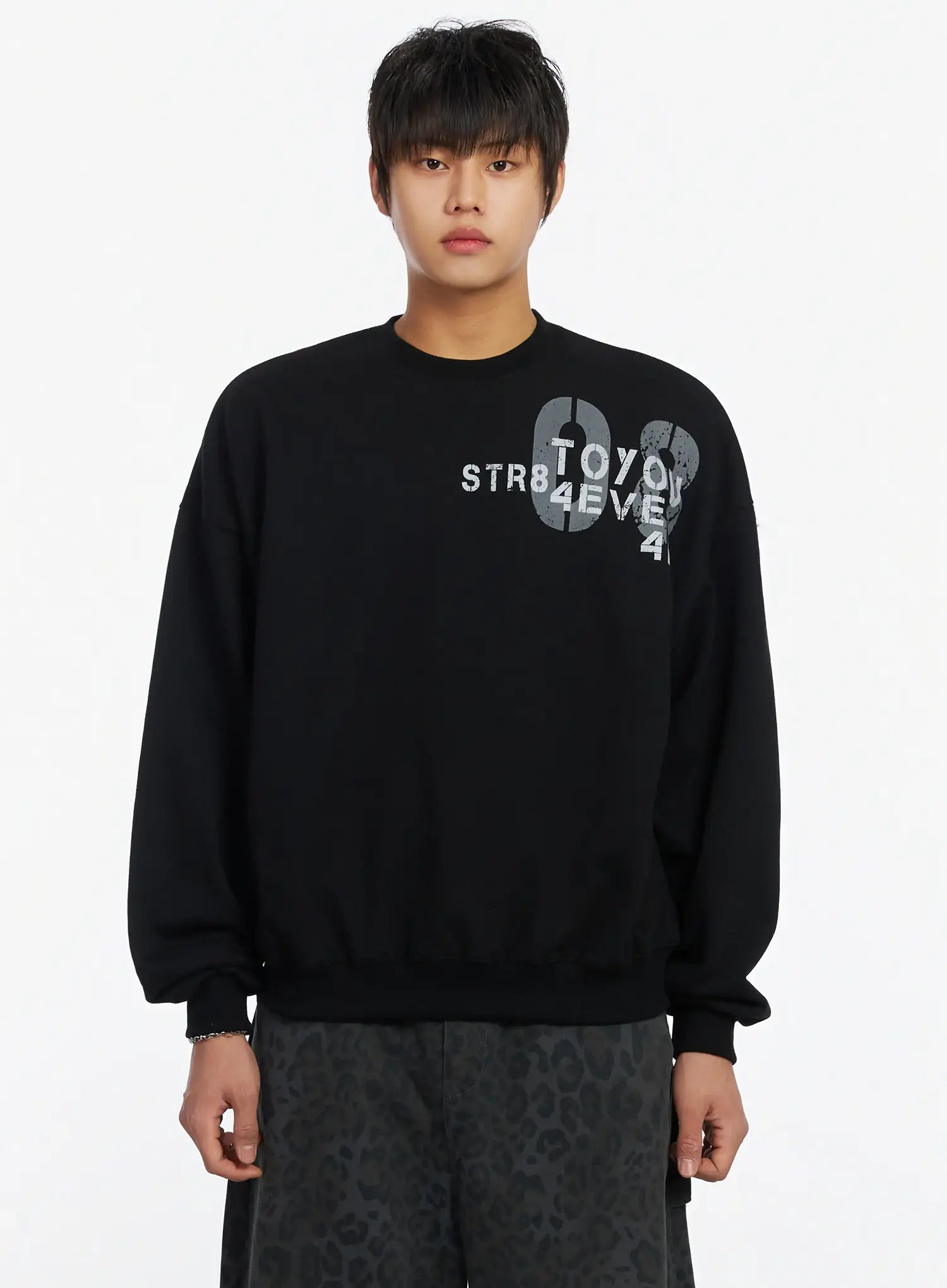 Men's Graphic Print Fleece Crewneck Sweatshirt IJ527