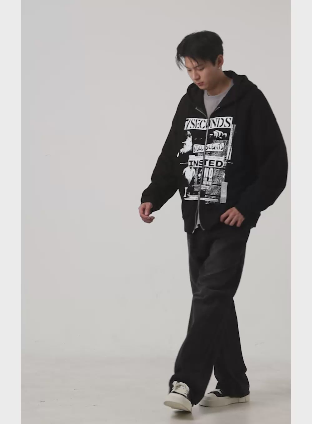 Men's Graphic Print Oversized Zip-Up Hoodie IO428