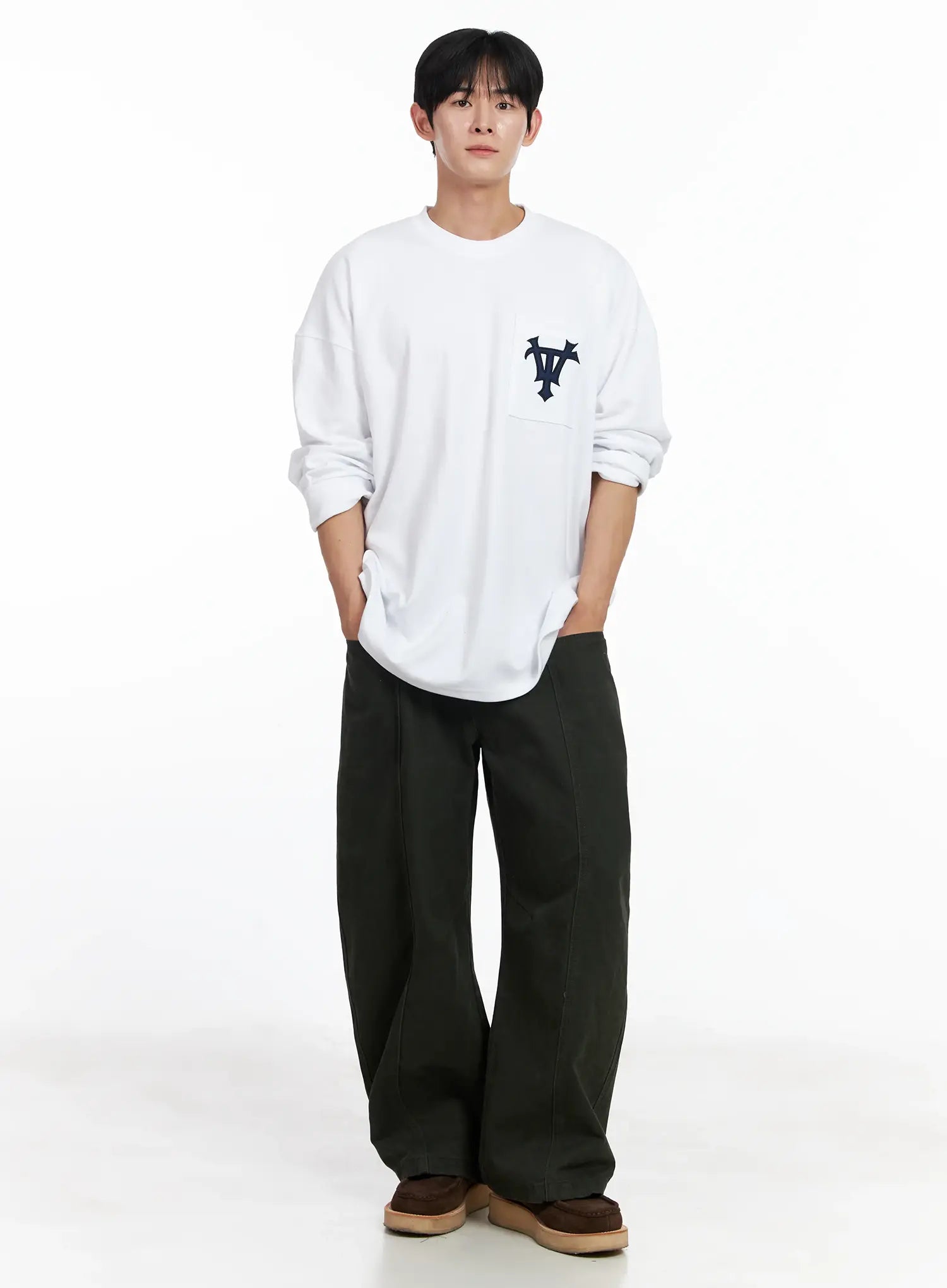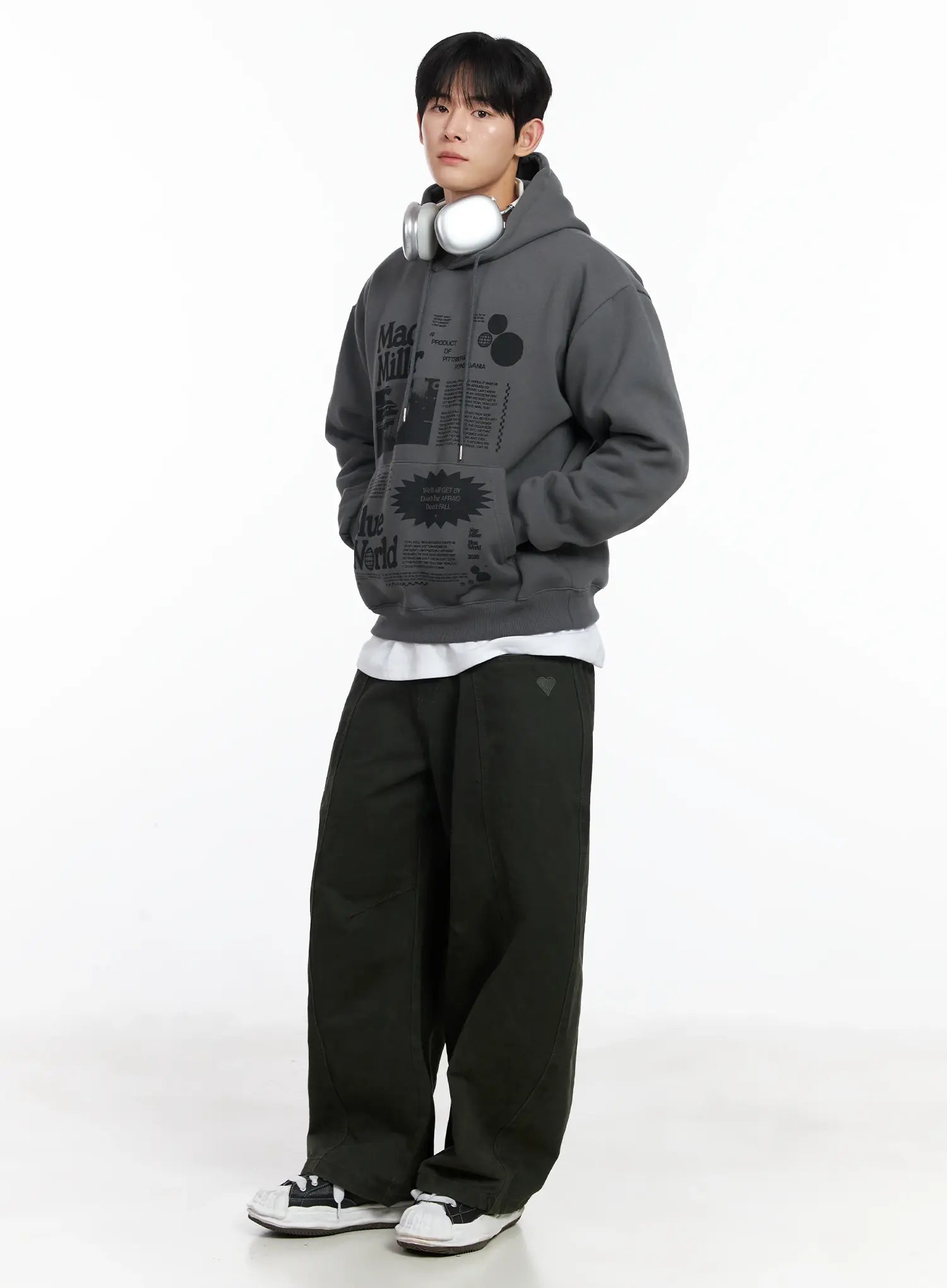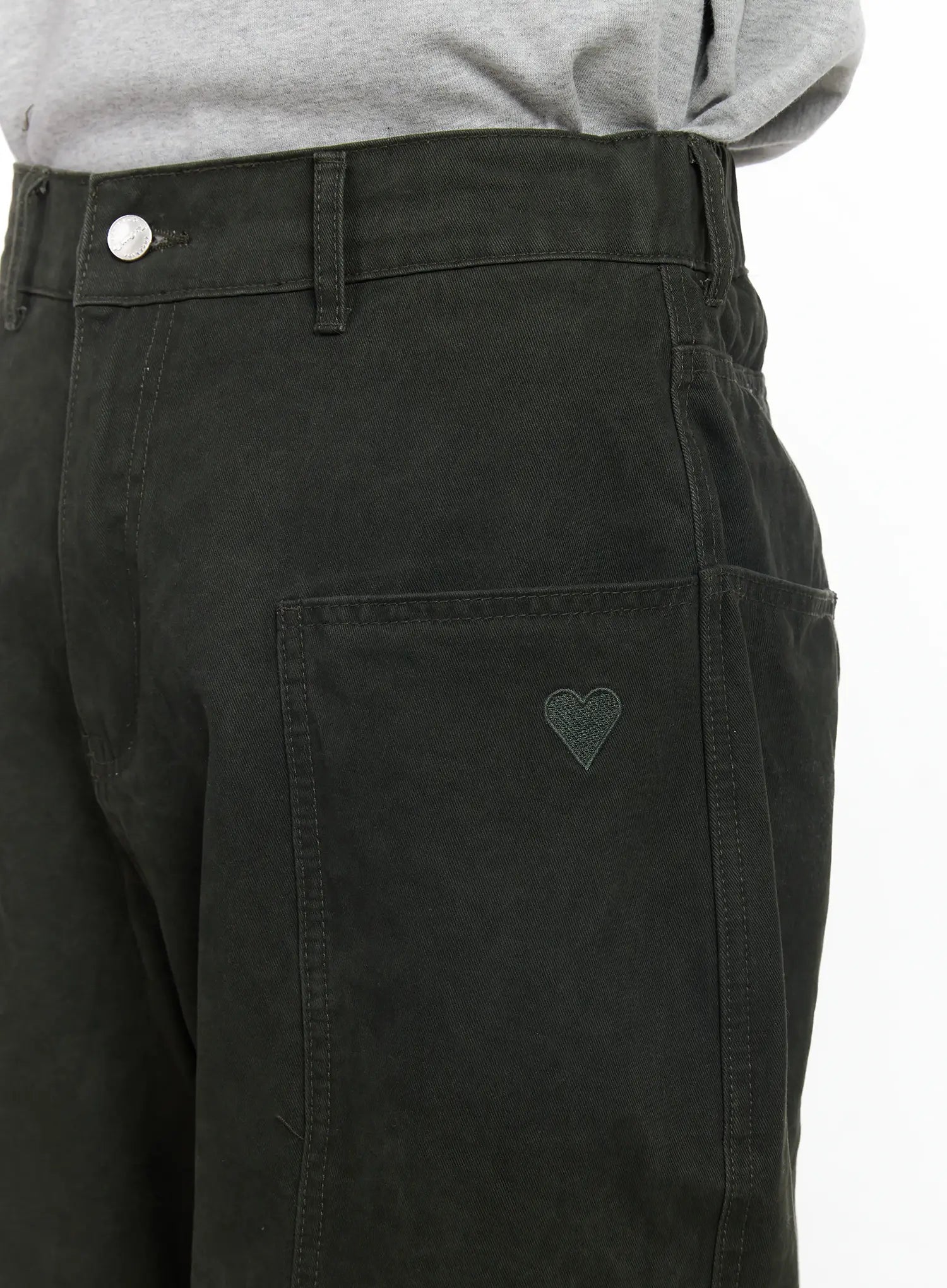 Men's Heart Embroidered Wide Cotton Pants IJ521