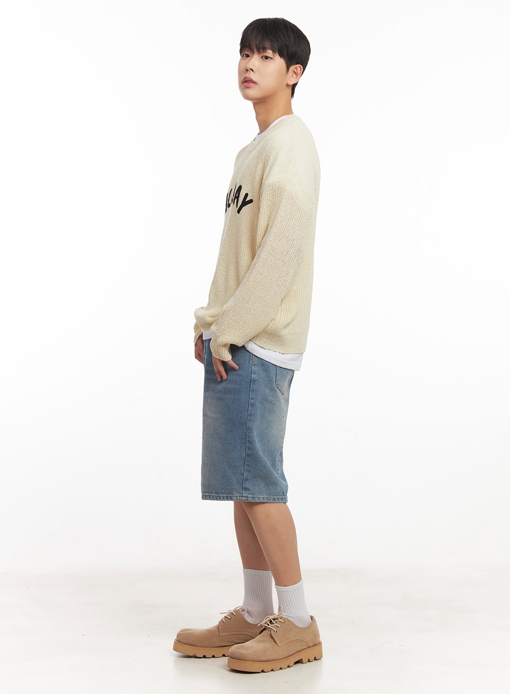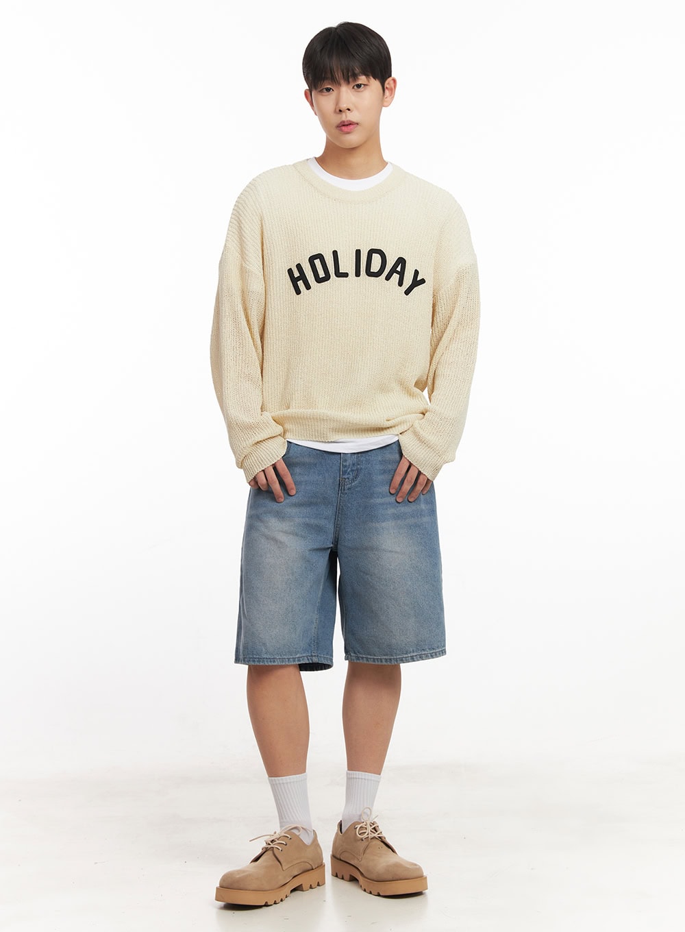 Model is wearing size M/L and the color Light beige.