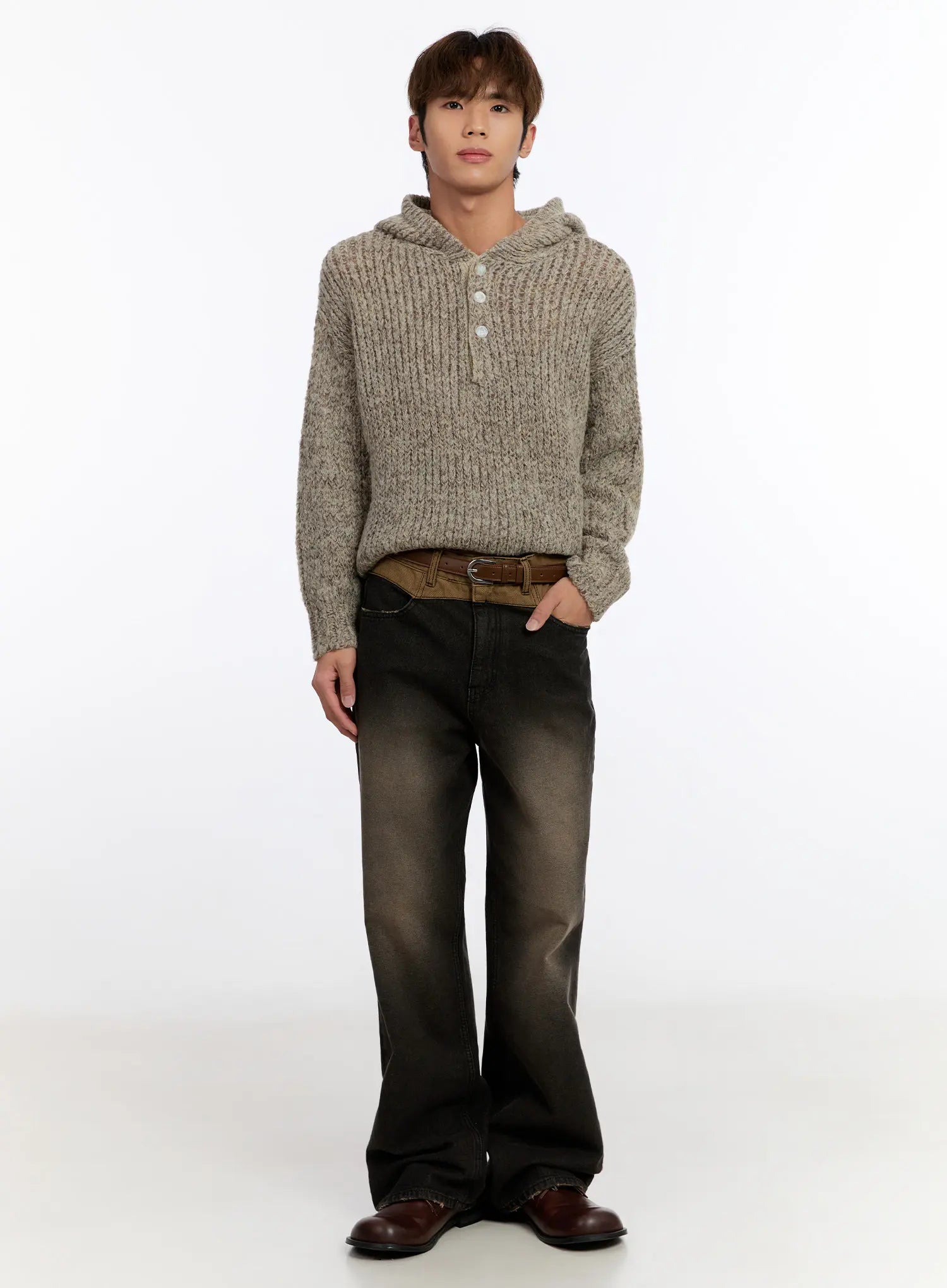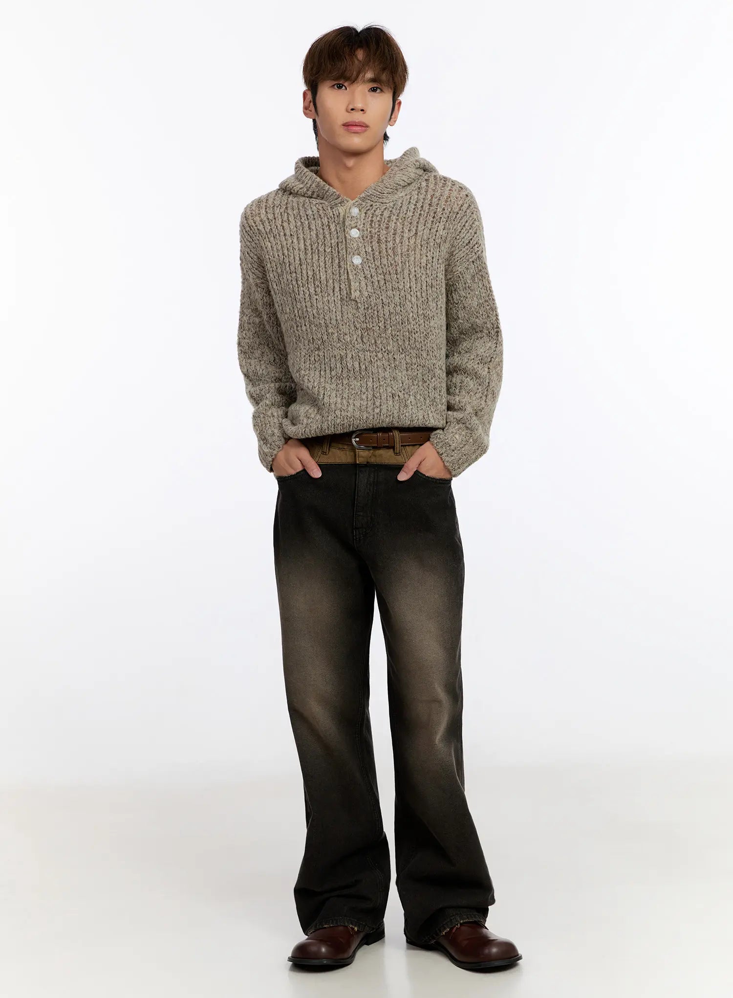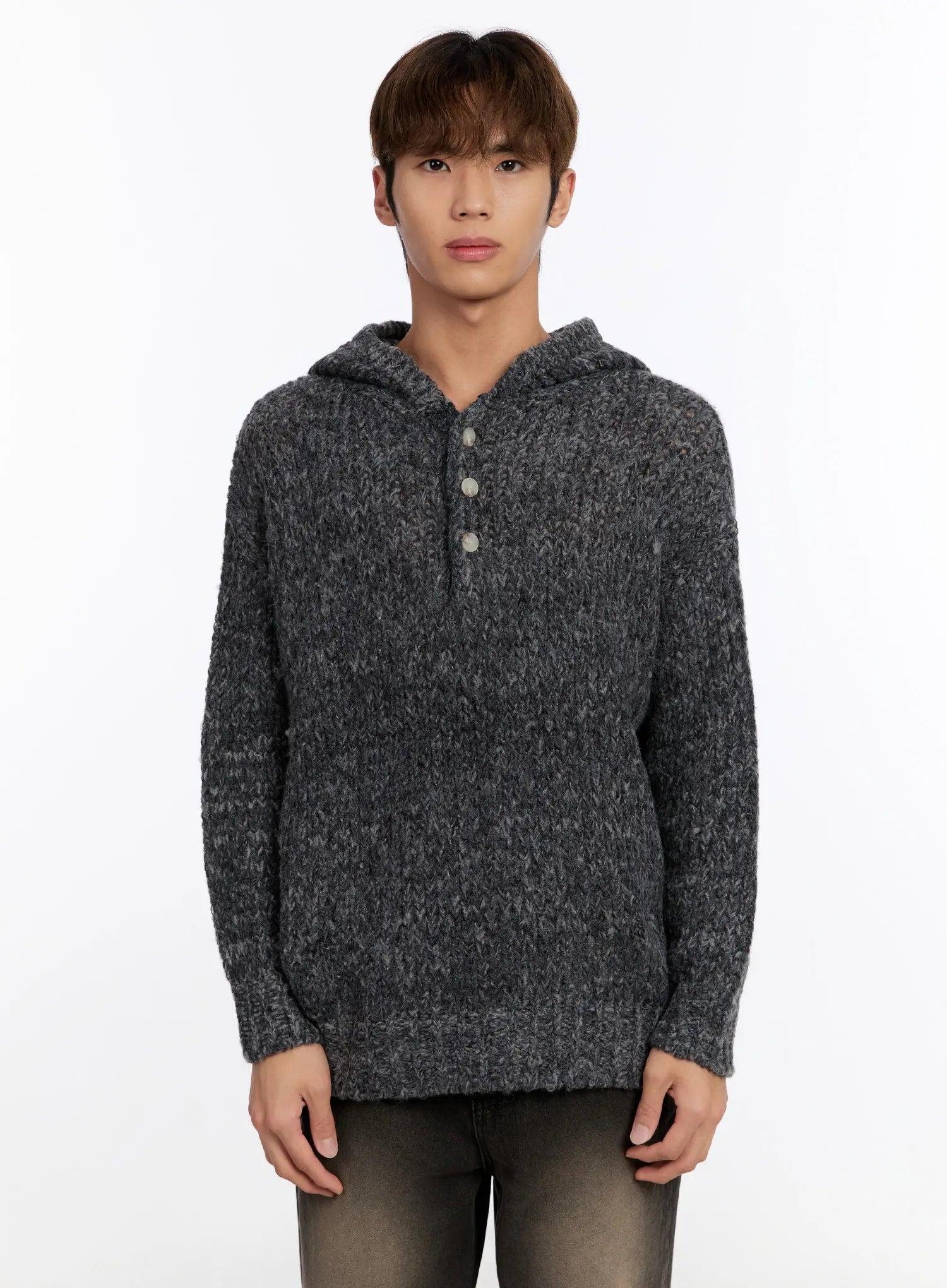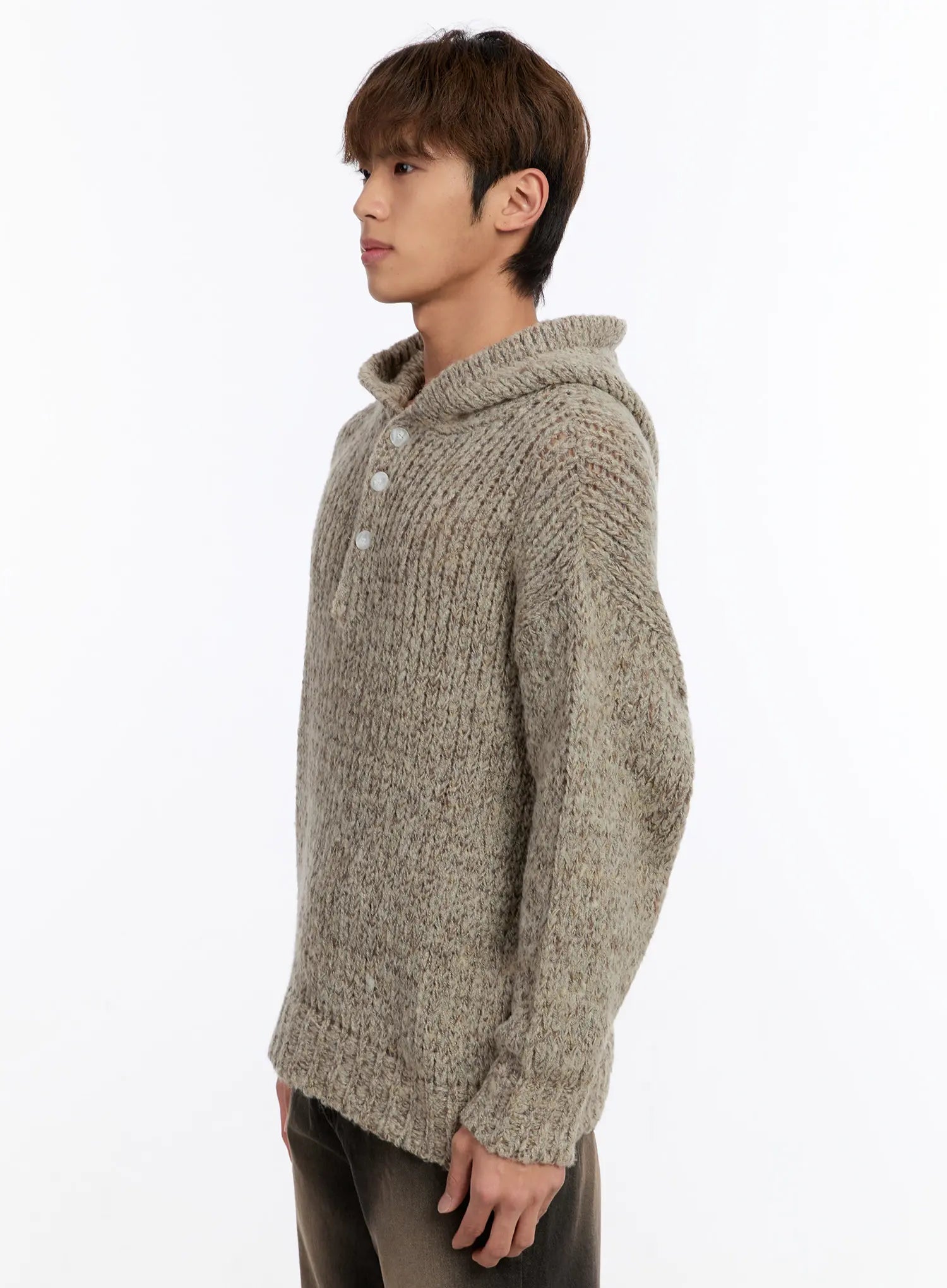 Men's Hooded Henley Knit Sweater IN528