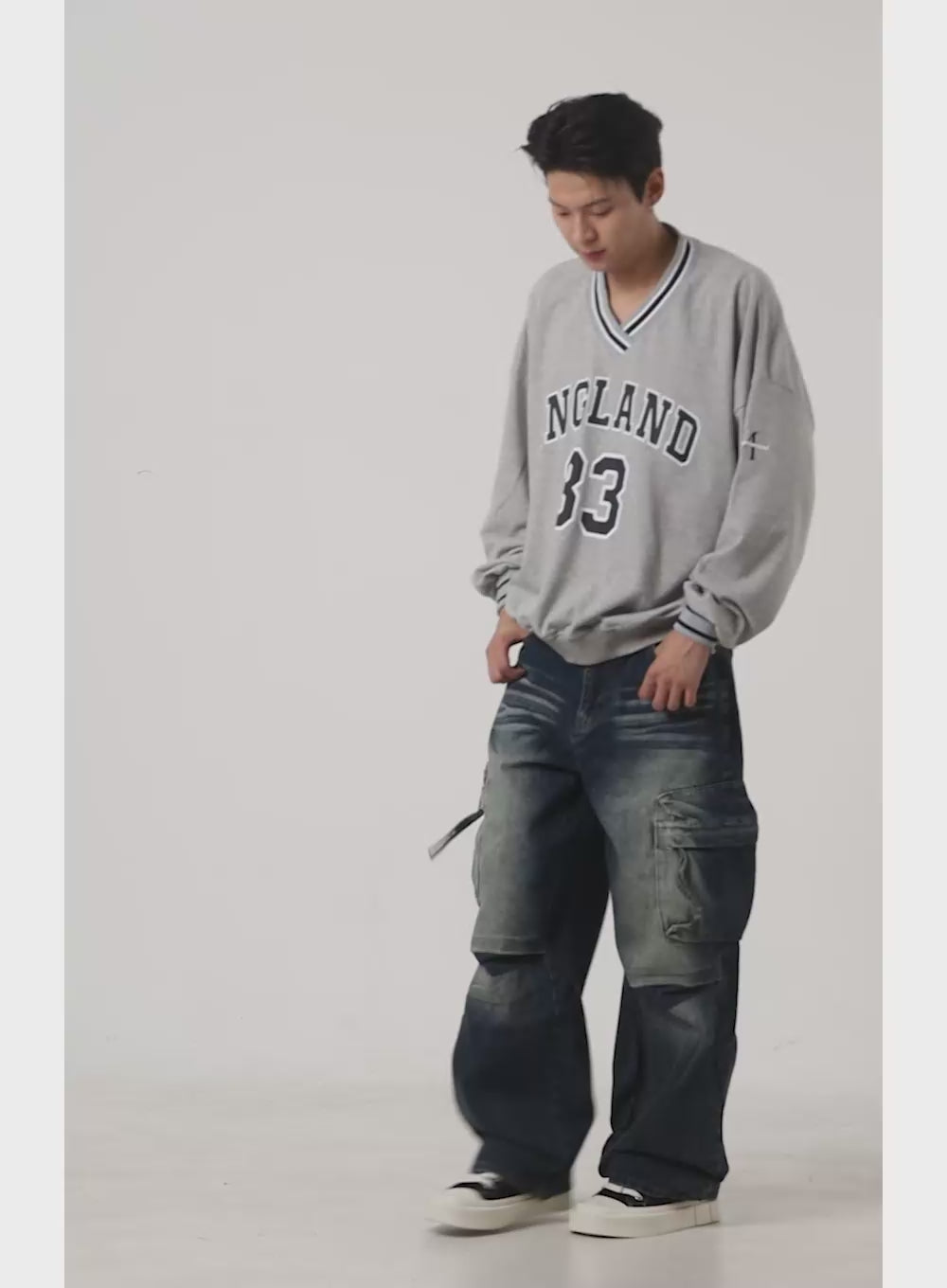 Men's Jersey Print V-Neck Sweatshirt IO428