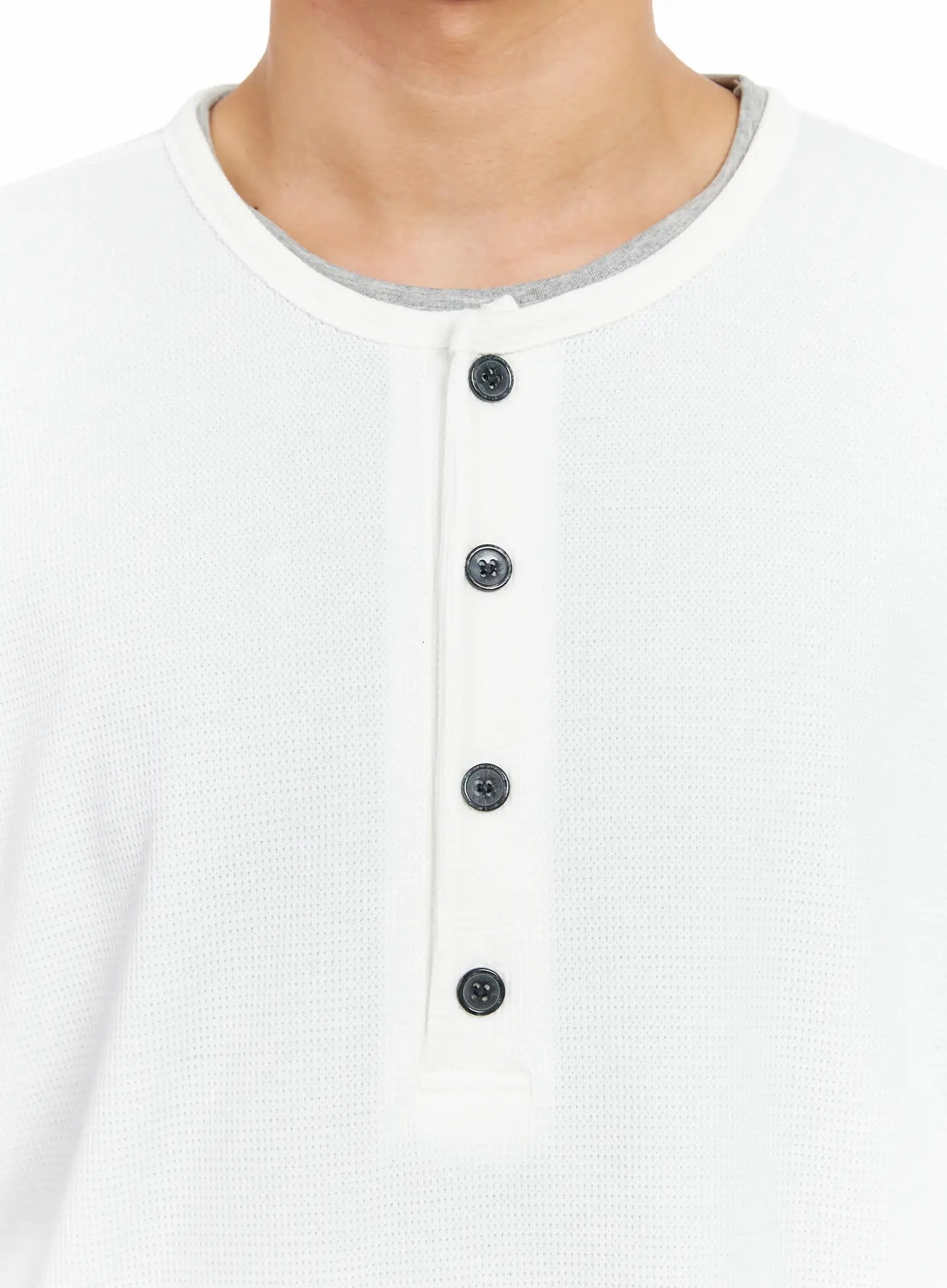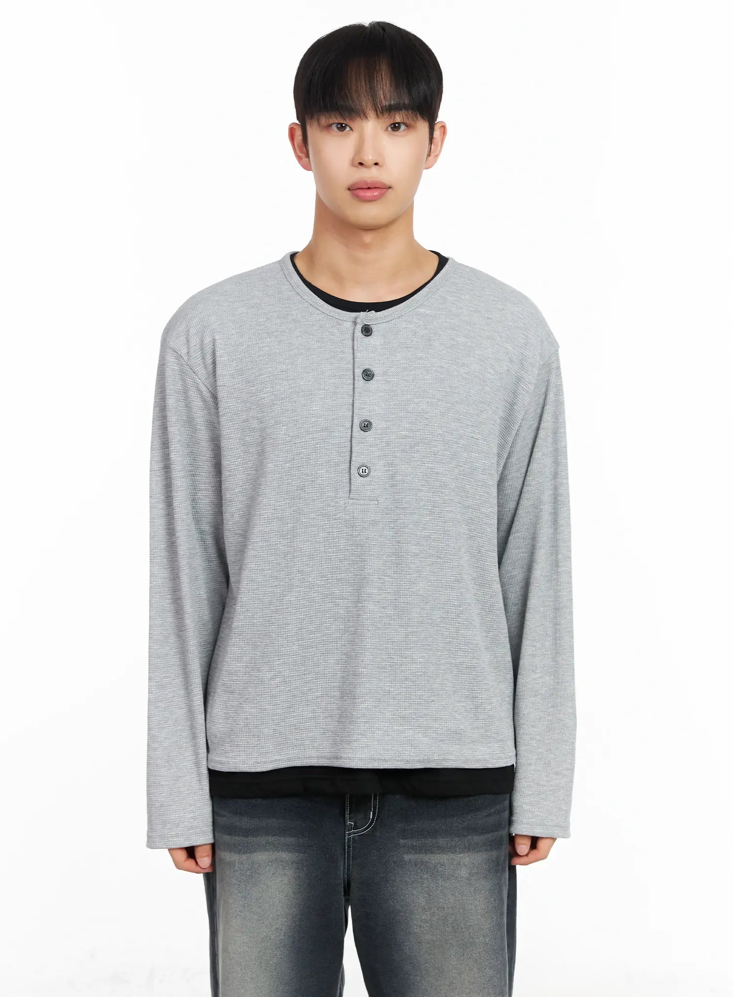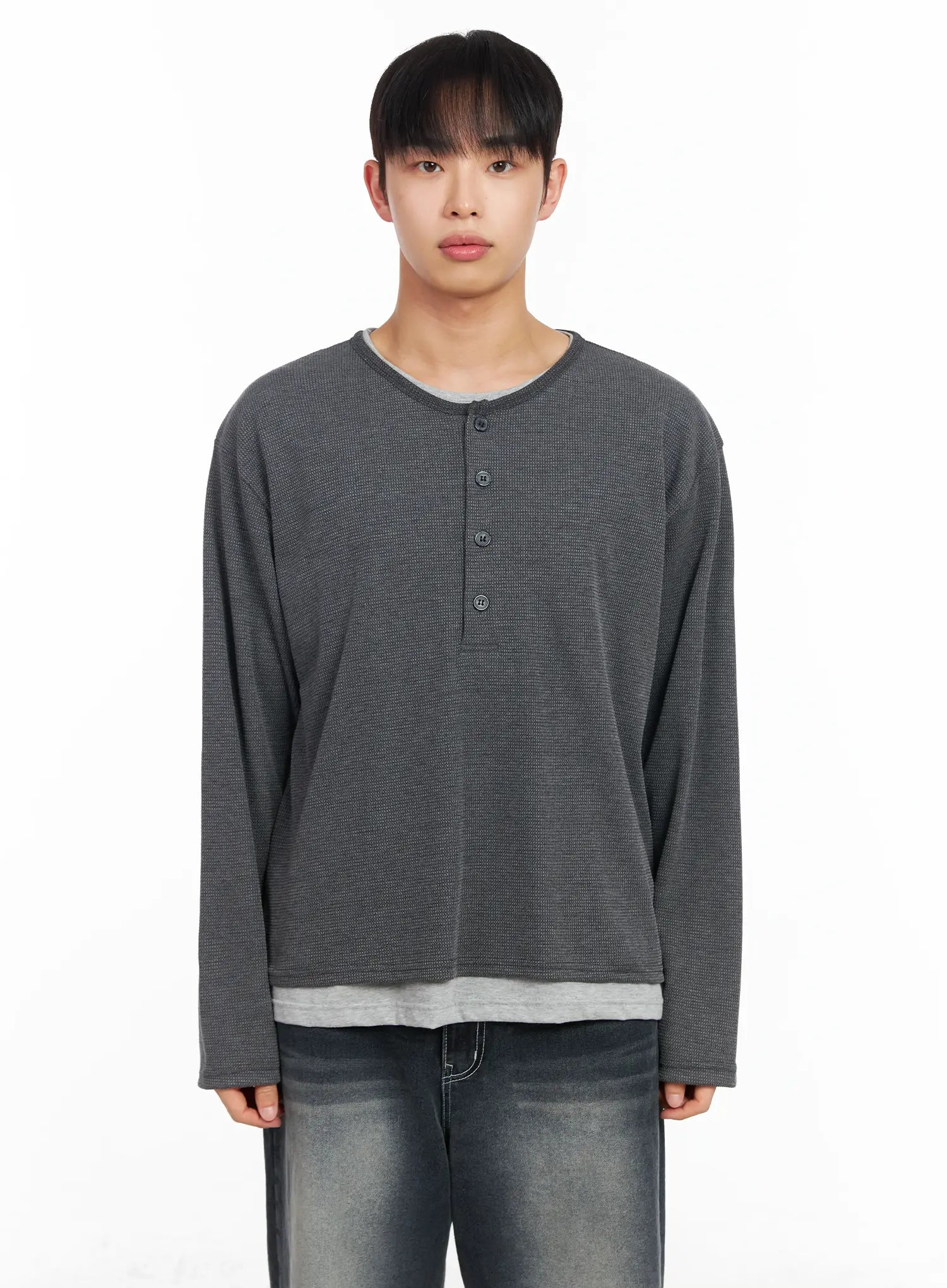 Men's Layered Waffle Henley Long Sleeve Tee IM511