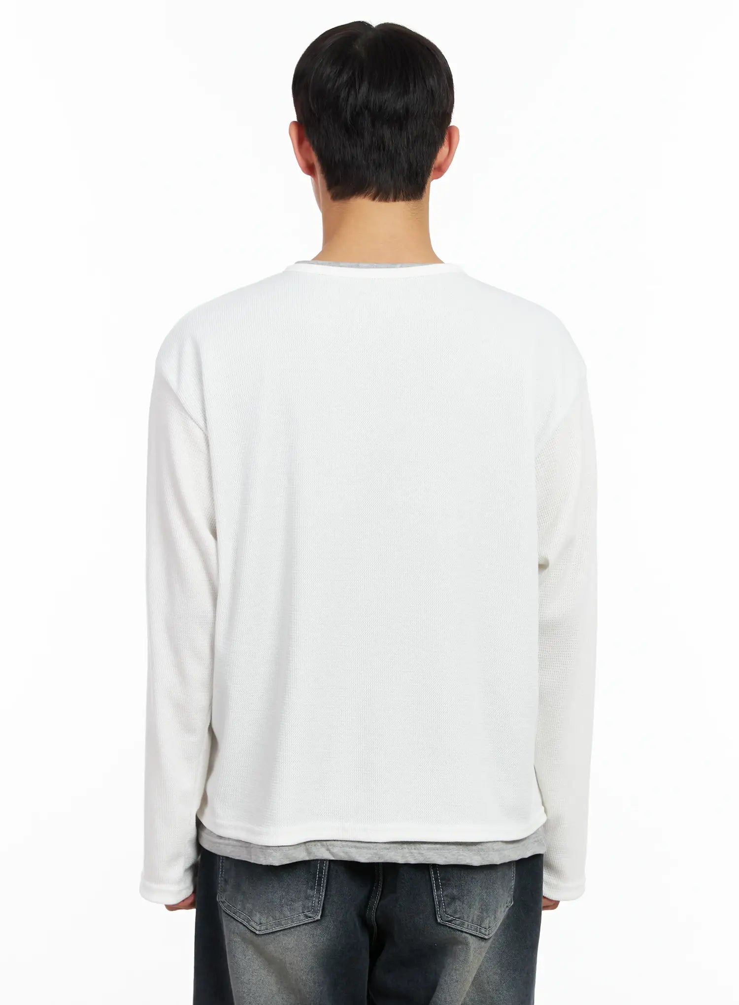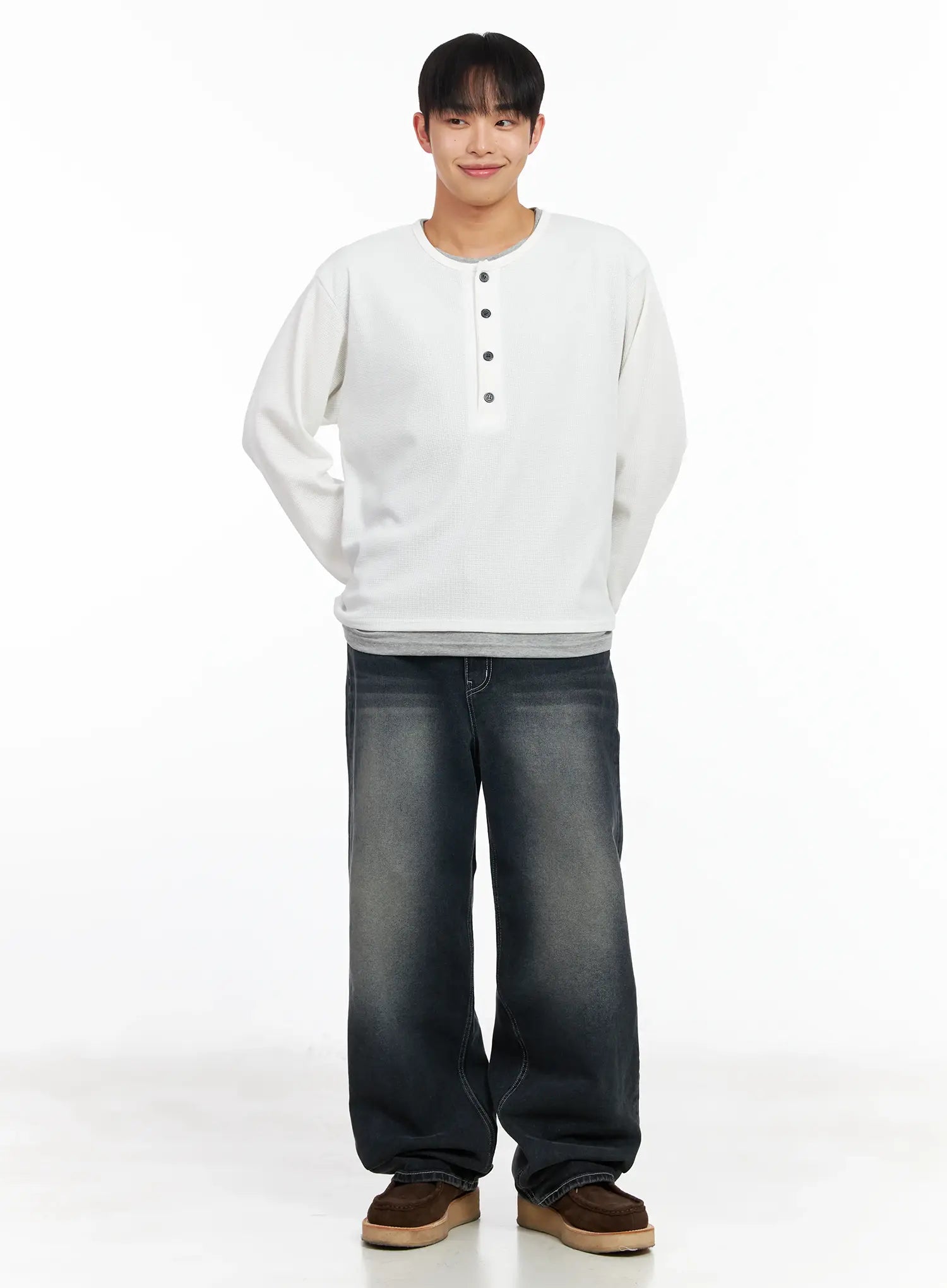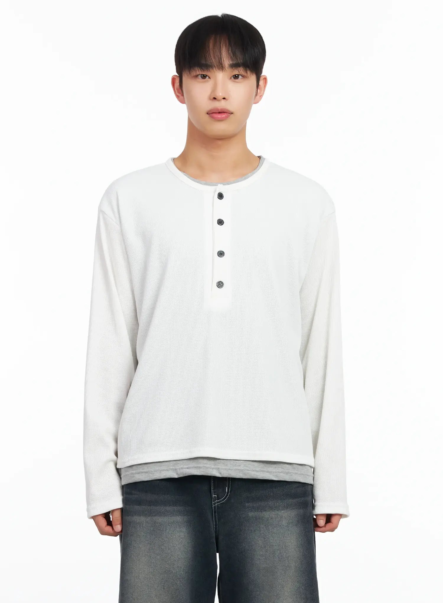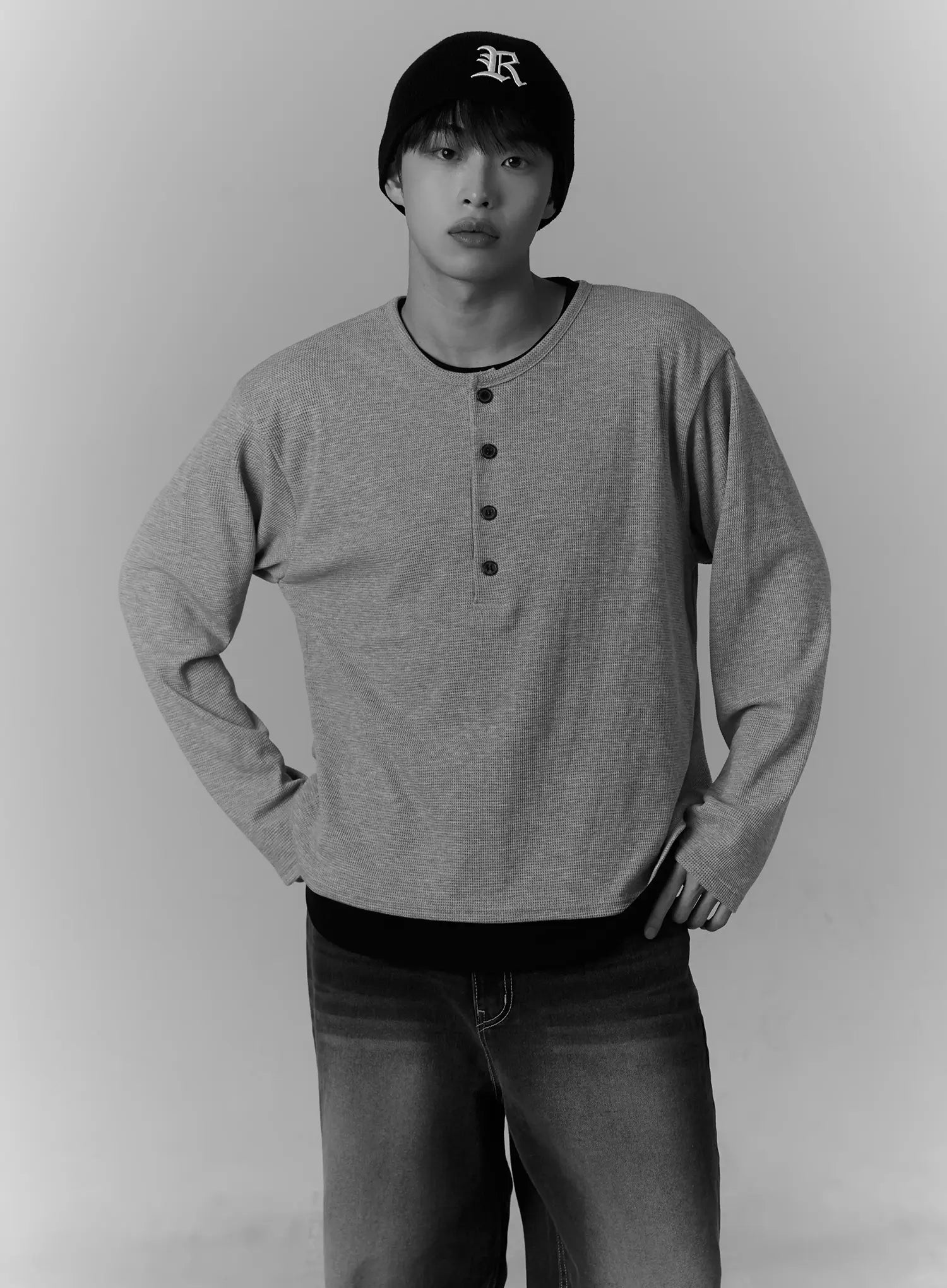 Men's Layered Waffle Henley Long Sleeve Tee IM511