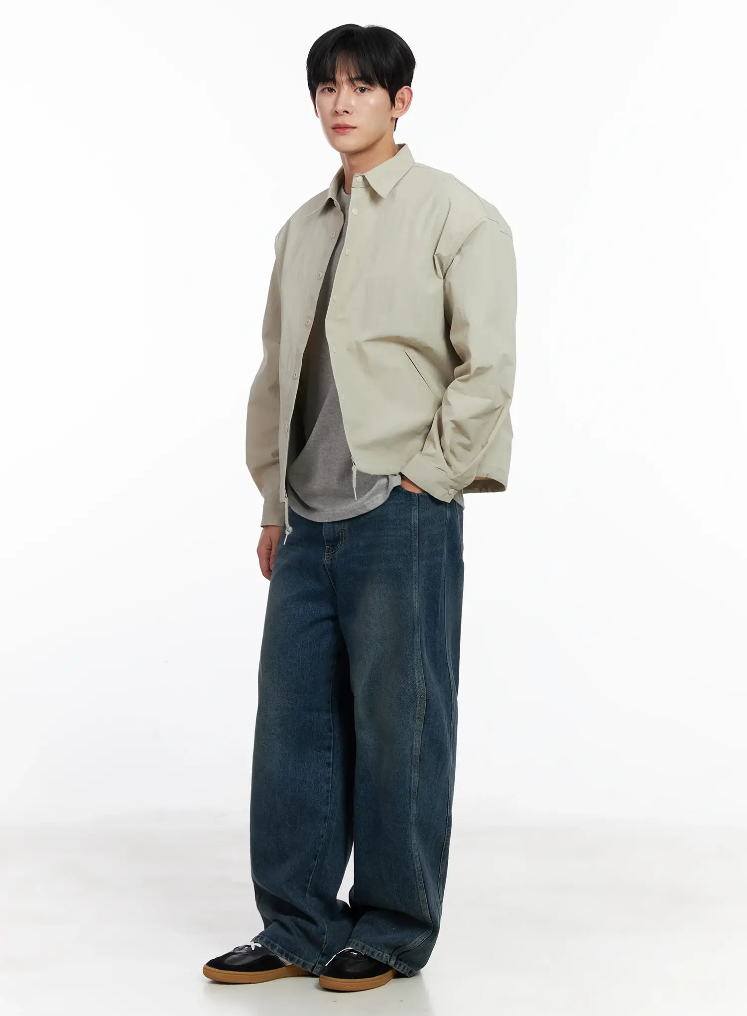 Model is wearing size M/L and the color Light beige.