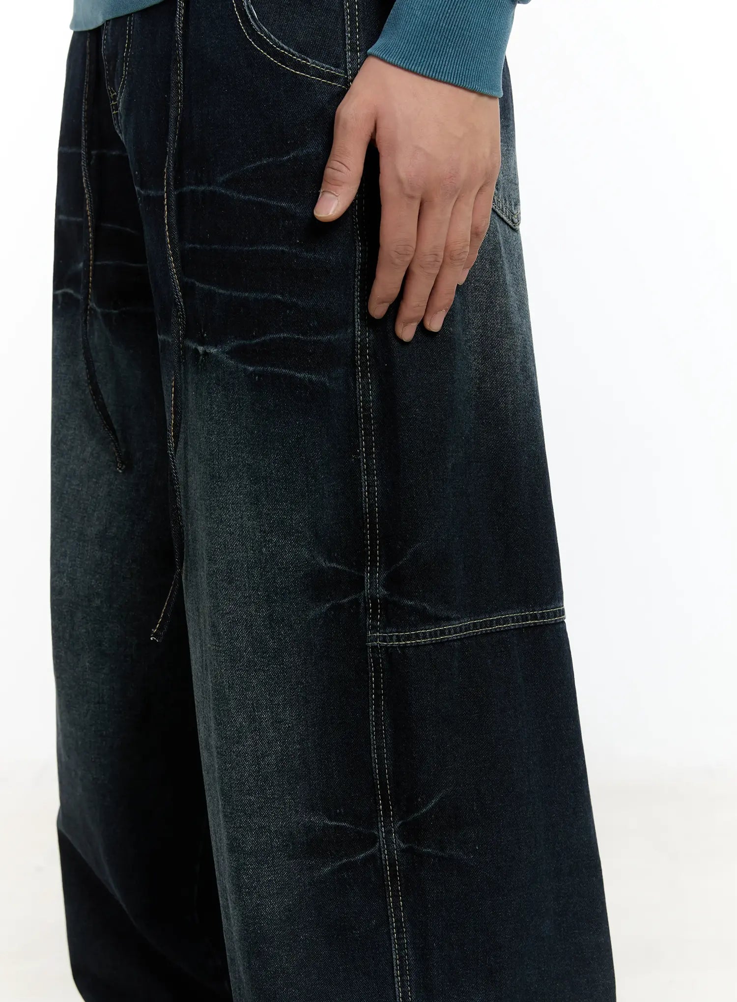 Men's Snap Baggy Jeans (Dark Blue) IM502
