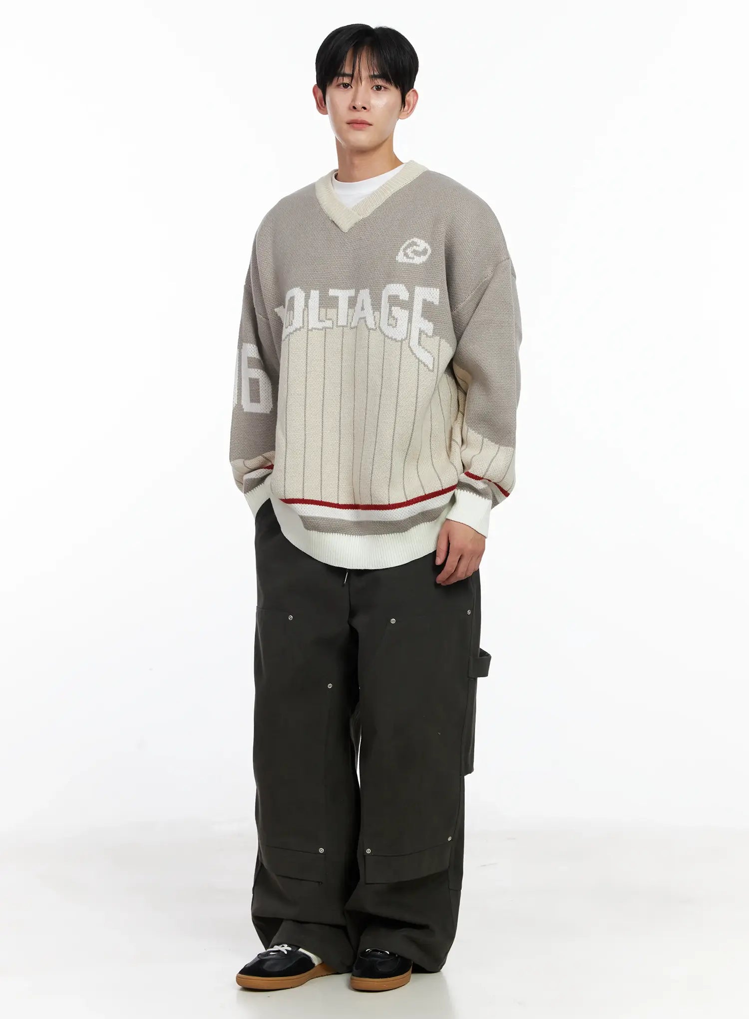 Men's Sporty V-Neck Knit Sweater IJ521