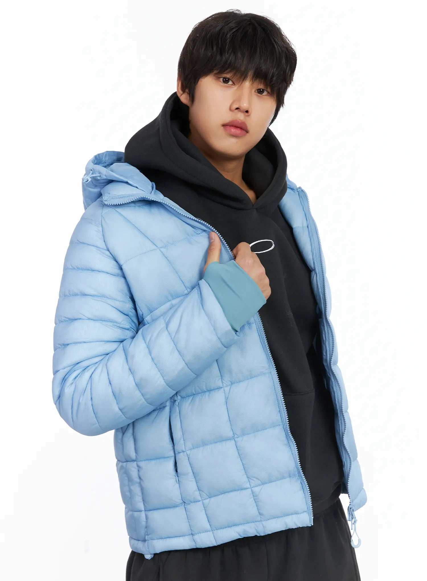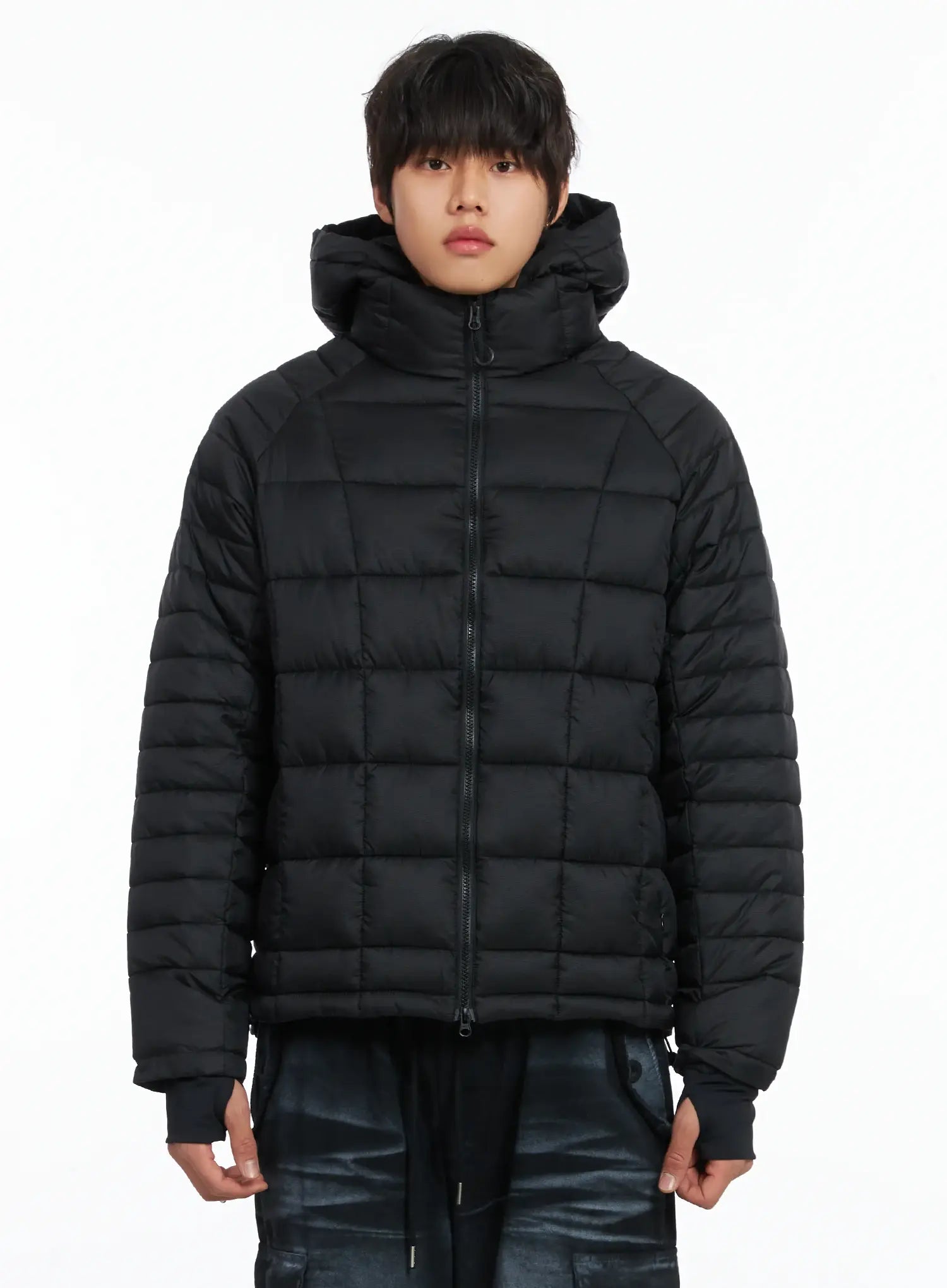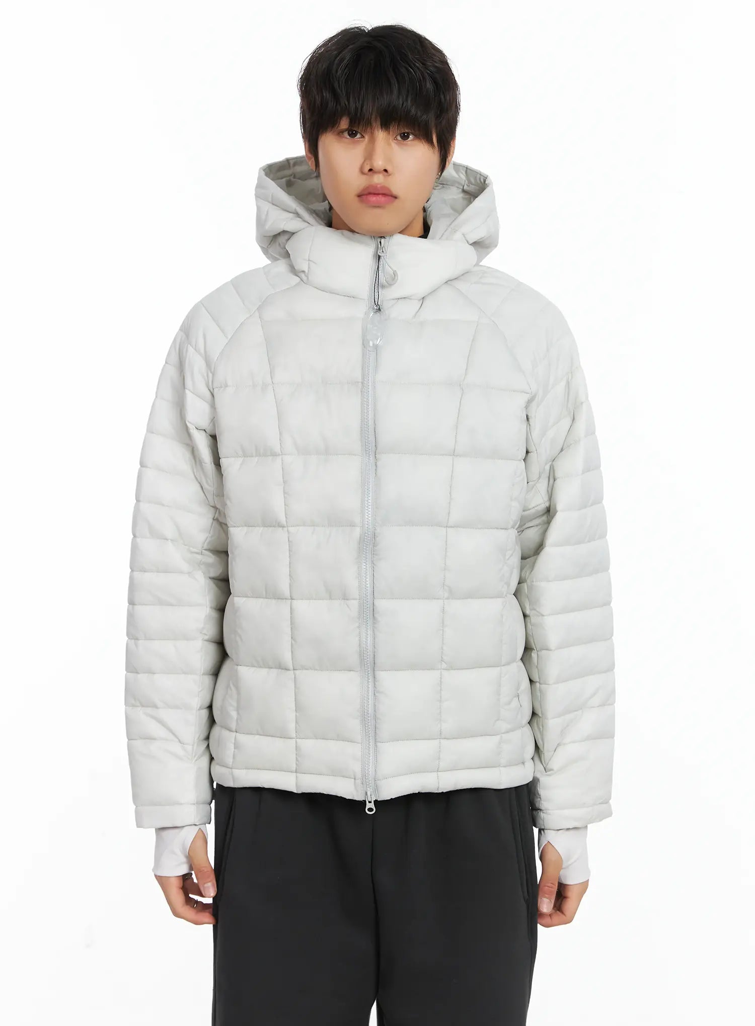Men's Square Quilted Hooded Puffer Jacket IJ512