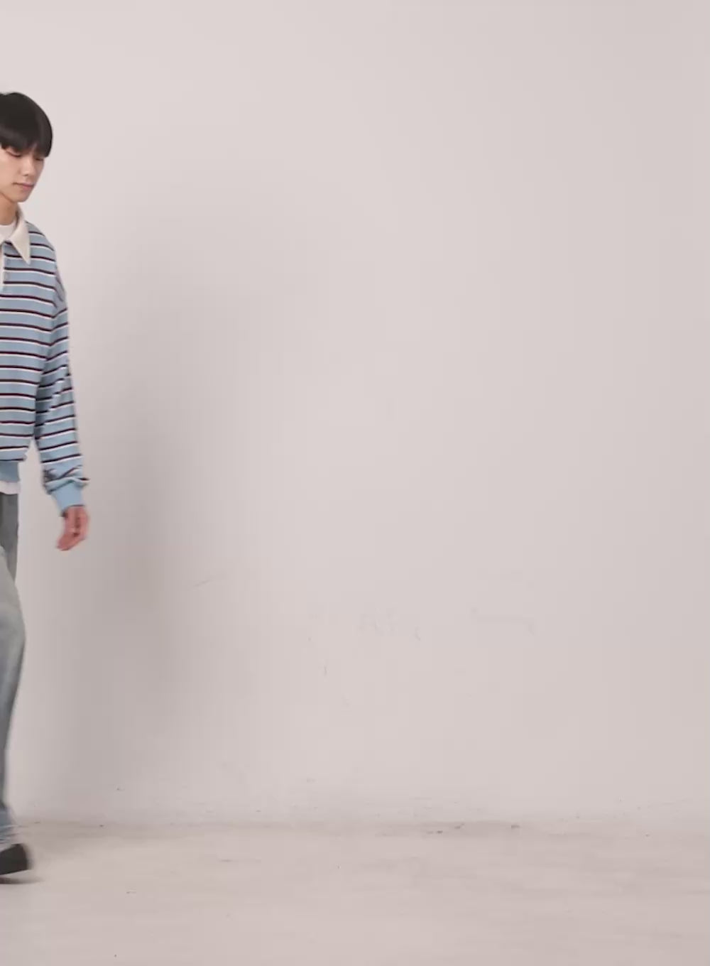Men's Stripe Collared Sweatshirt (Light Blue) IM518