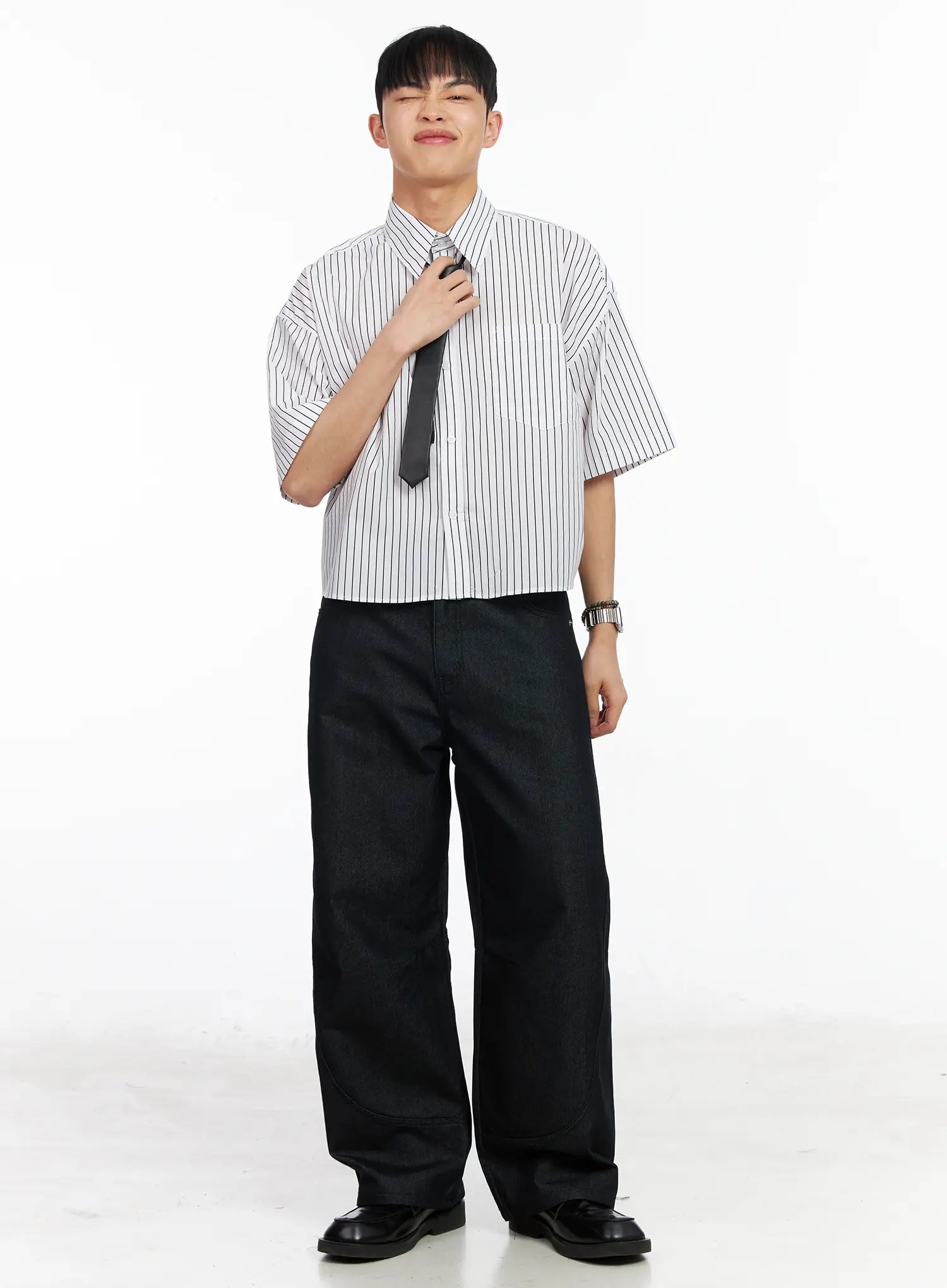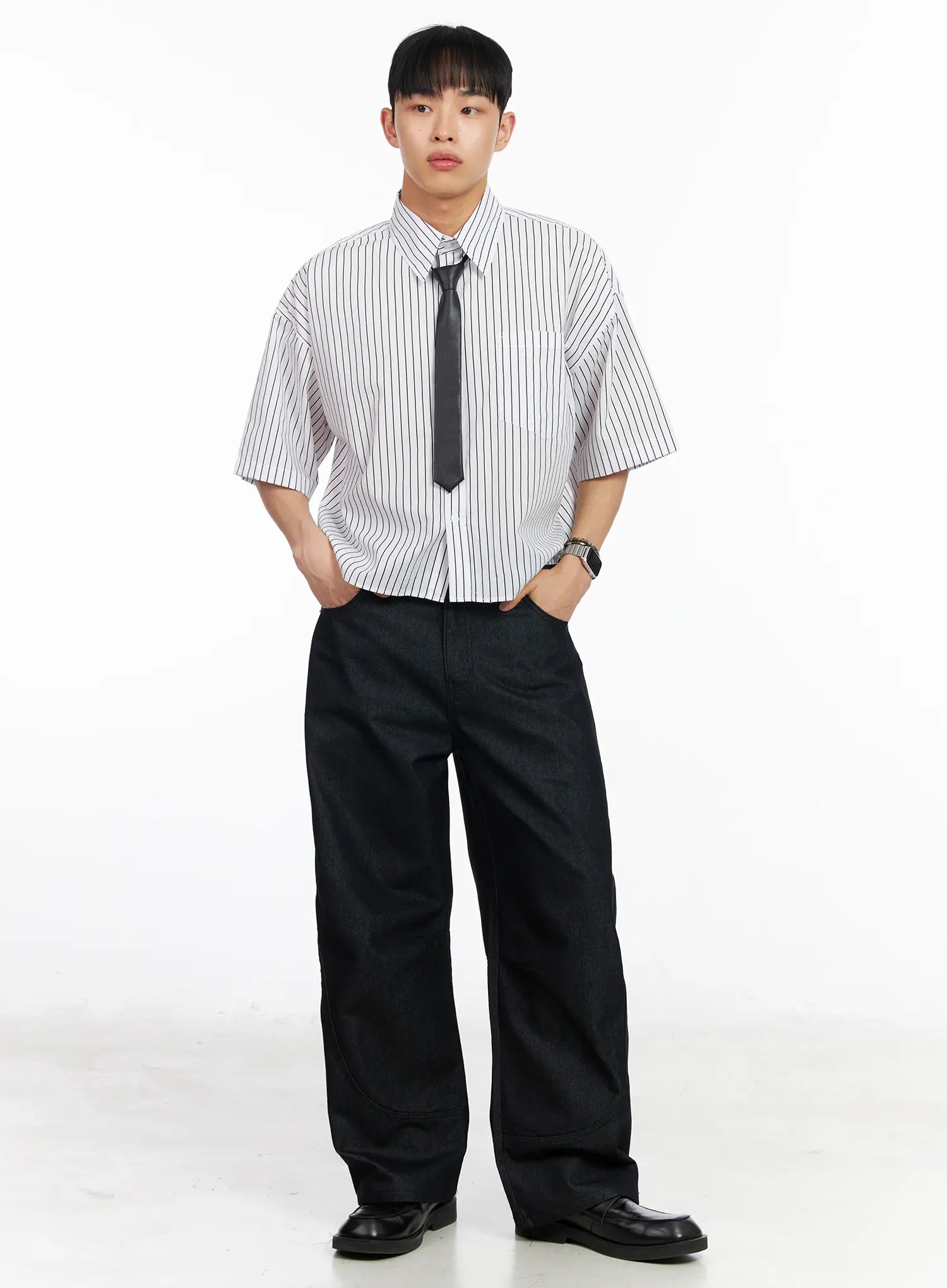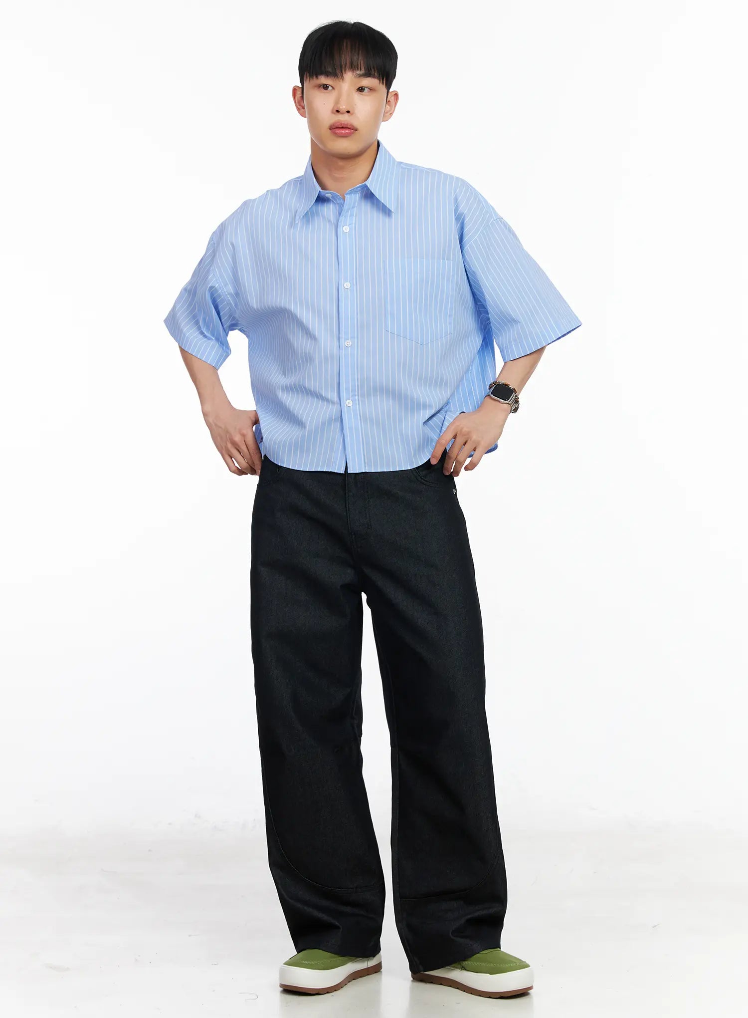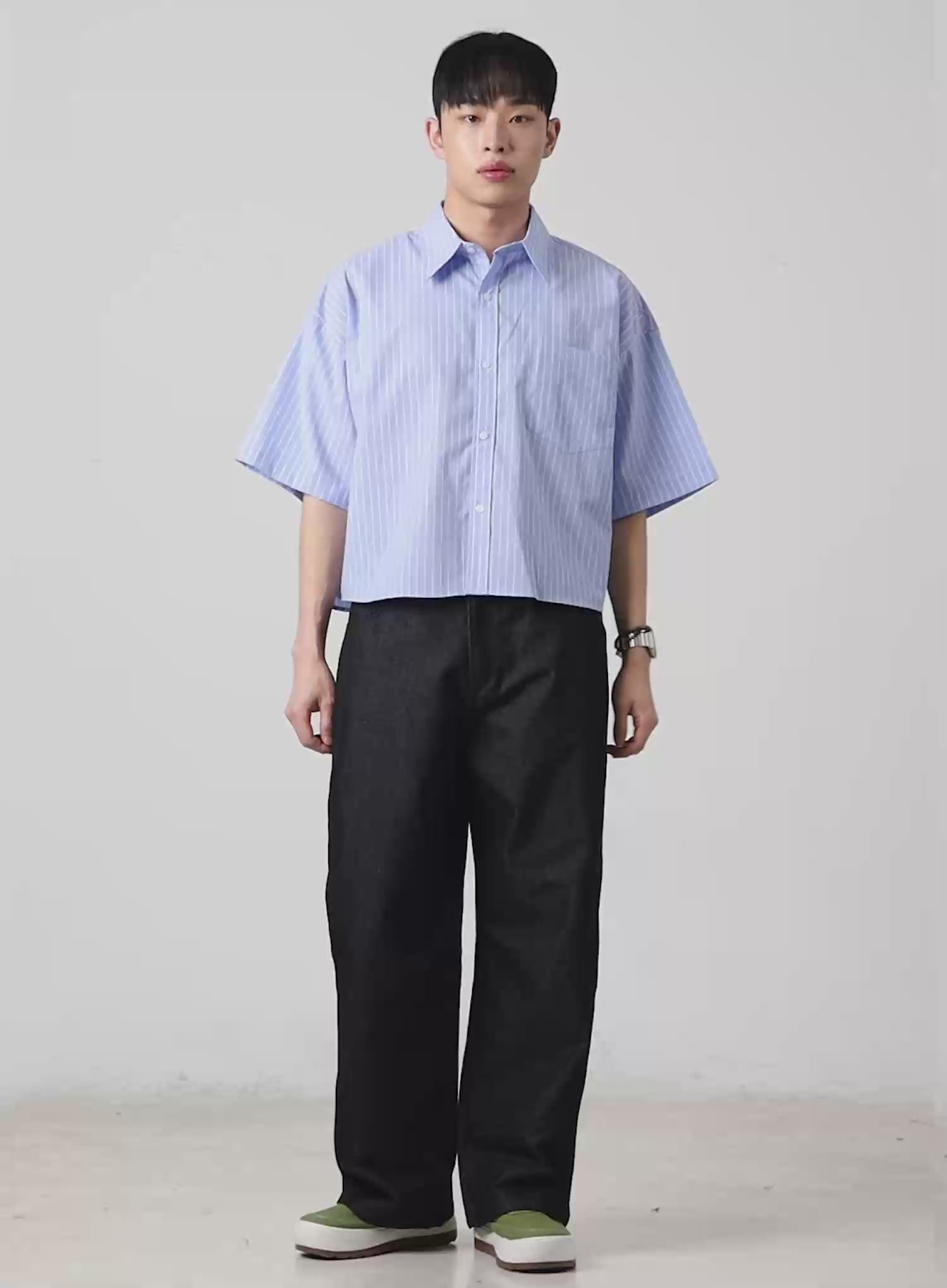 Men's Striped Cropped Shirt IA502
