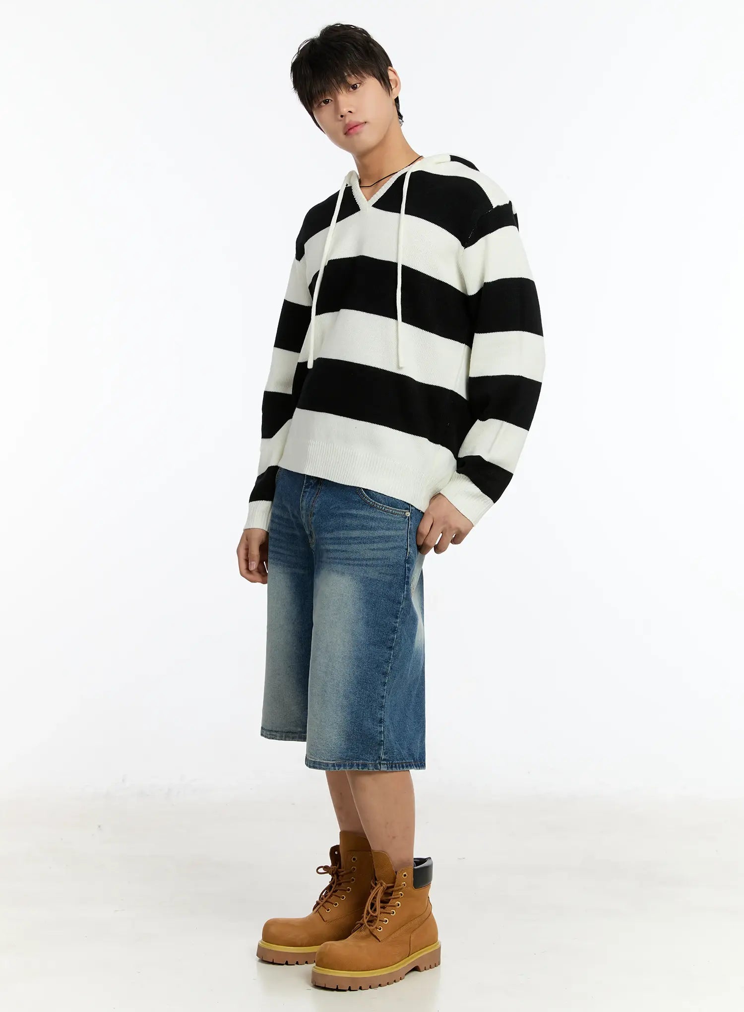 Men's Striped Knit Hoodie IM503
