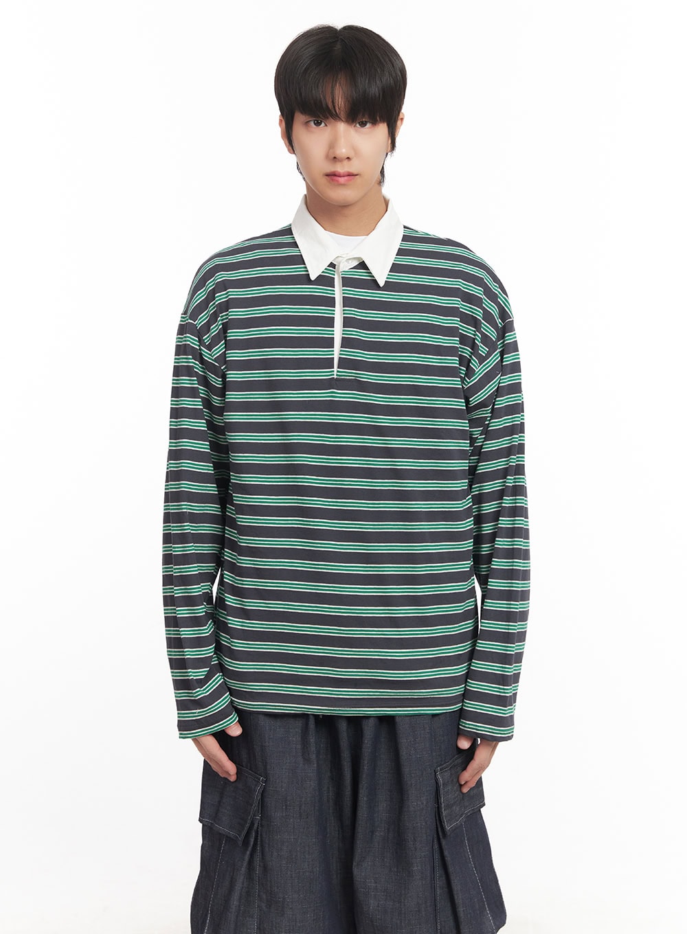 Men's Striped Long Sleeve Polo Shirt IA511