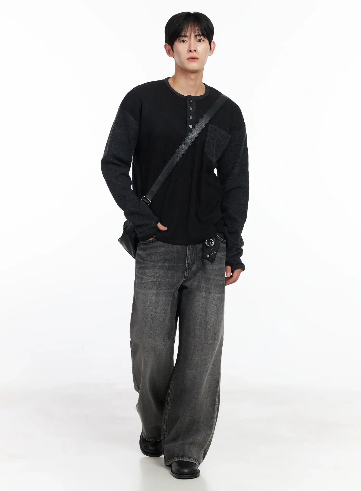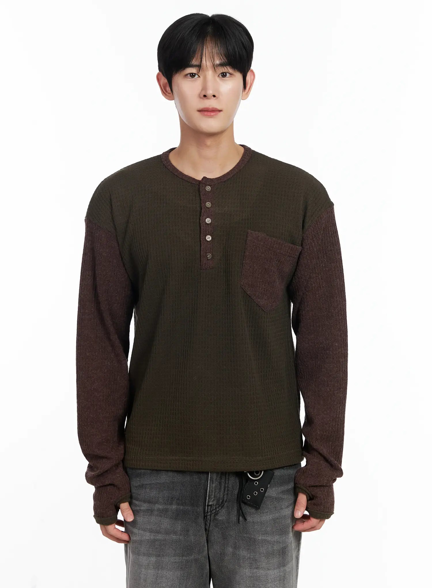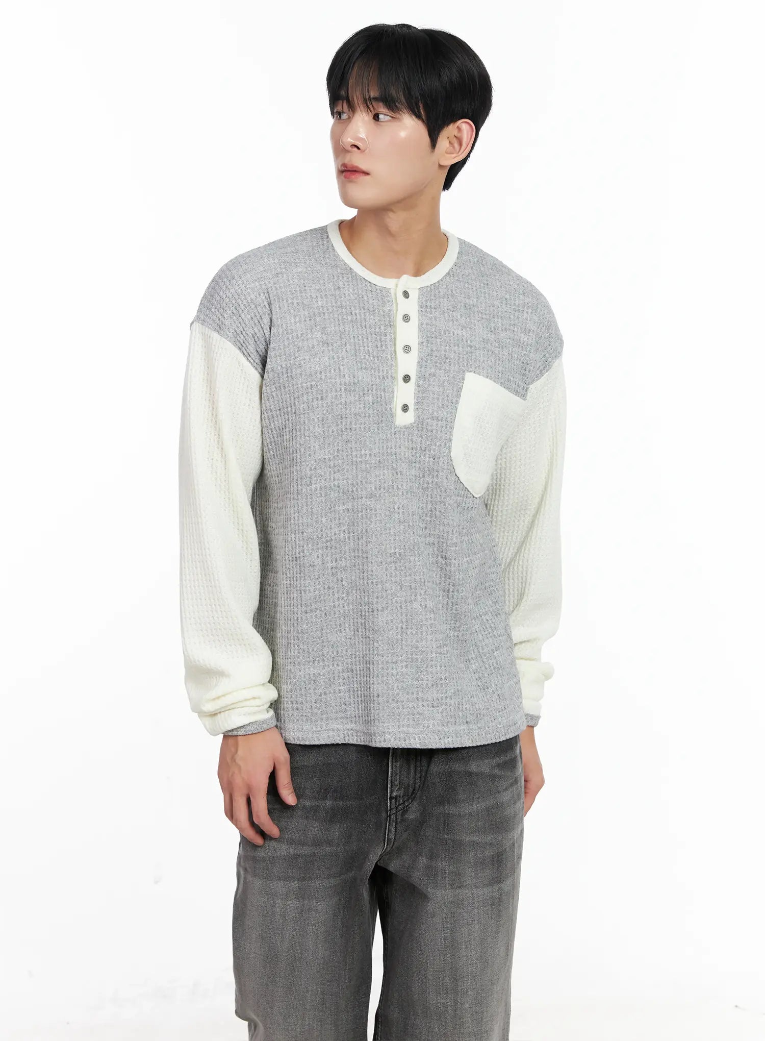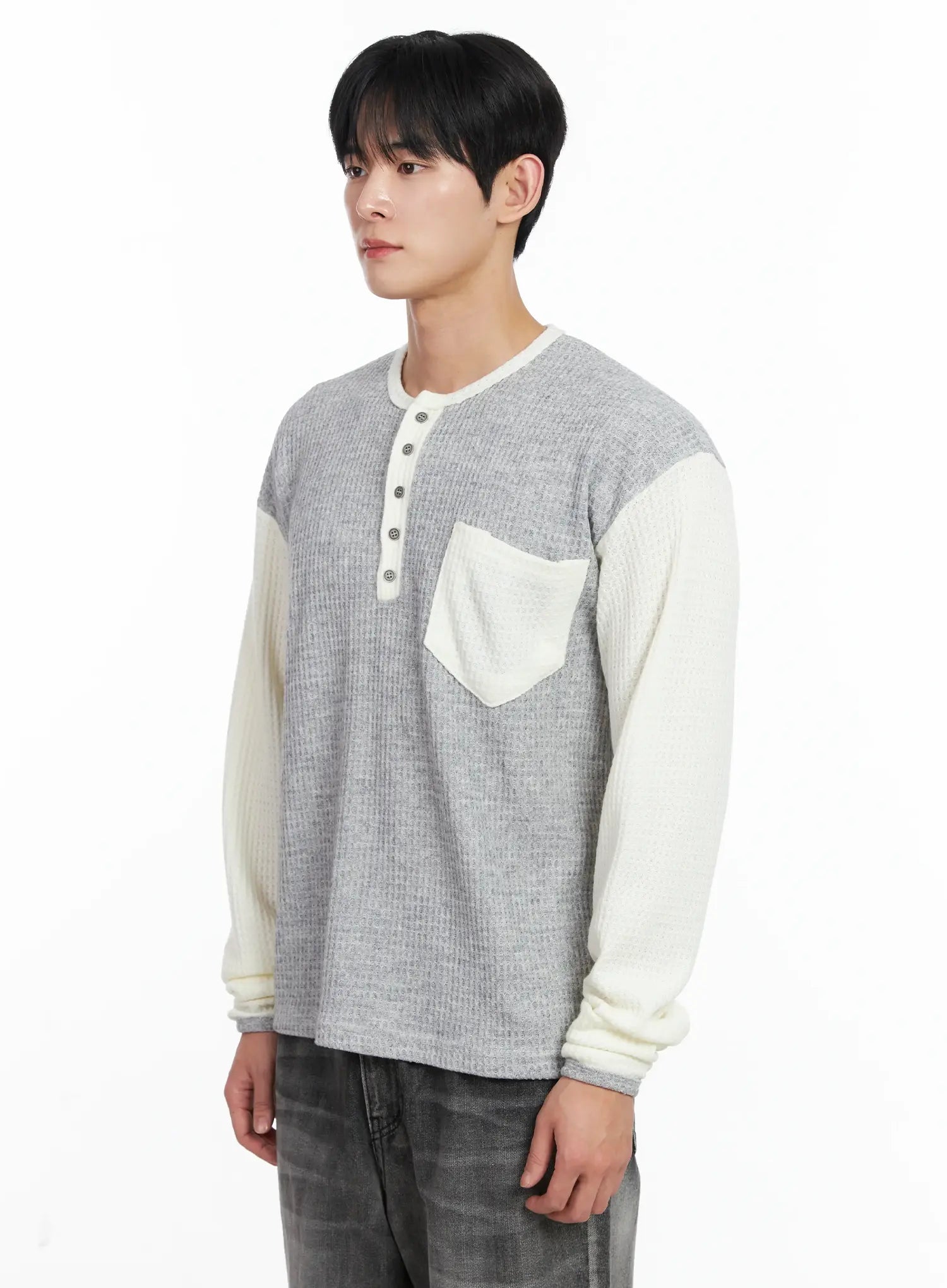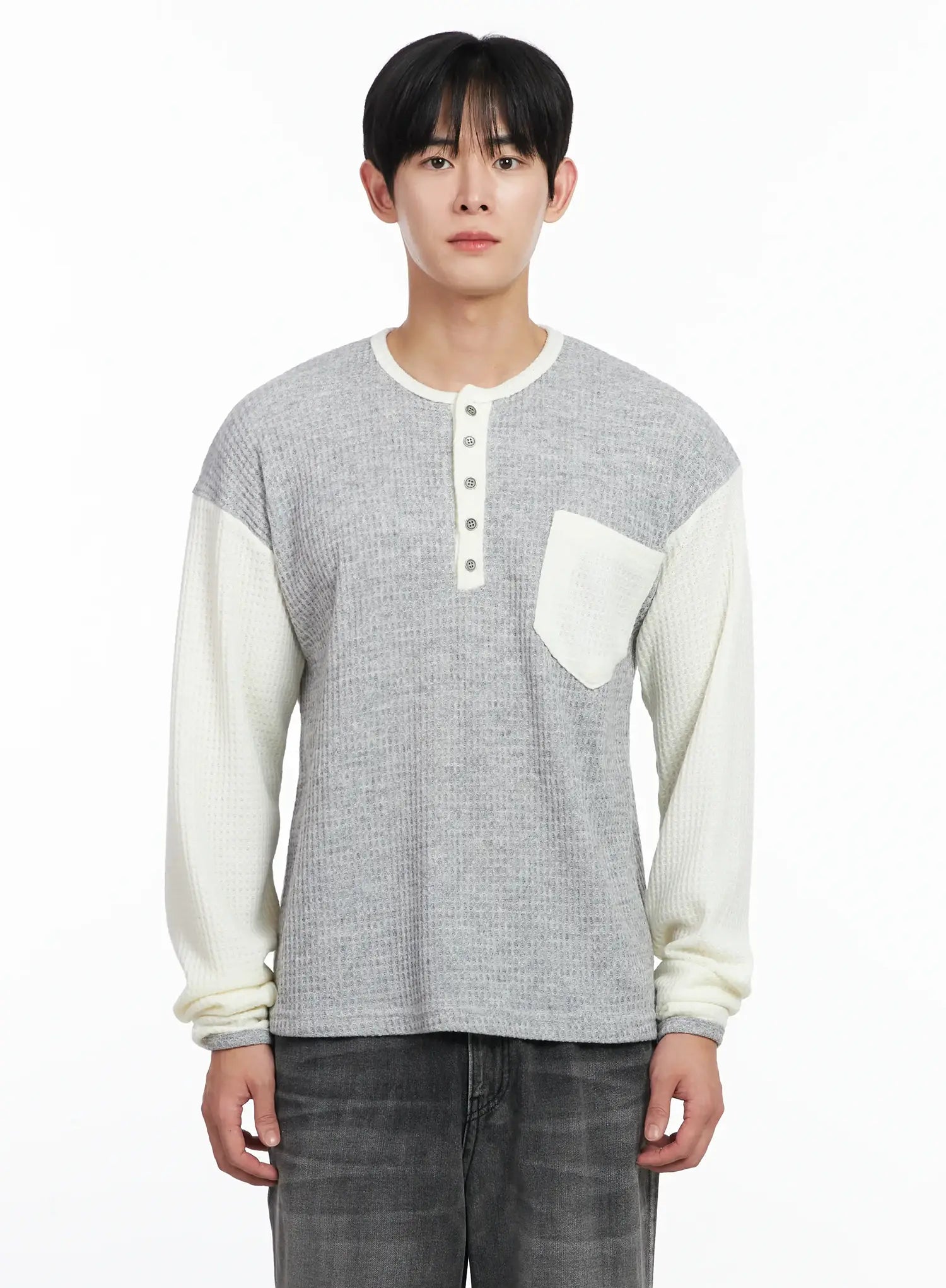 Men's Two-Toned Wool Knit Long-Sleeve Top IJ521