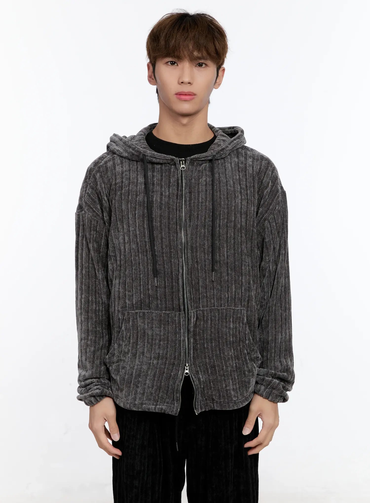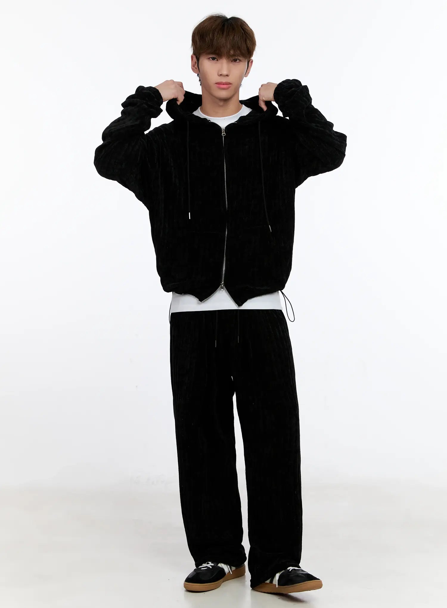 Men's Velvet Two-Way Hooded Zip-Up IN512