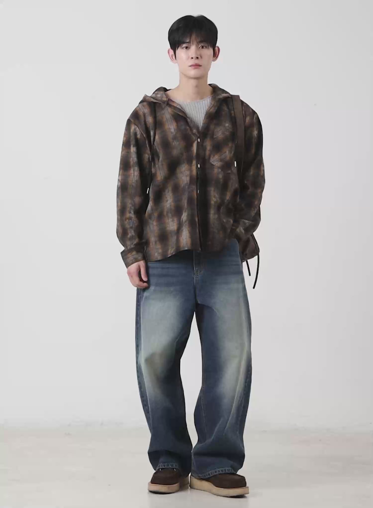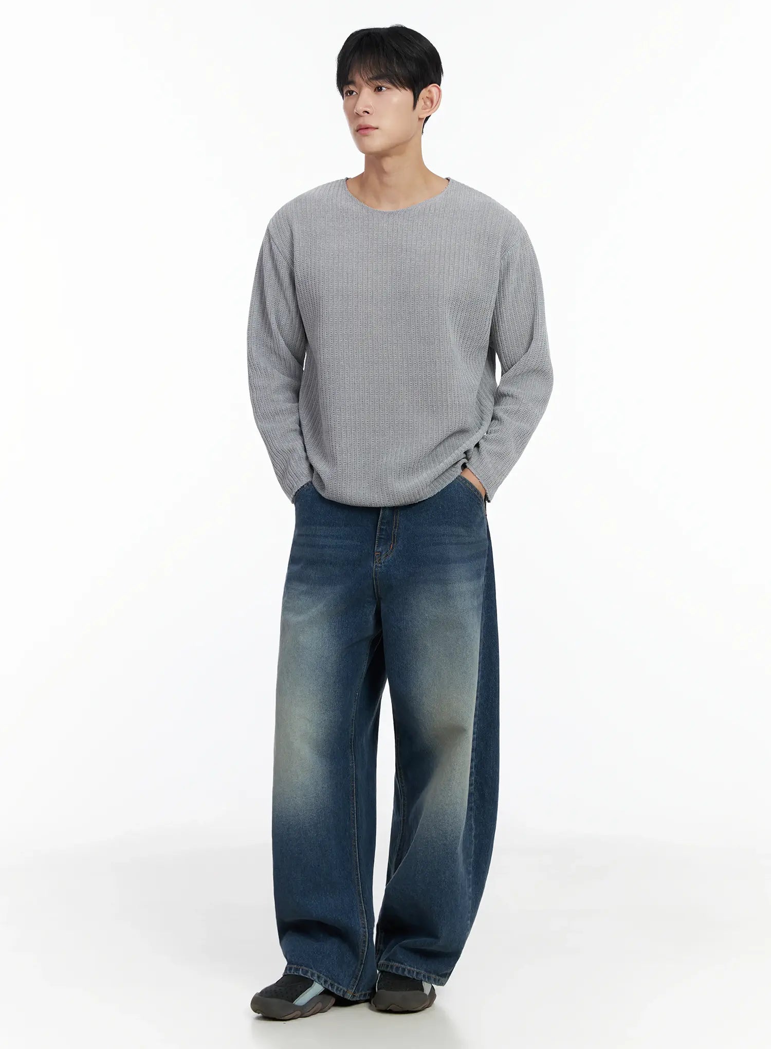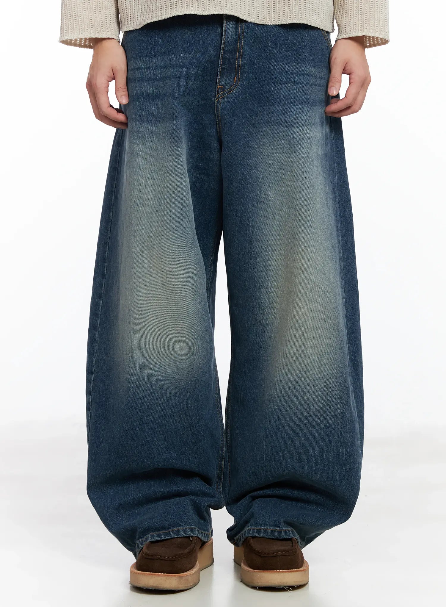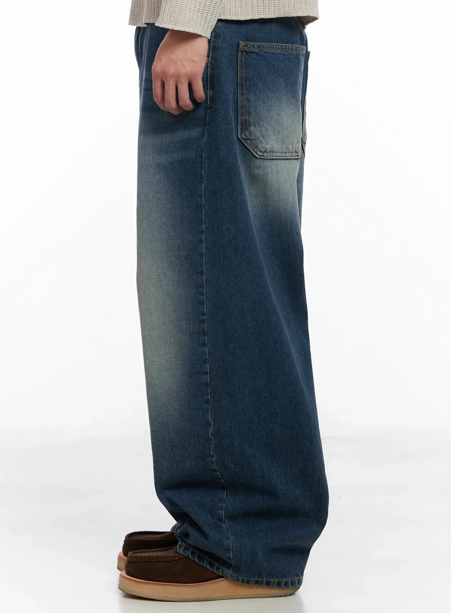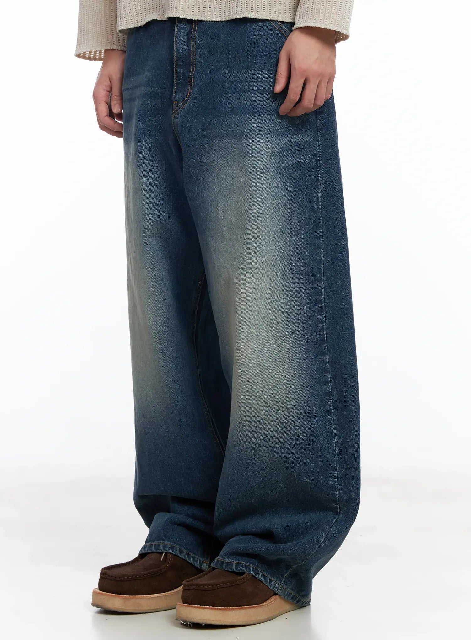 Men's Vintage Wash Wide-Leg Jeans IF516