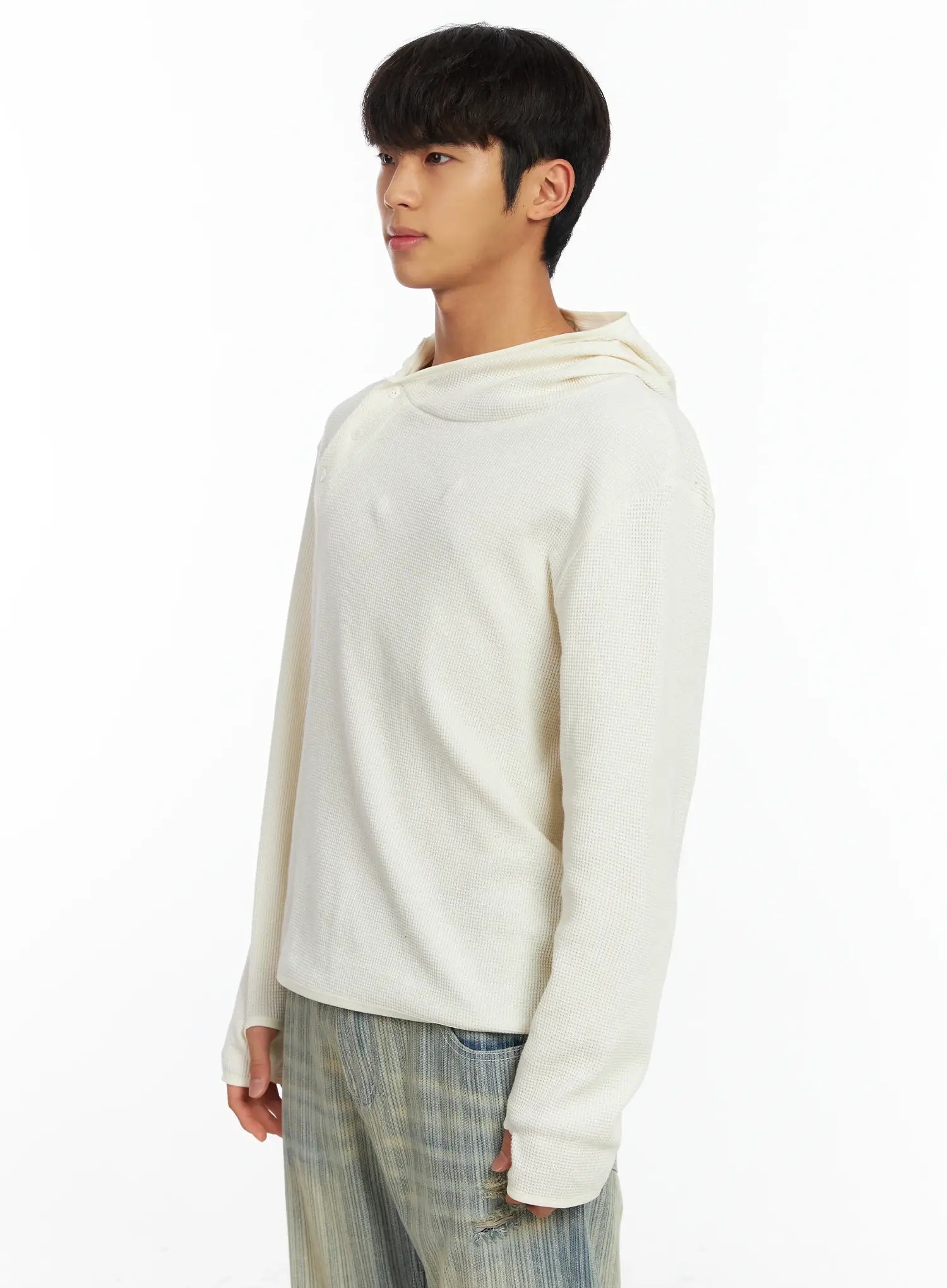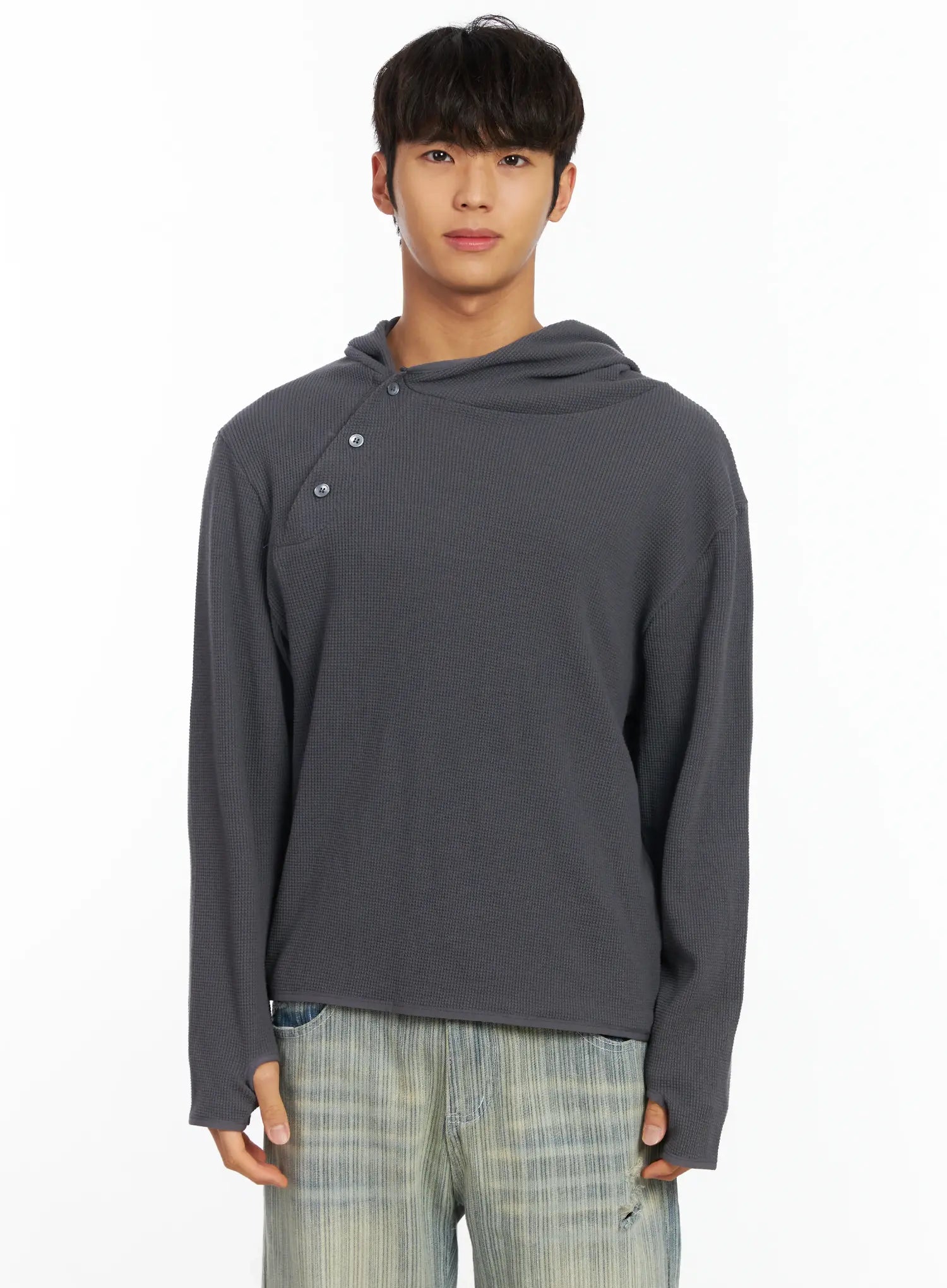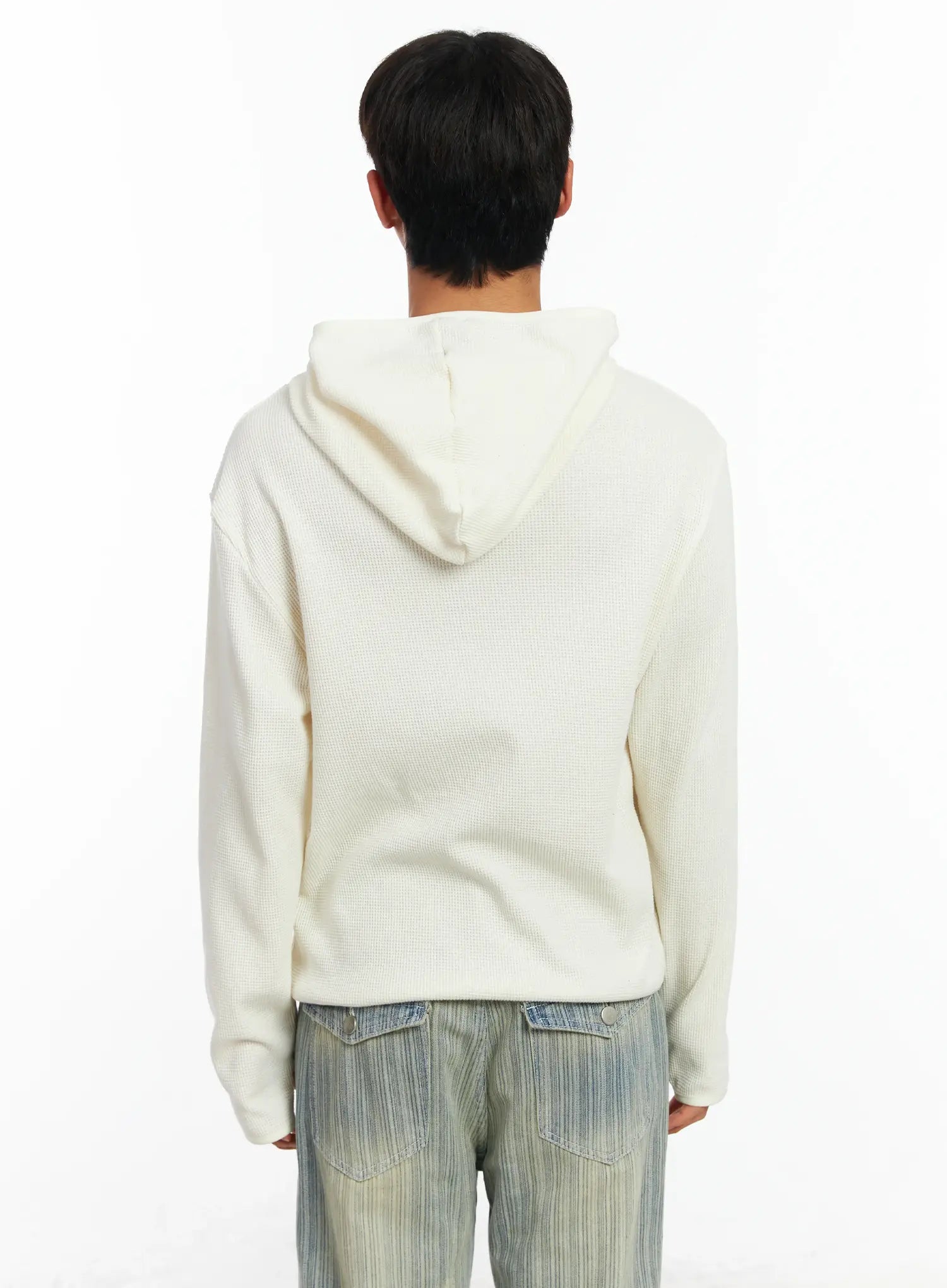 Men's Waffle Knit Henley Neck Hoodie IF504