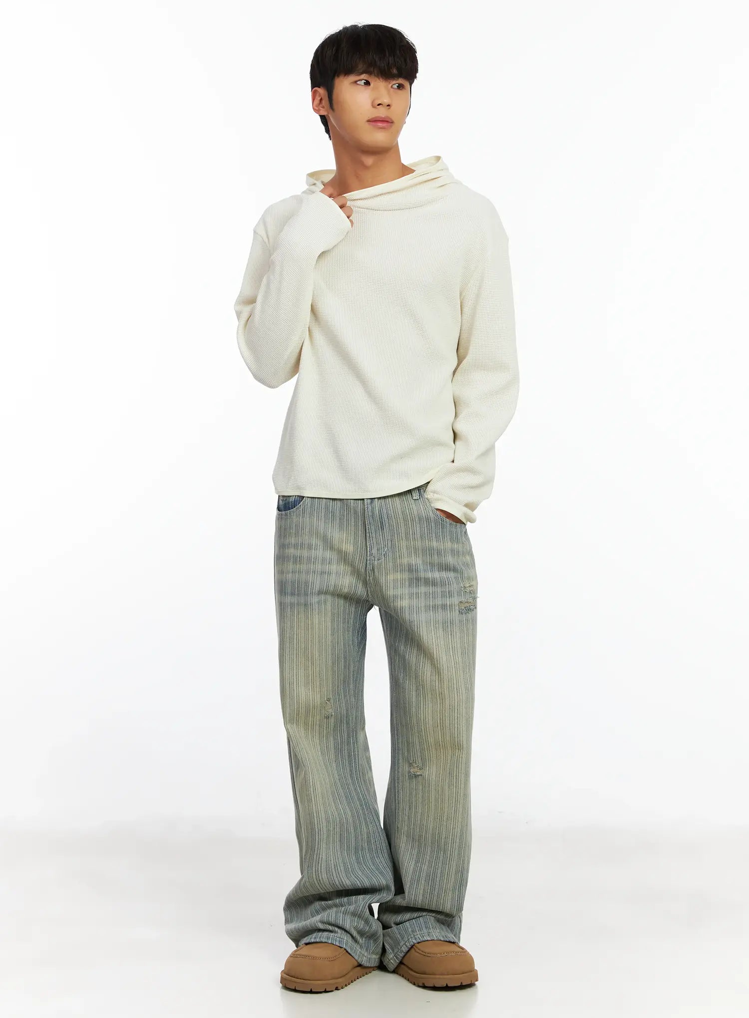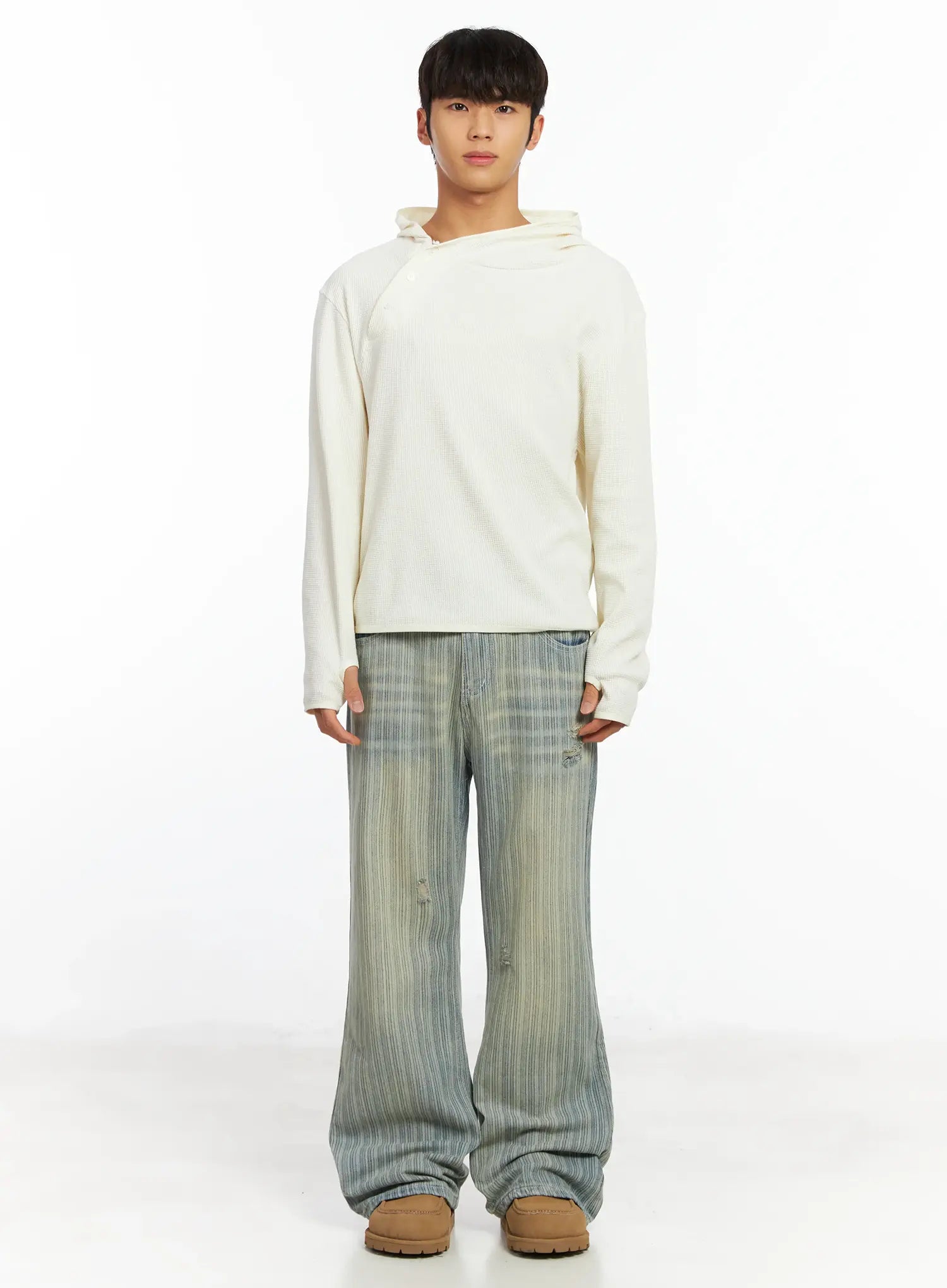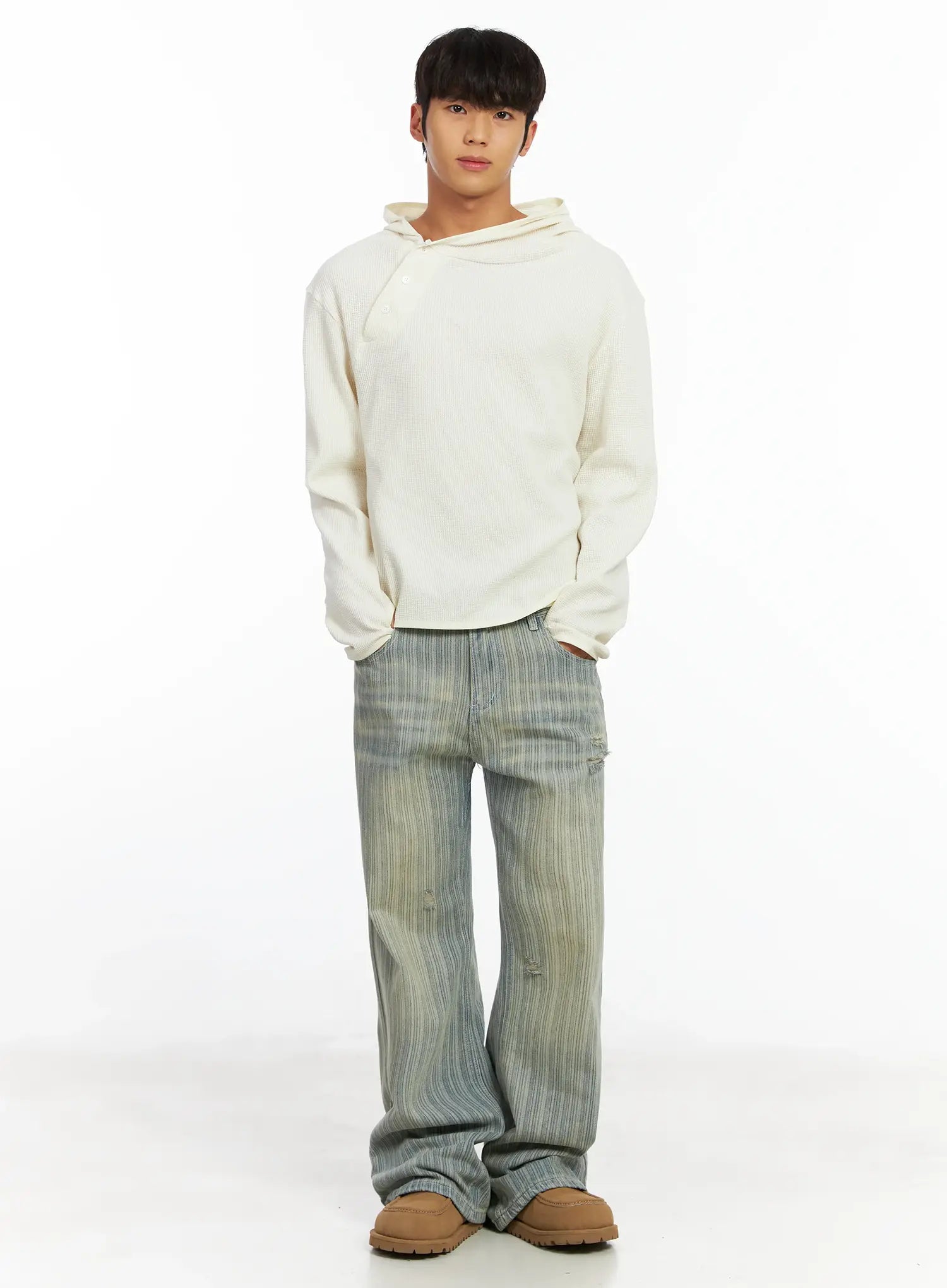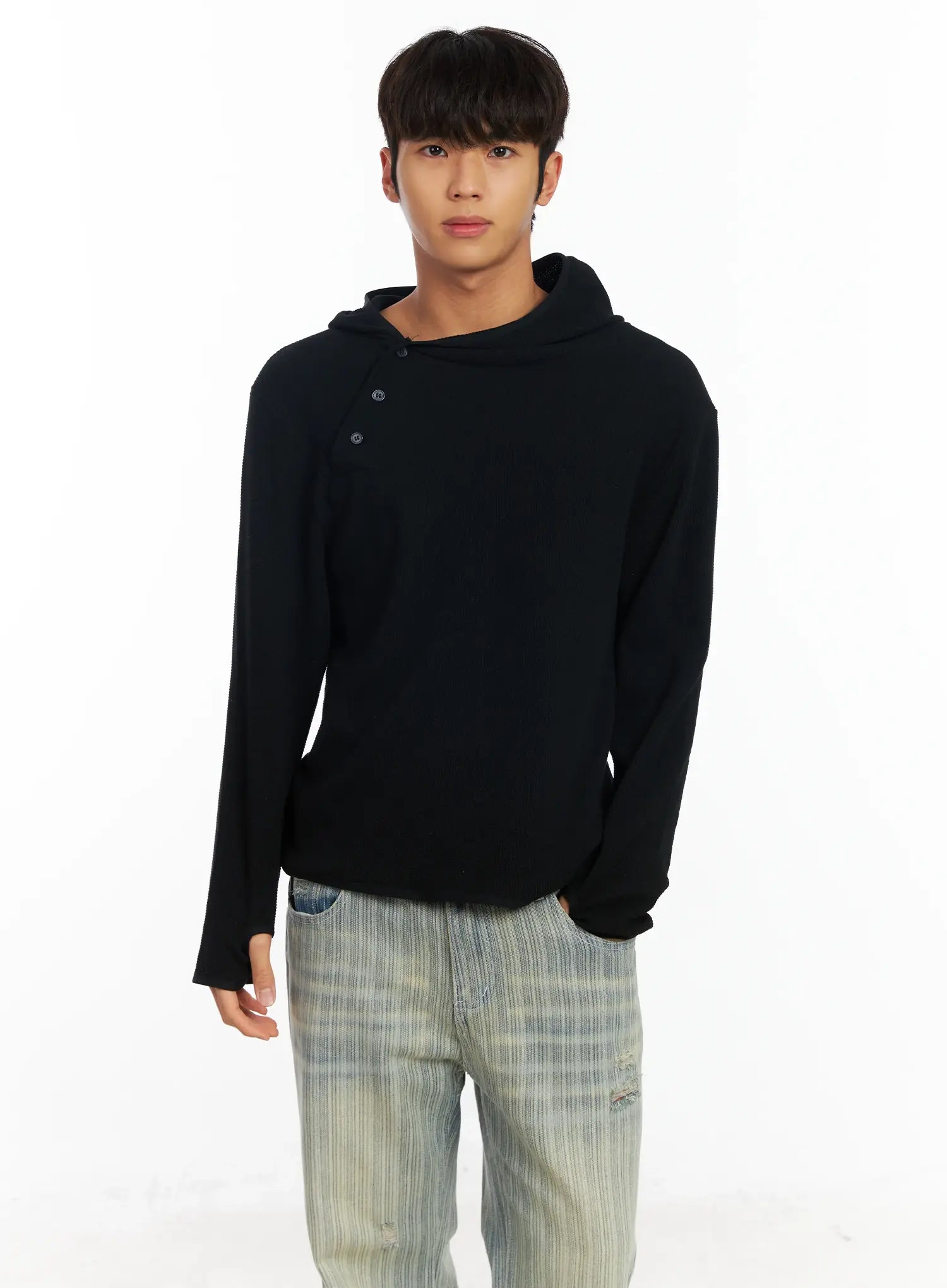 Men's Waffle Knit Henley Neck Hoodie IF504