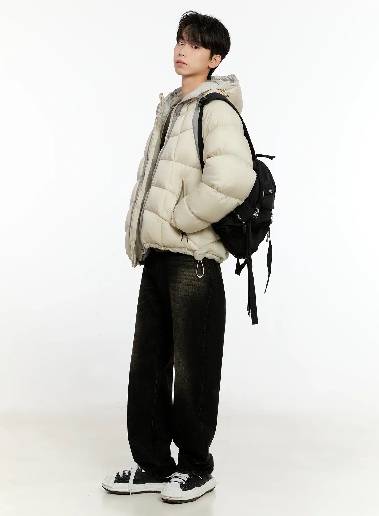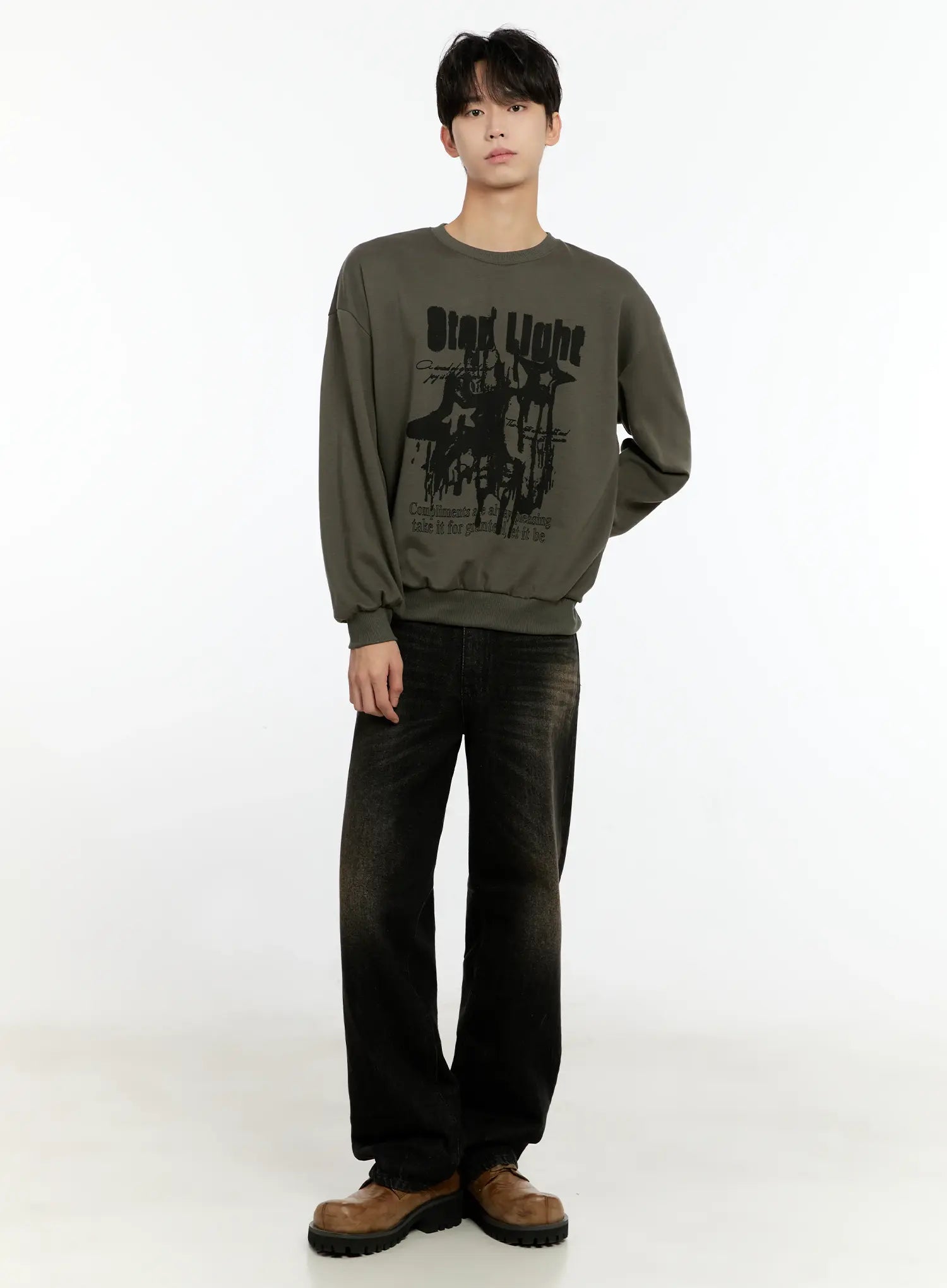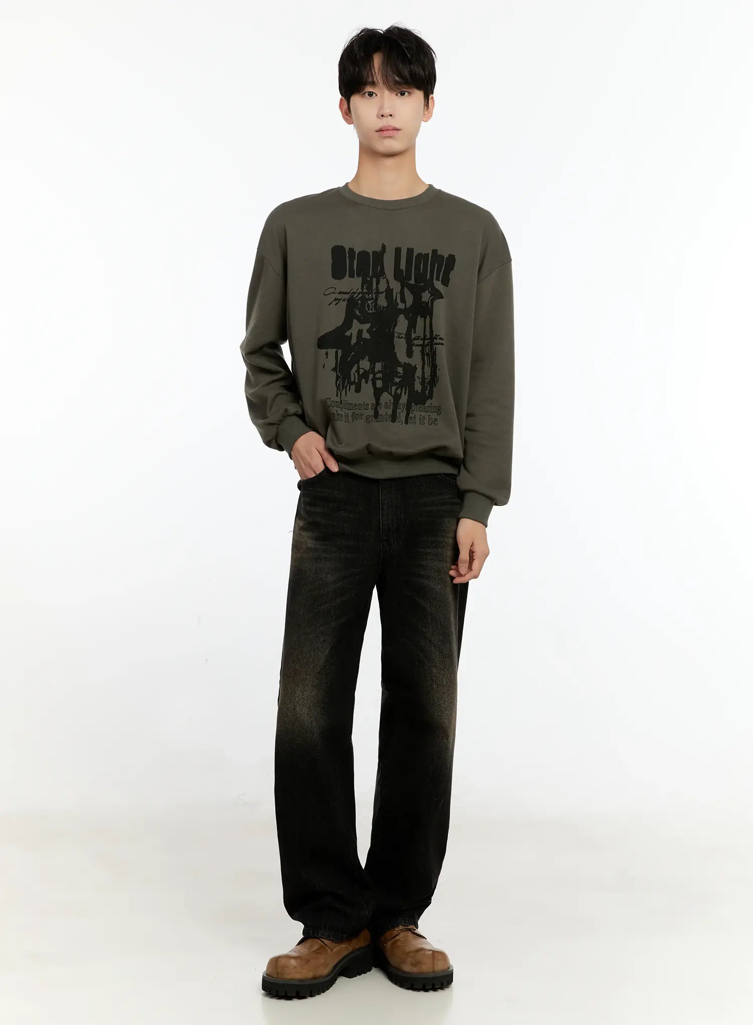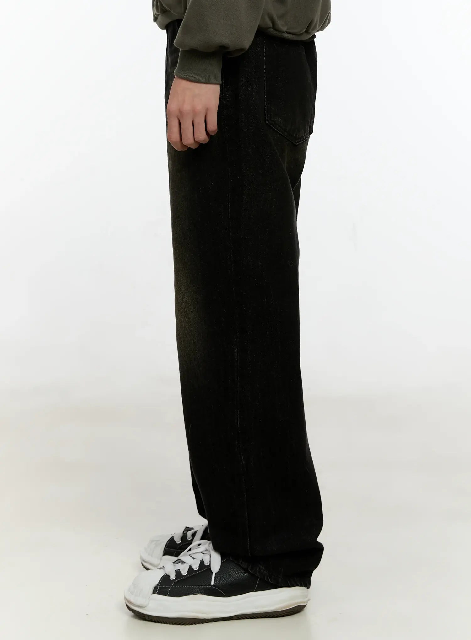 Men's Wide-Leg Washed Black Denim Jeans IO531