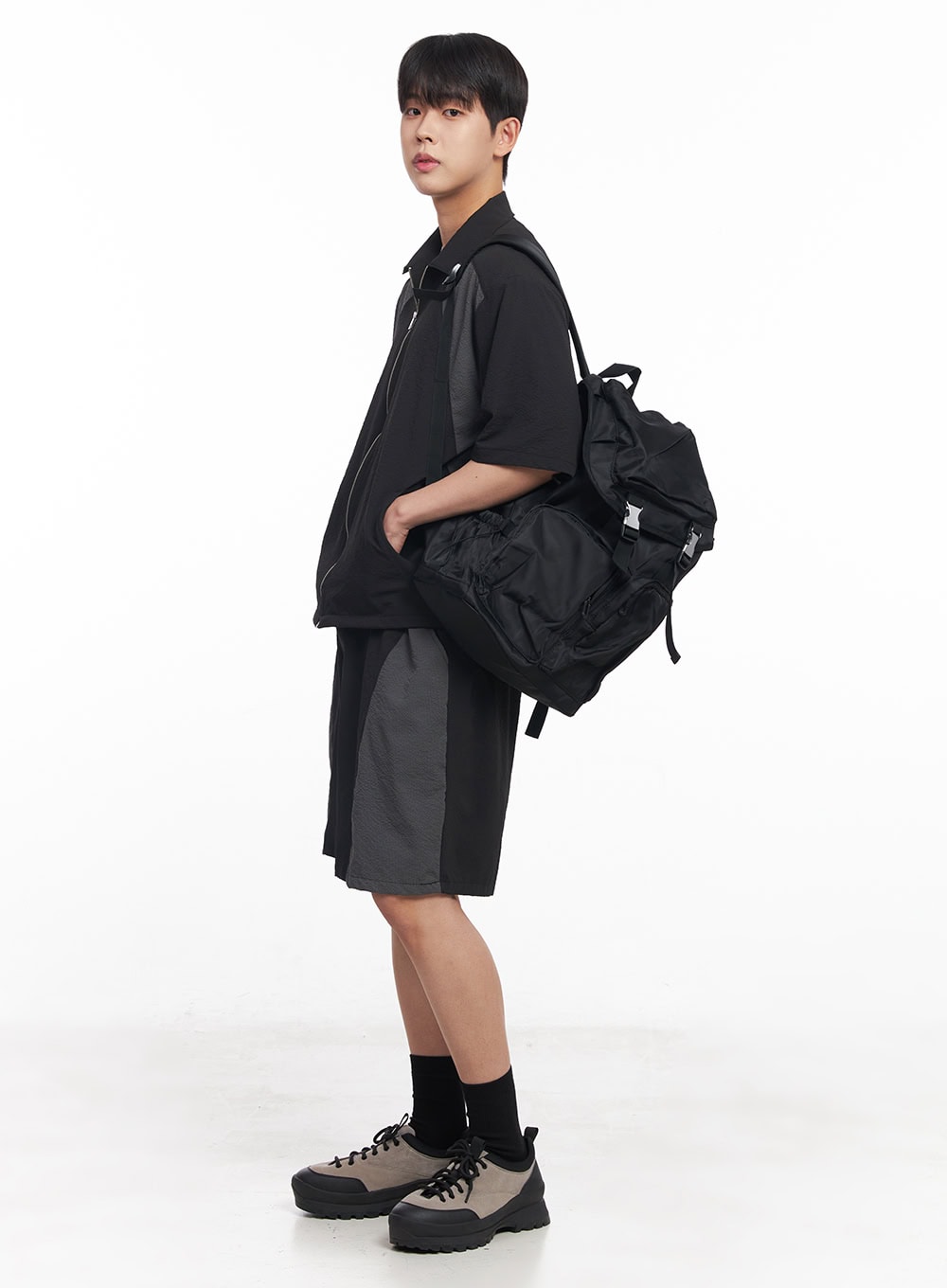 Men's Zip-Up Collared Half-Sleeve Shirt IY520