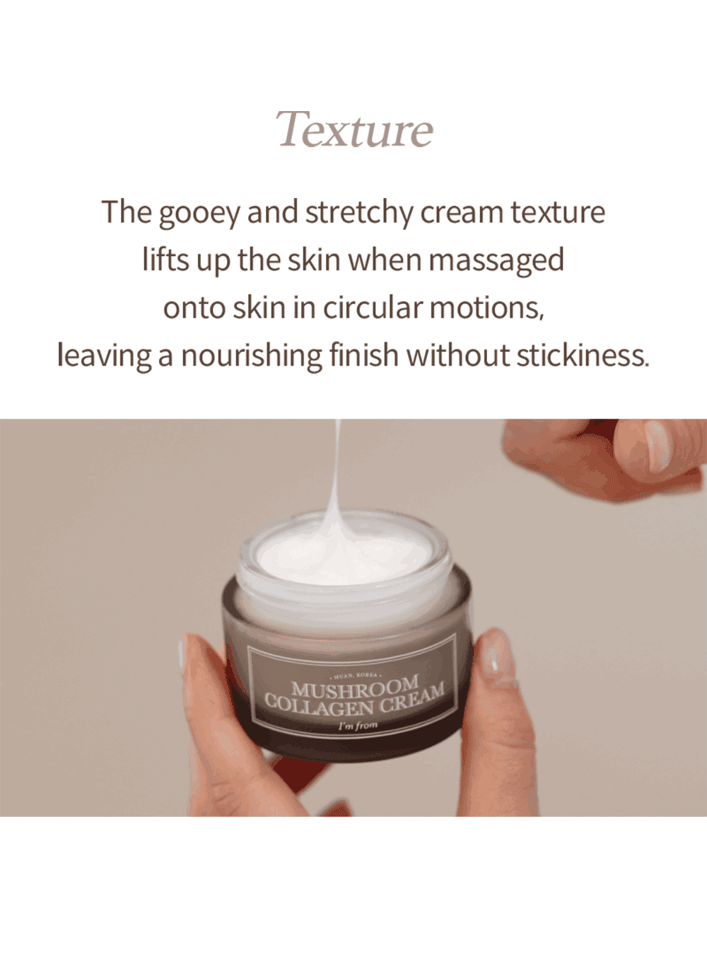 Apply an appropriate amount on skin as the last step of skincare. Pair with the I'm from Mushroom Collagen Ampoule for optimal effects.