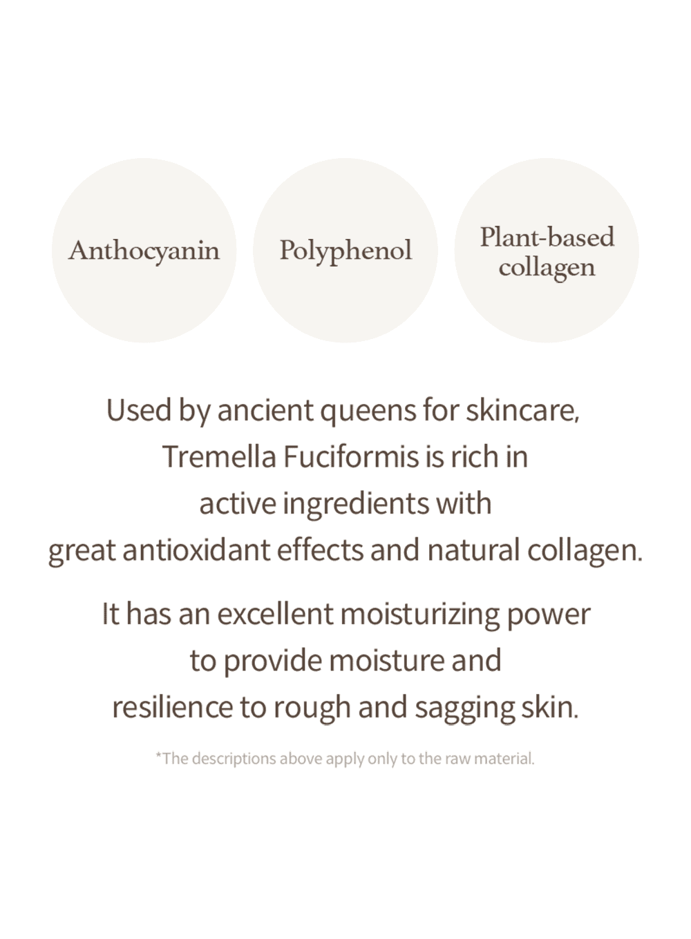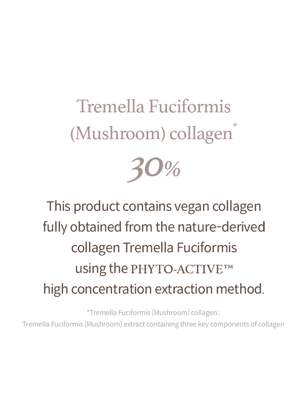 - Formulated with 30% Tremella Fuciformis (Mushroom) Extract, a rich source of vegan collagen that helps make the skin plump, youthful, and firm.