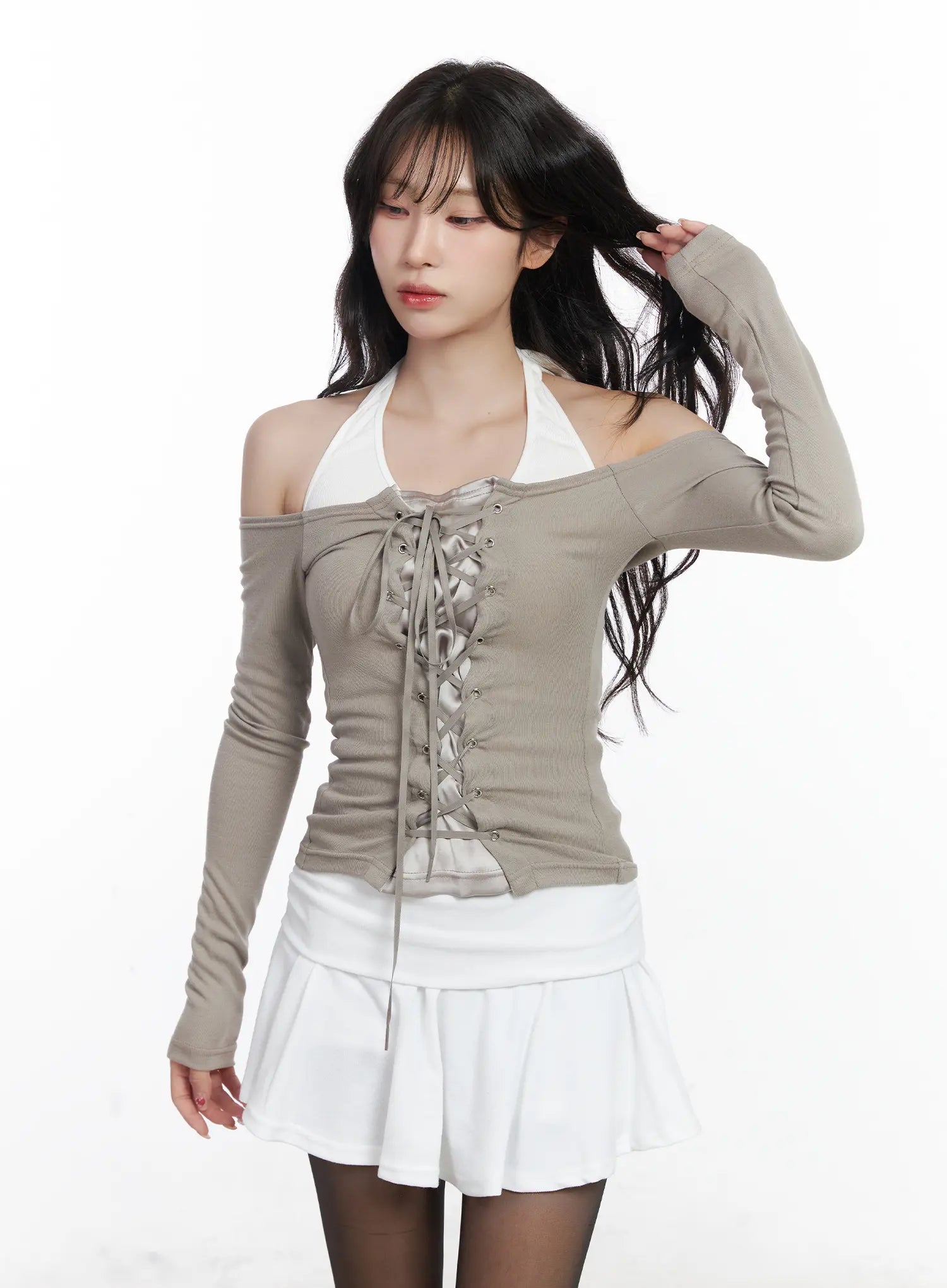 Off-Shoulder Eyelet Lace-Up Top CJ527
