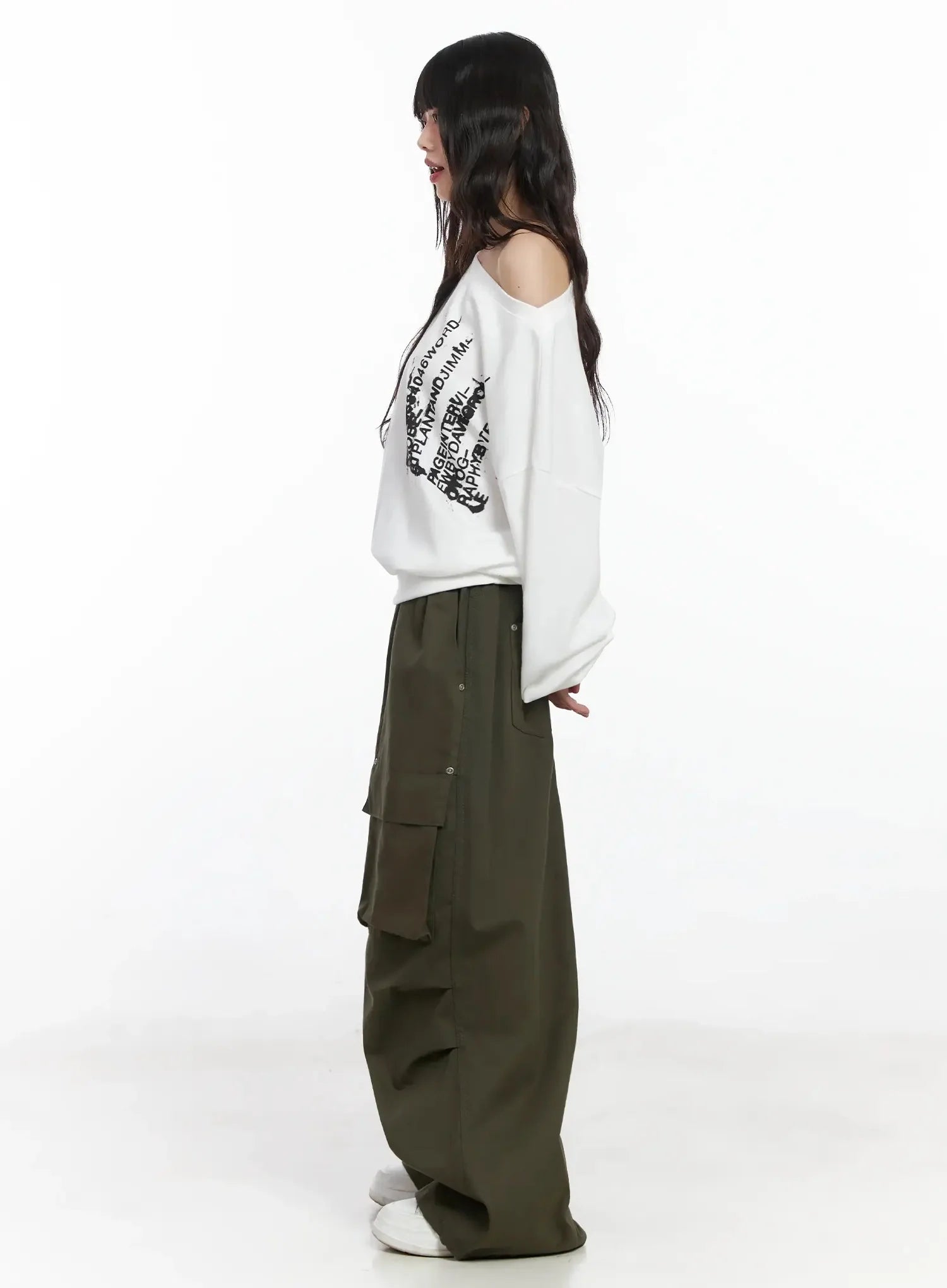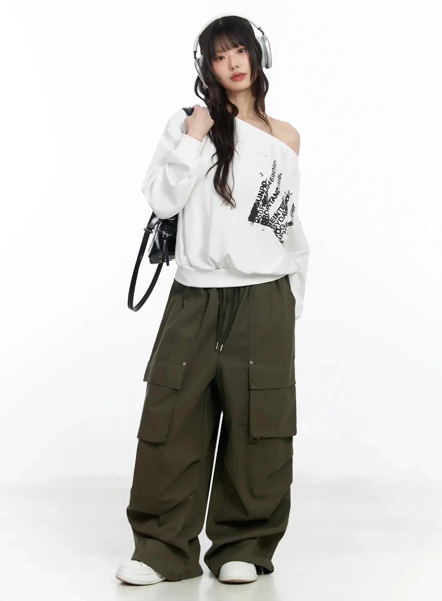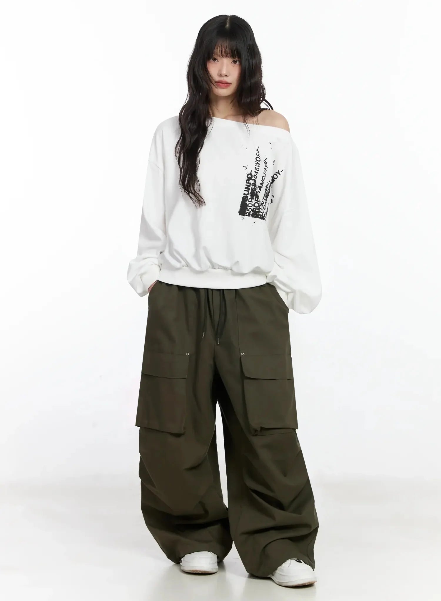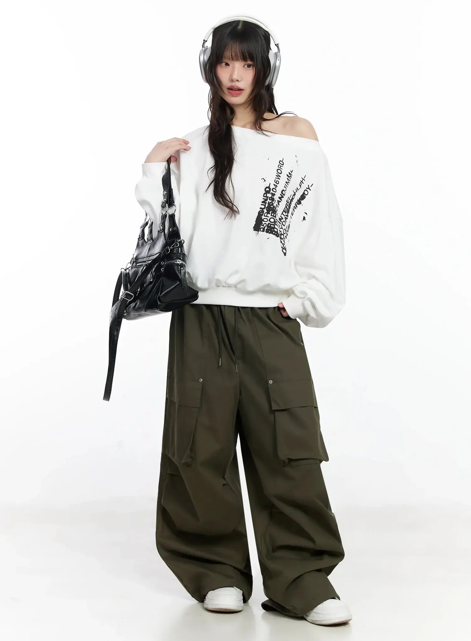 Off-Shoulder Graphic Sweatshirt F516