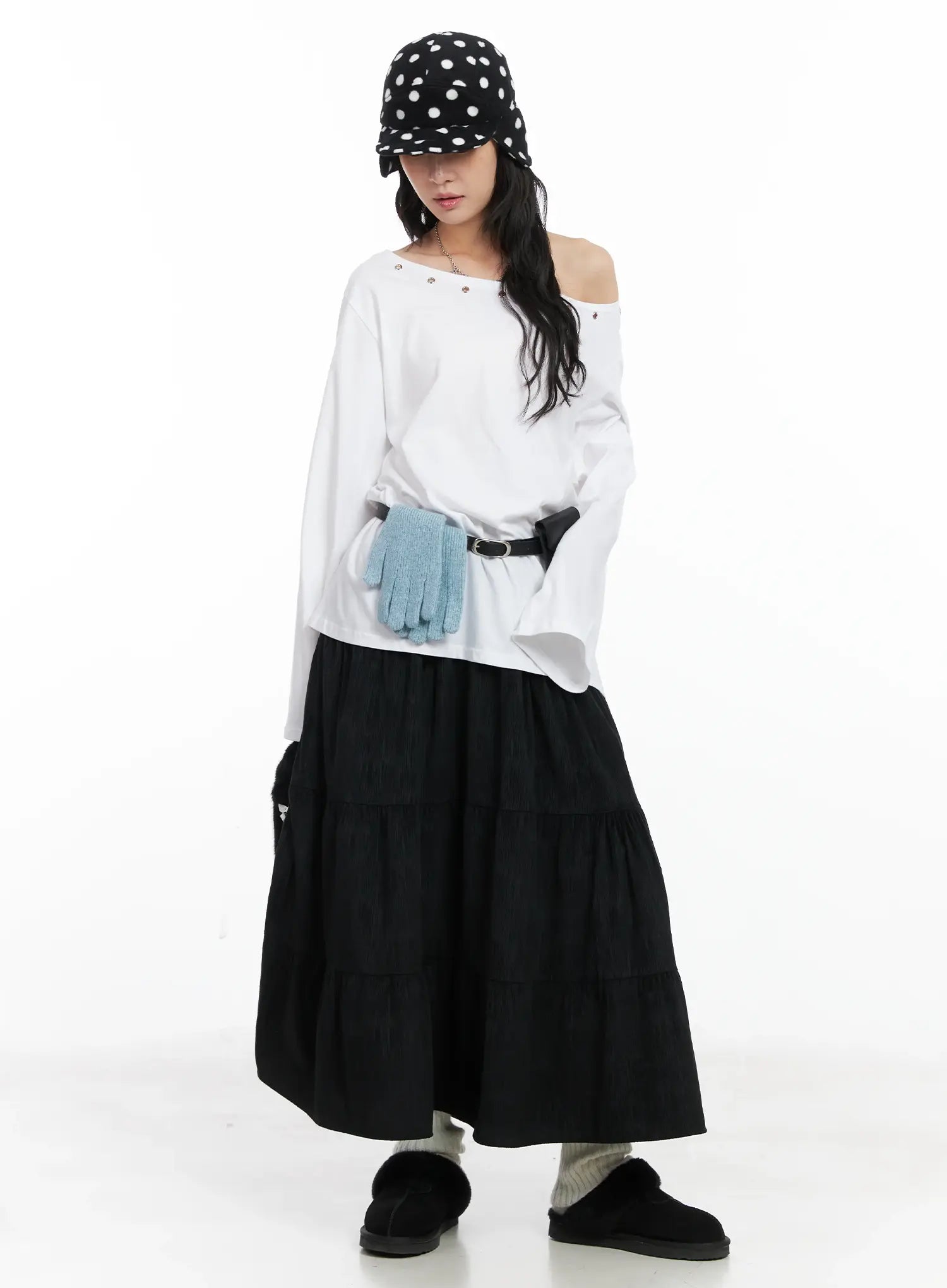 Off-Shoulder Grommet Long Sleeve Top CD502