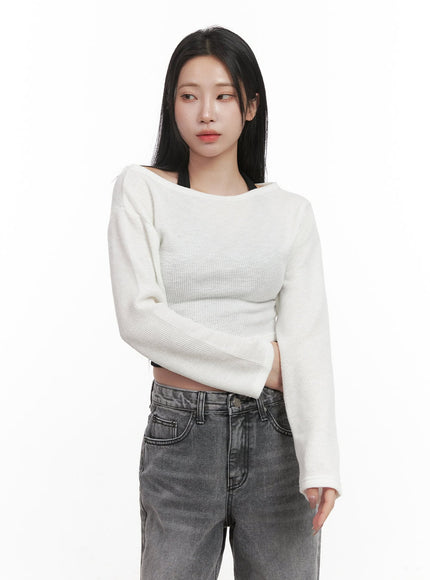 Off-Shoulder Long Sleeve Crop Top CJ517